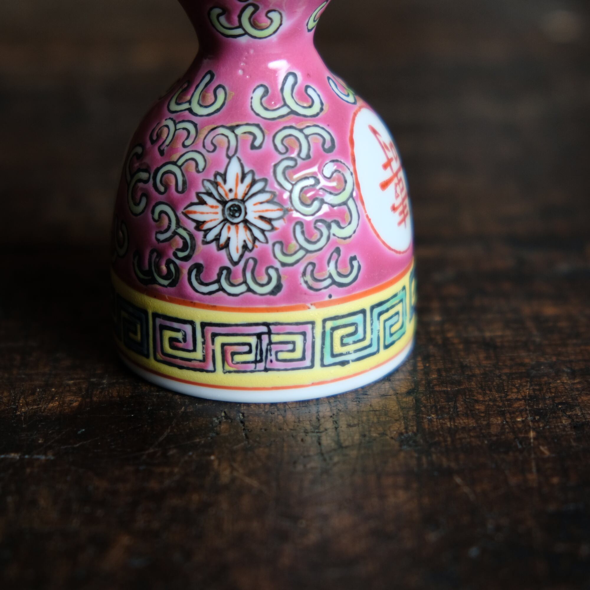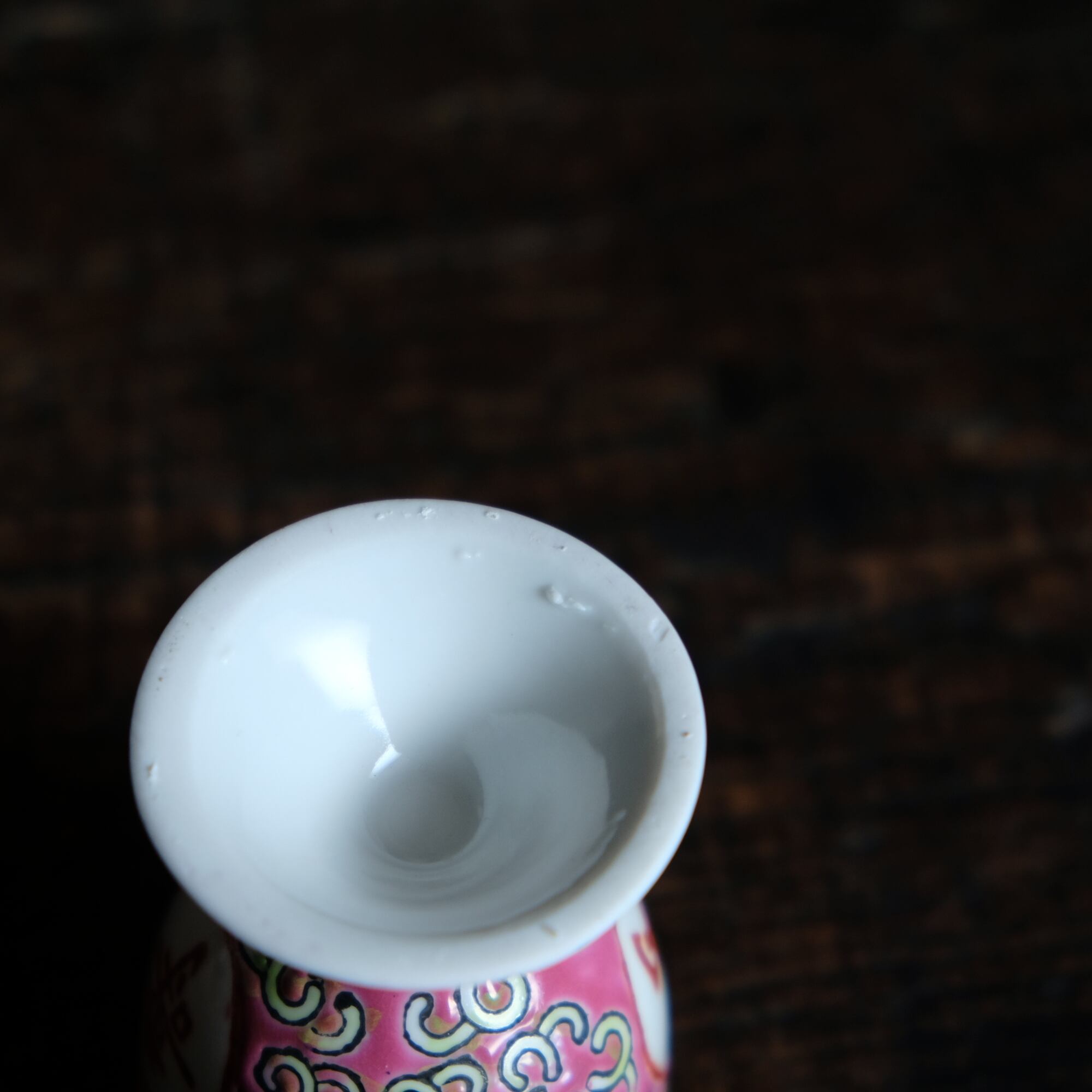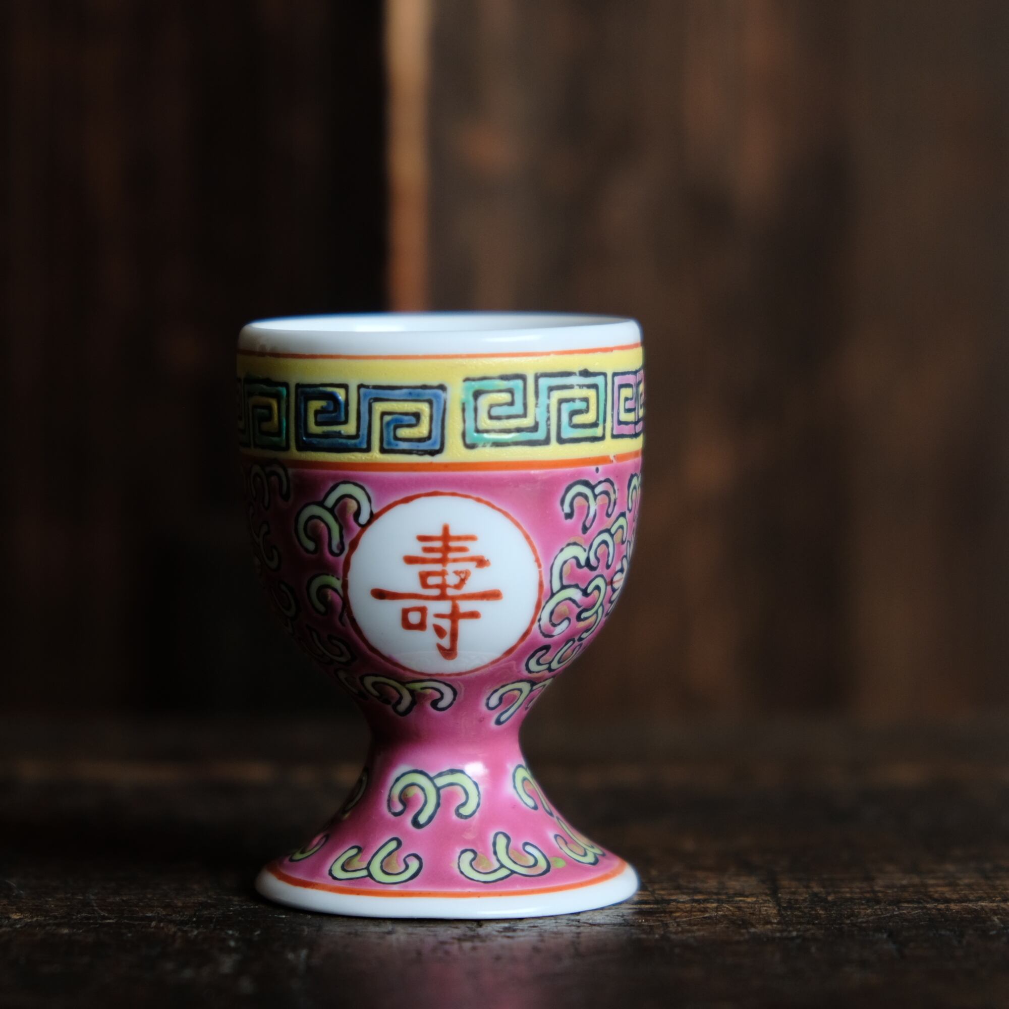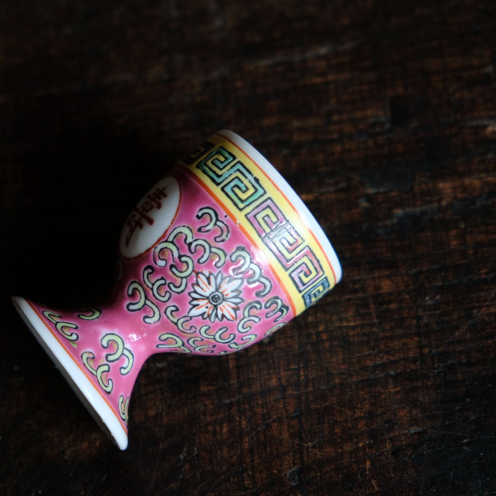 萬と寿◆ビビットな色味。中国景徳鎮 花唐草文色絵盃 酒器 中華・台湾料理 インテリア