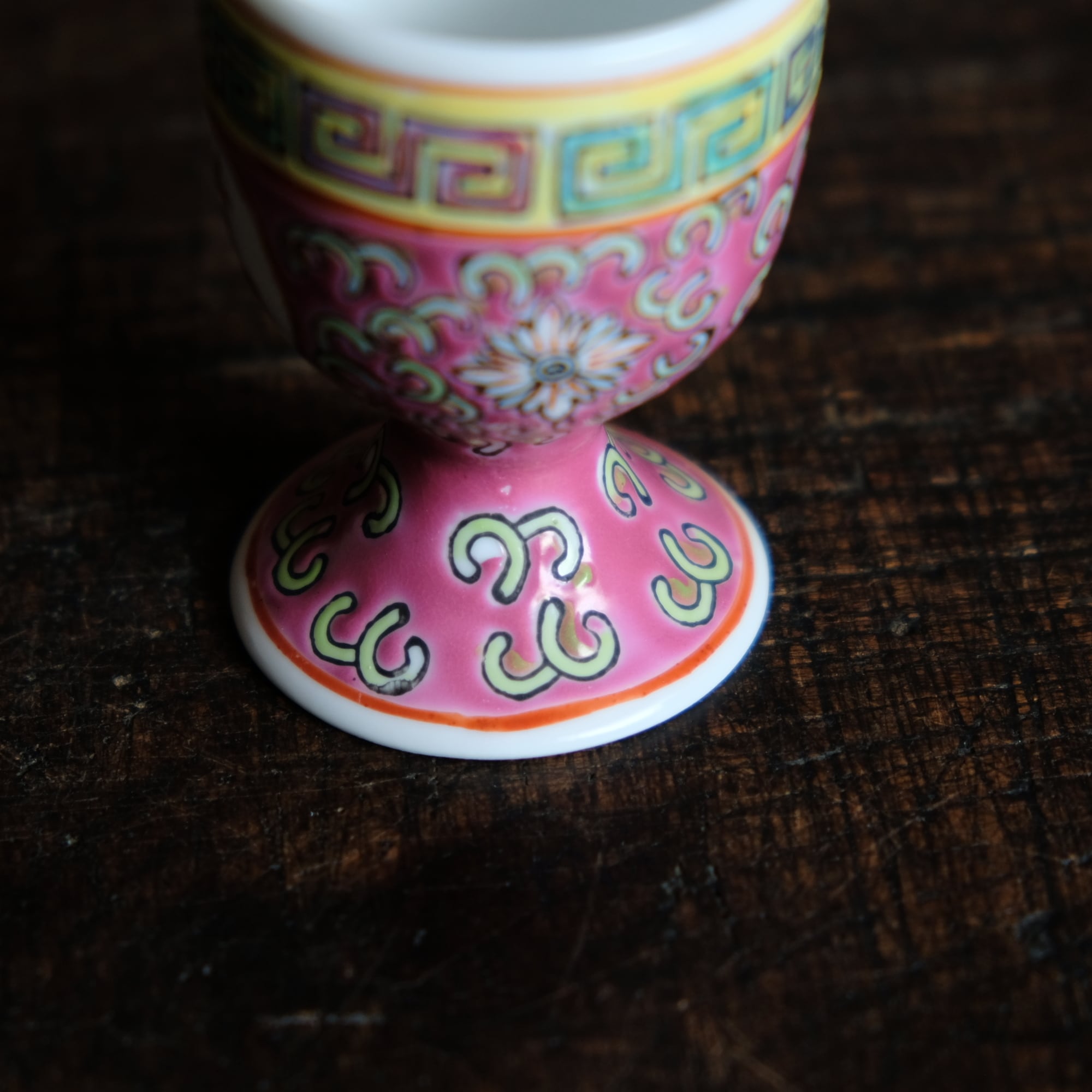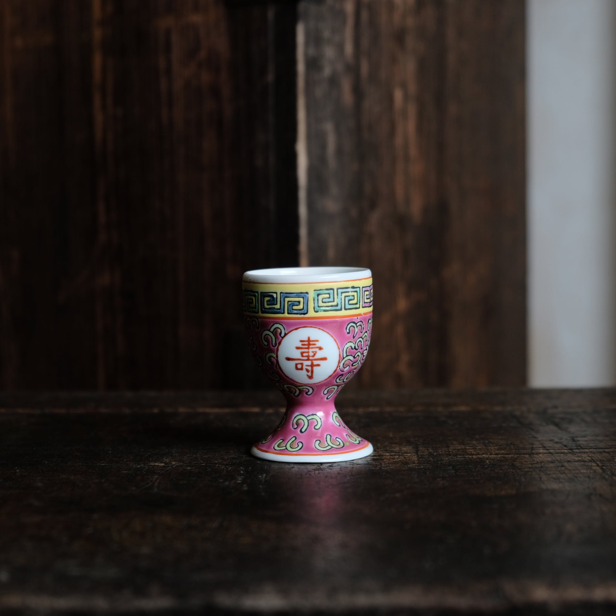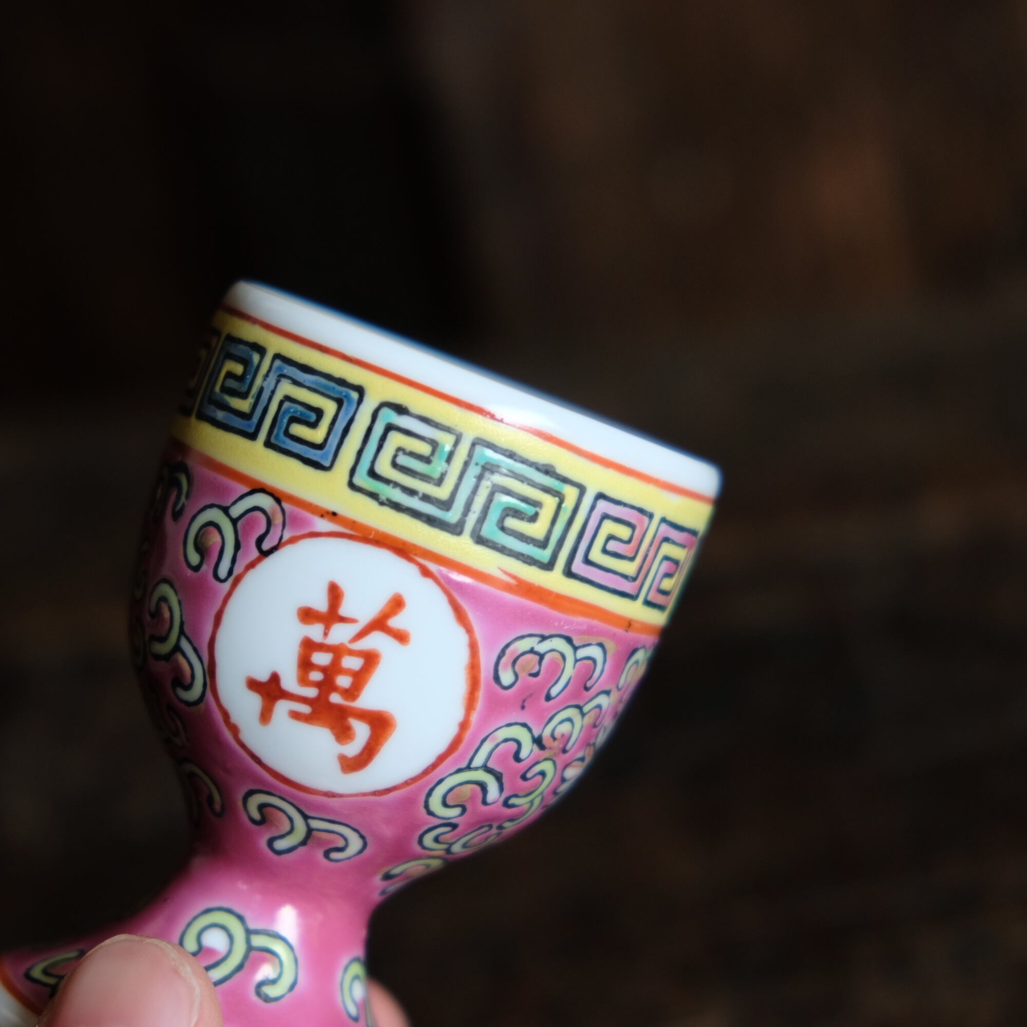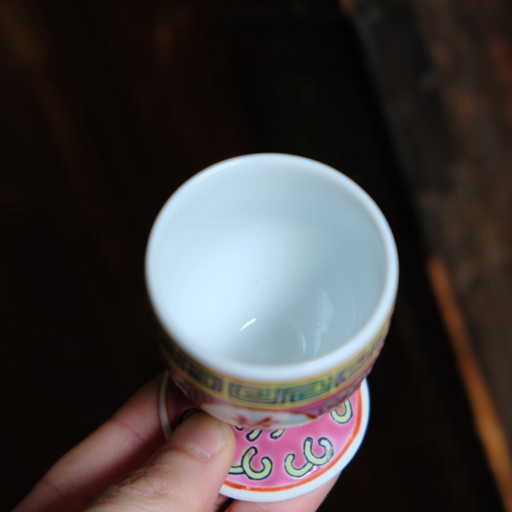 萬と寿◆ビビットな色味。中国景徳鎮 花唐草文色絵盃 酒器 中華・台湾料理 インテリア