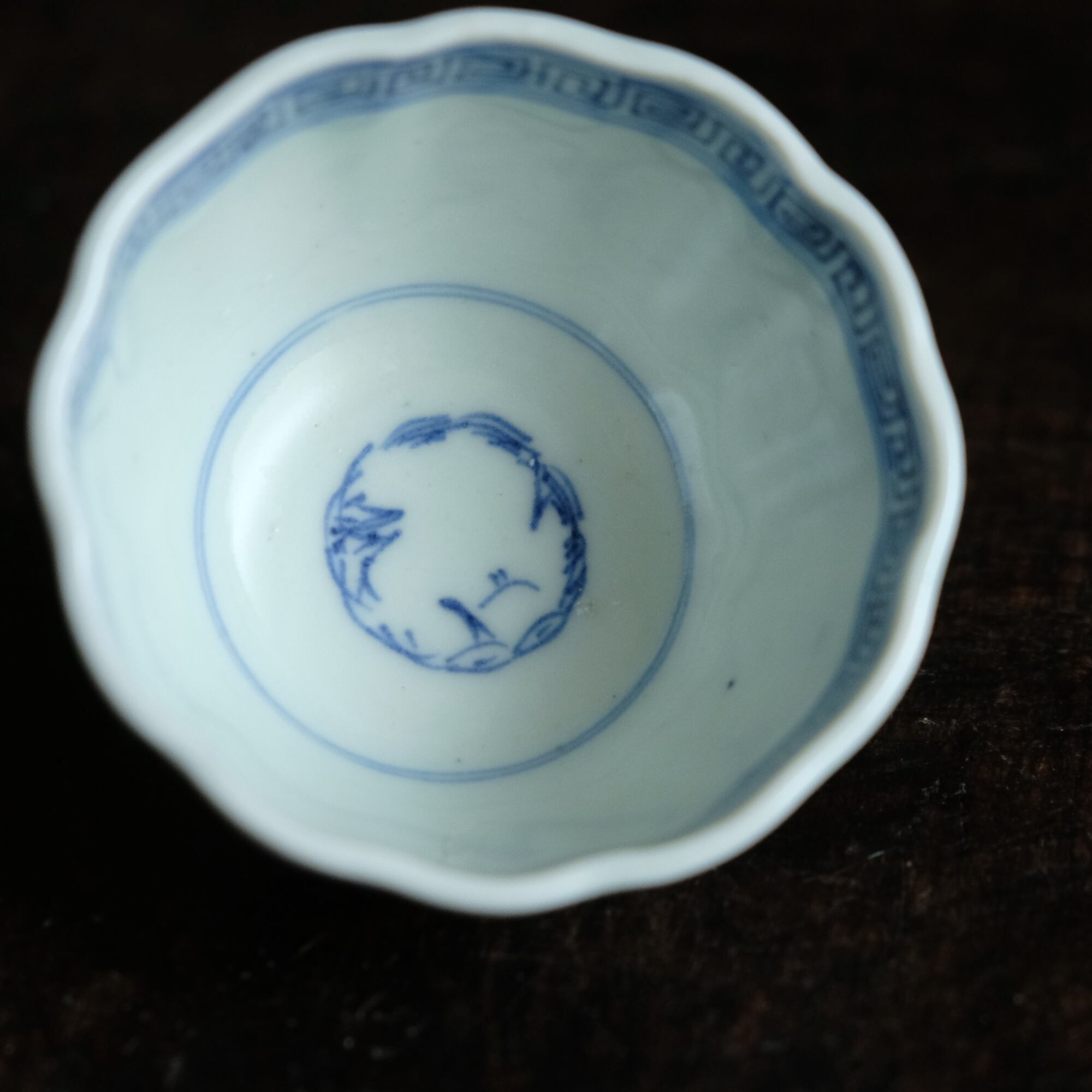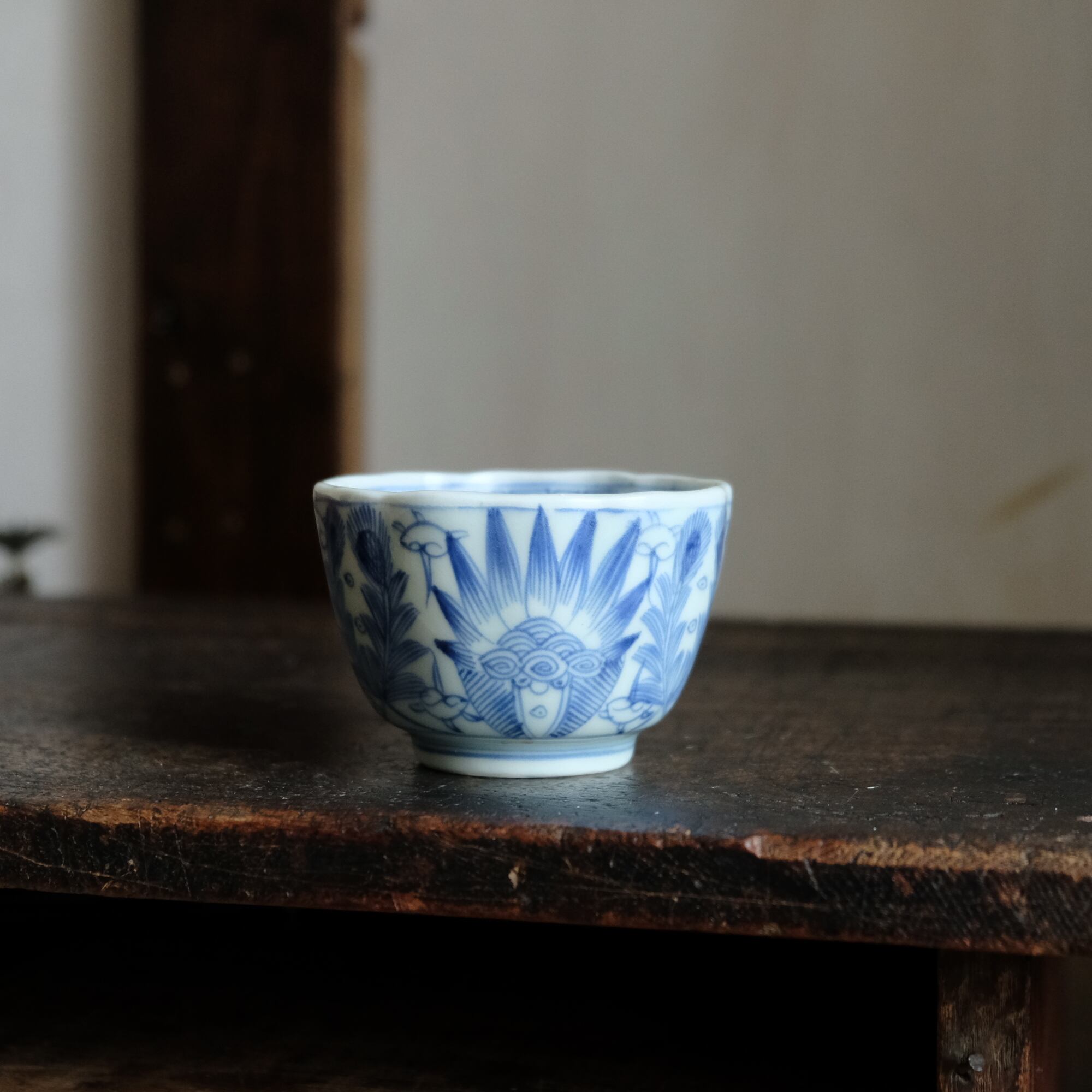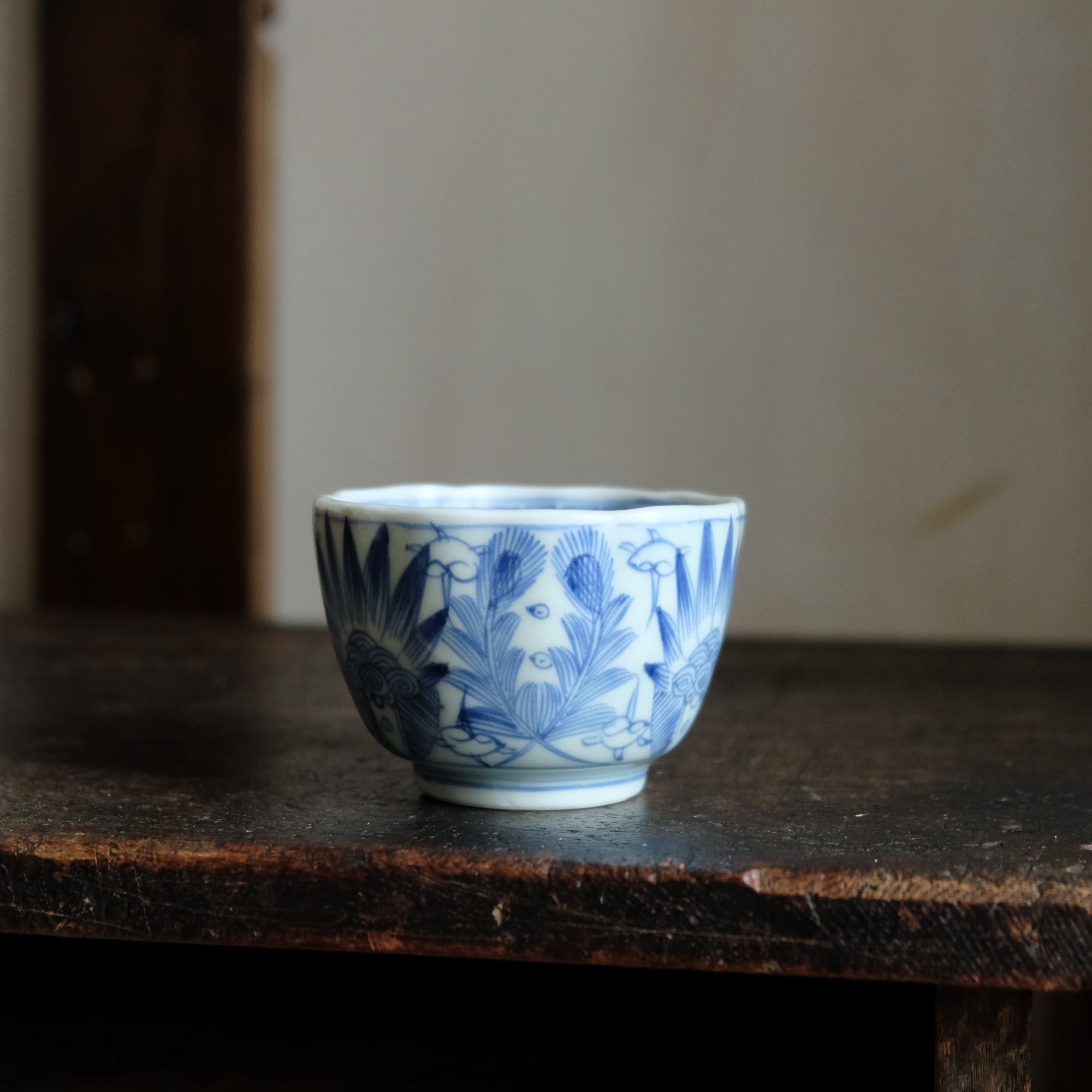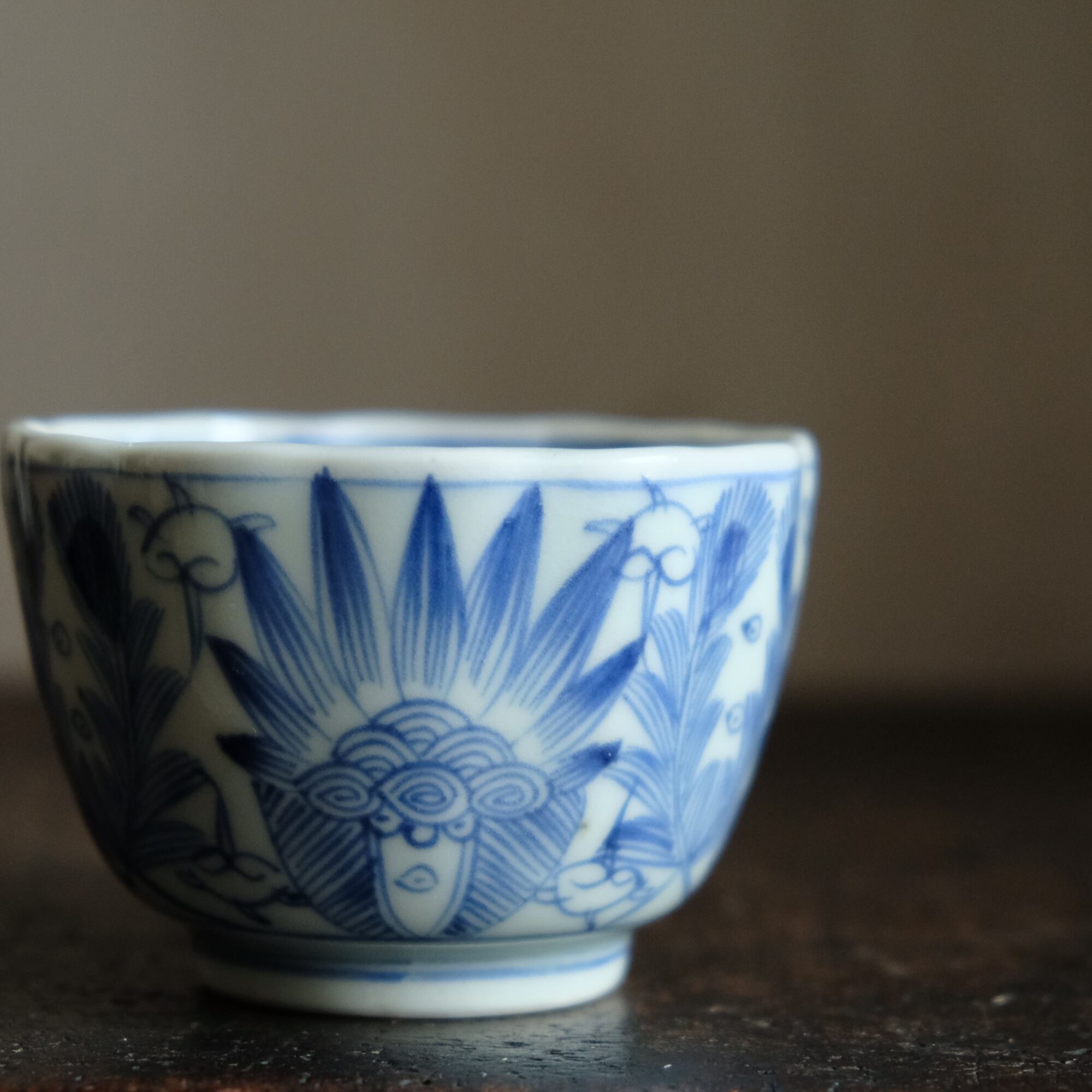 線描きで素敵◆伊万里 花文線描き染付猪口 向付 骨董/antiques 芸術 アート 暮らしに。江戸末期