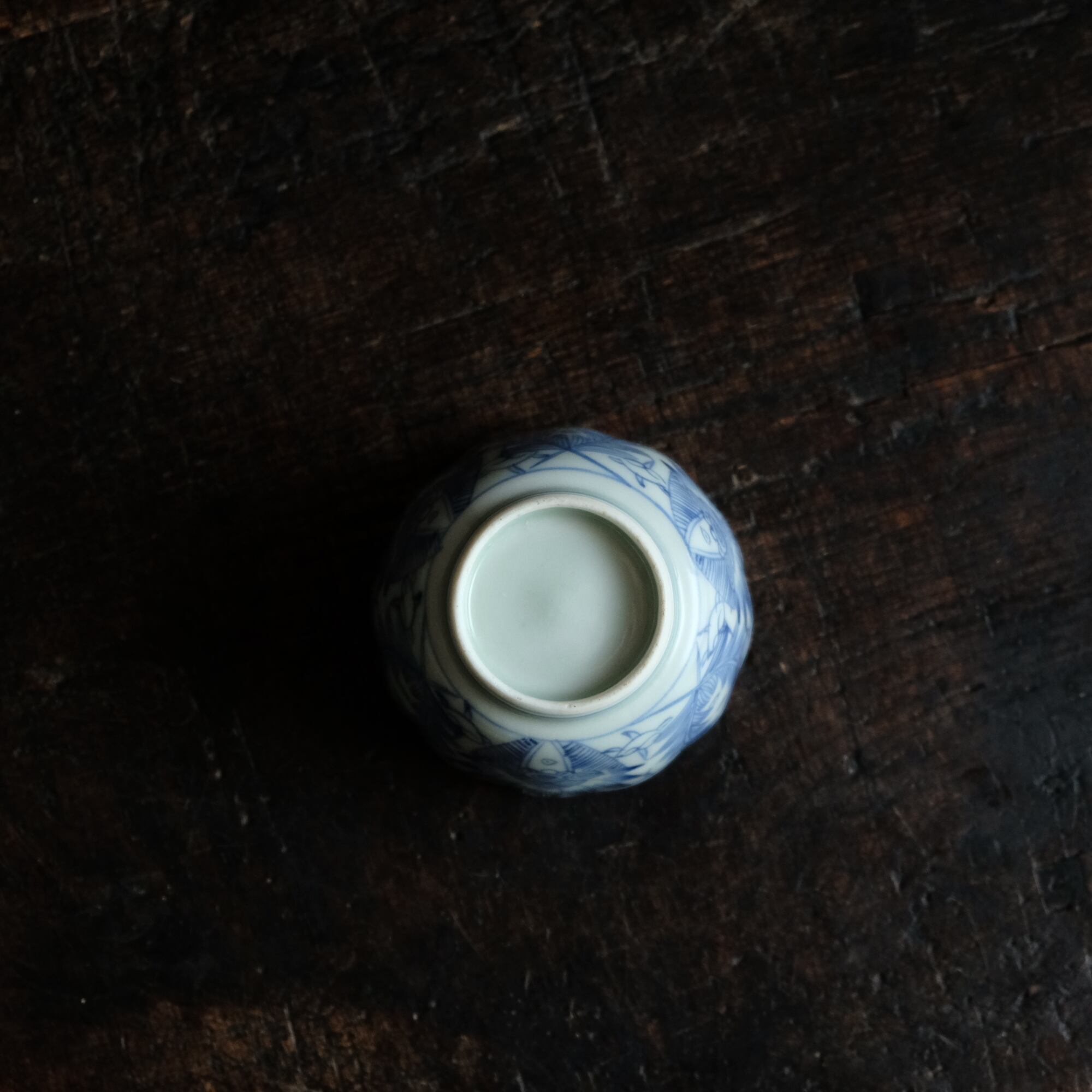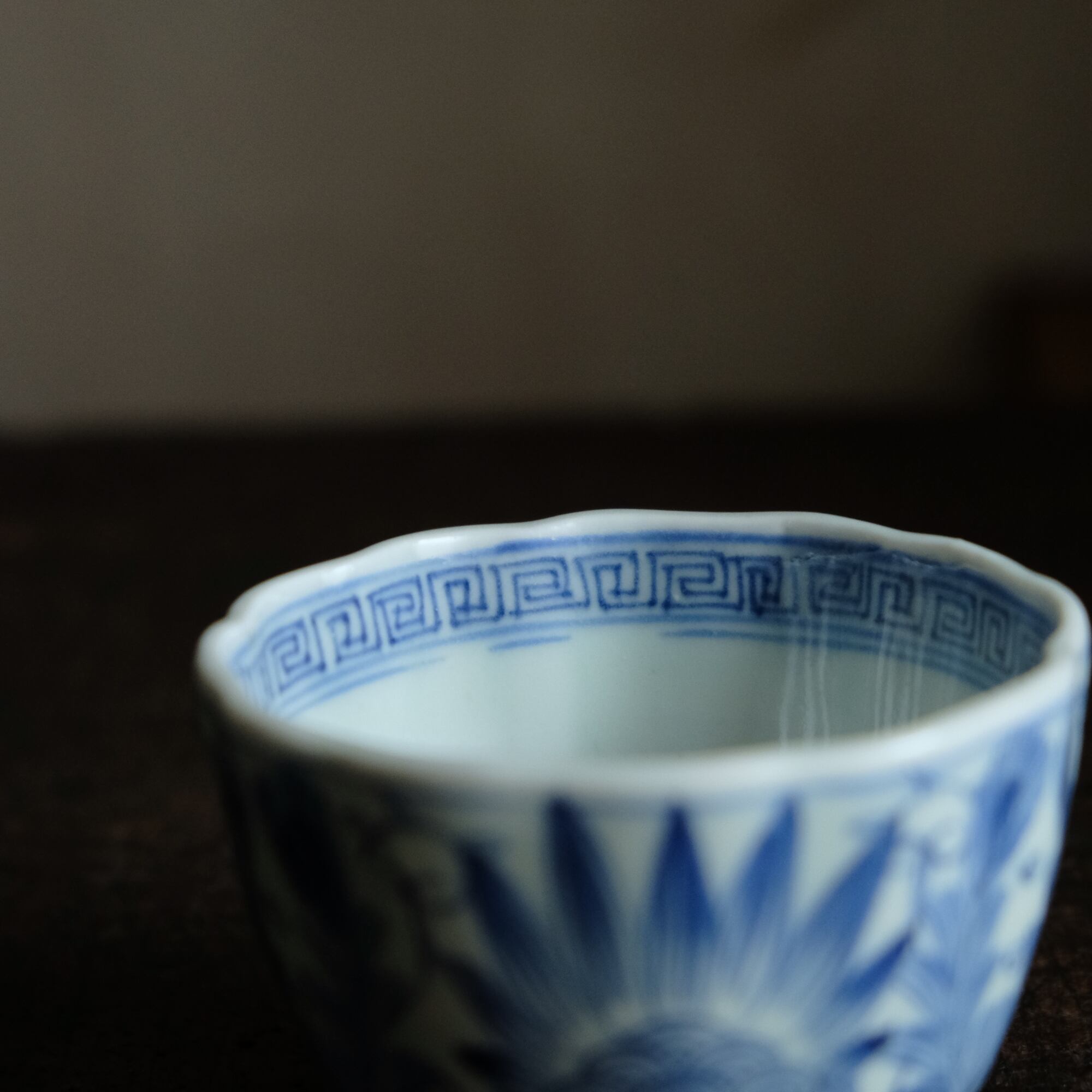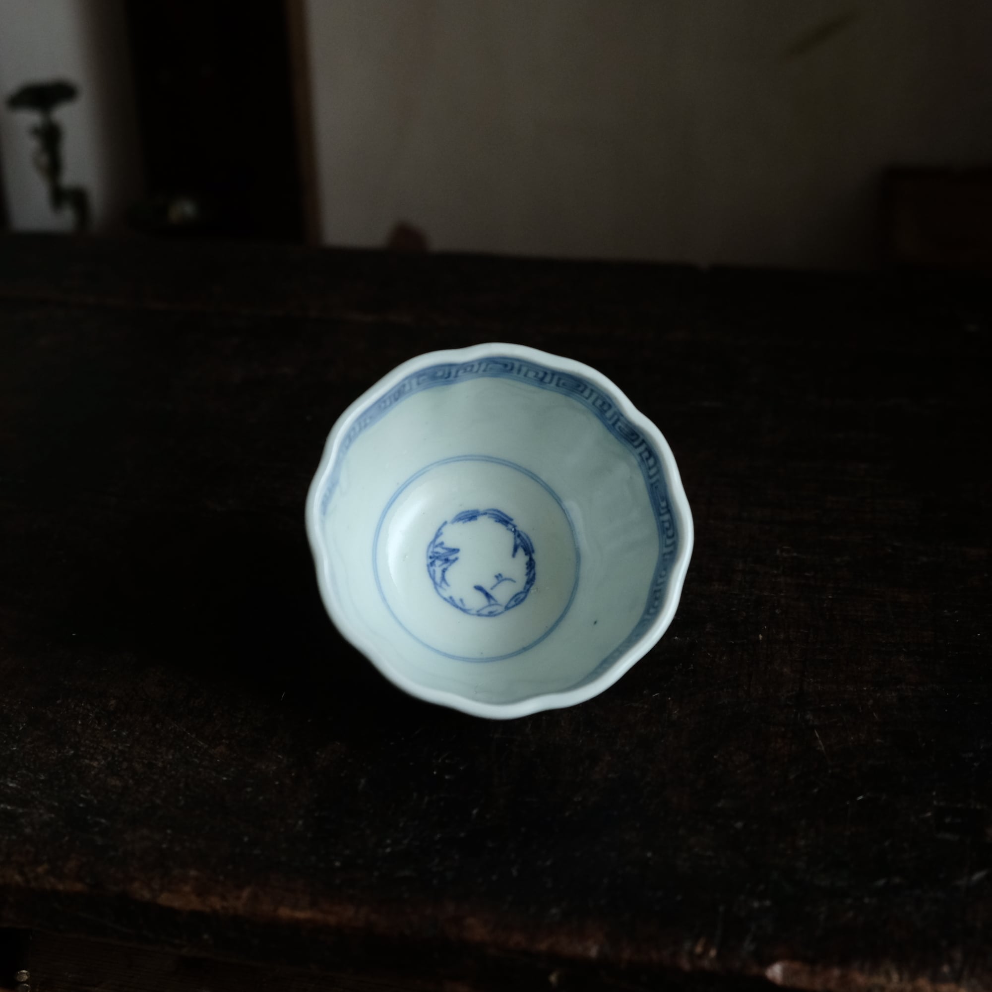 線描きで素敵◆伊万里 花文線描き染付猪口 向付 骨董/antiques 芸術 アート 暮らしに。江戸末期