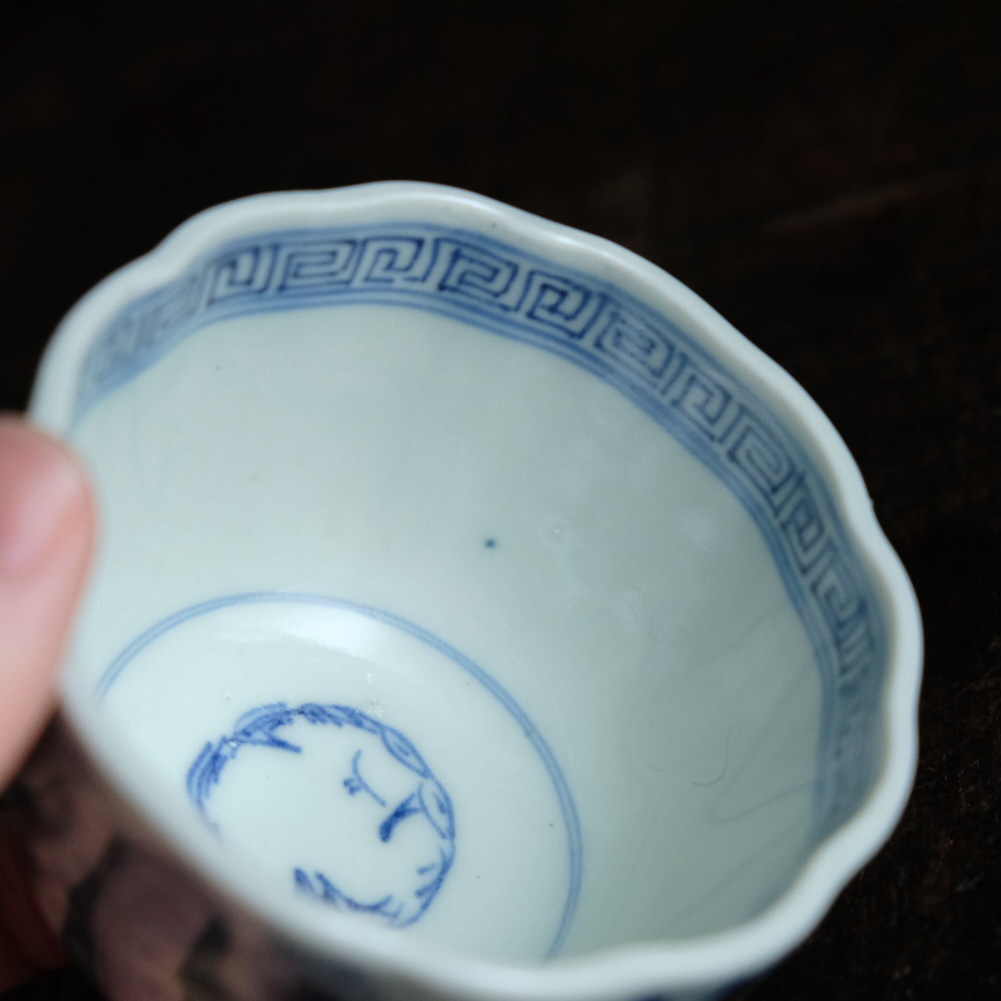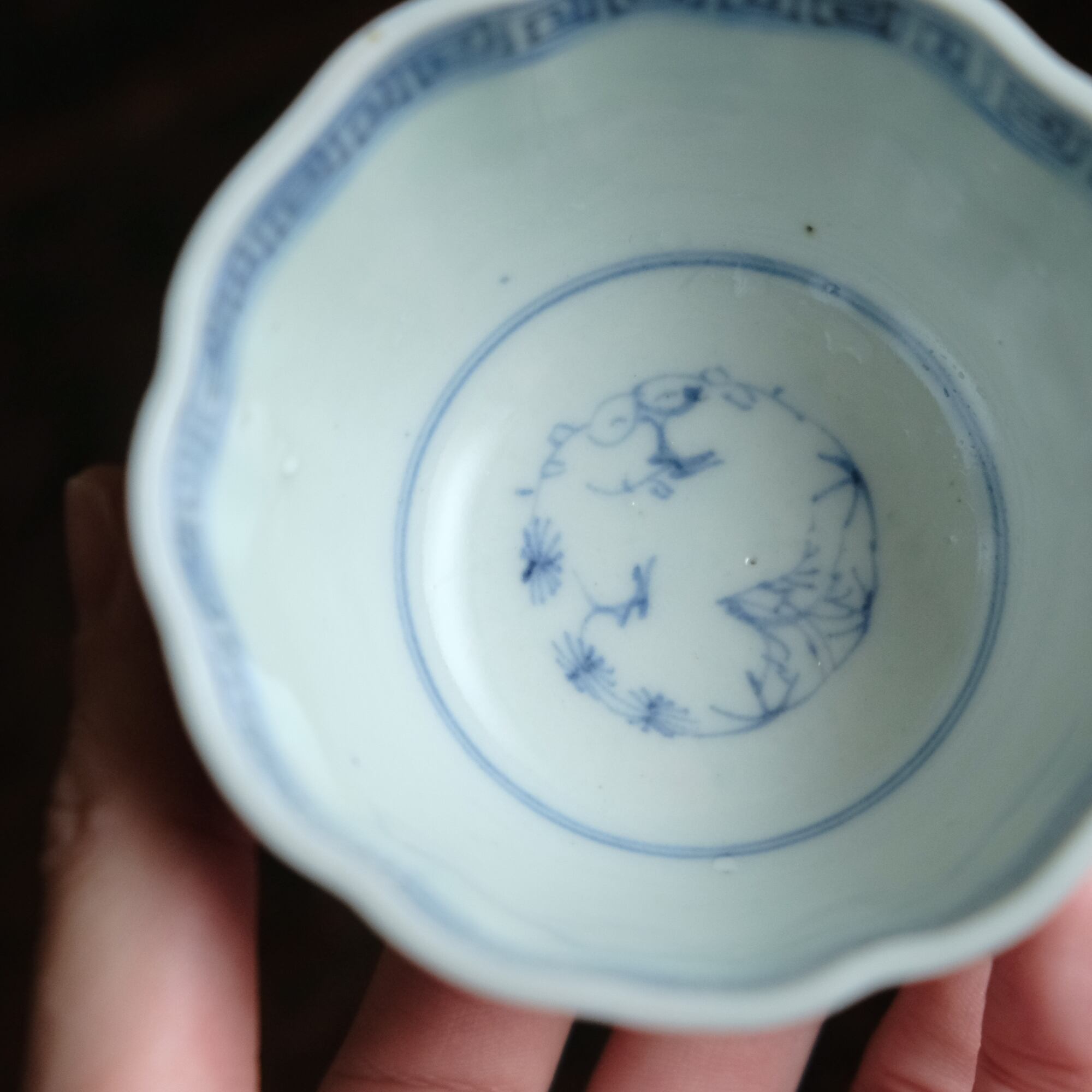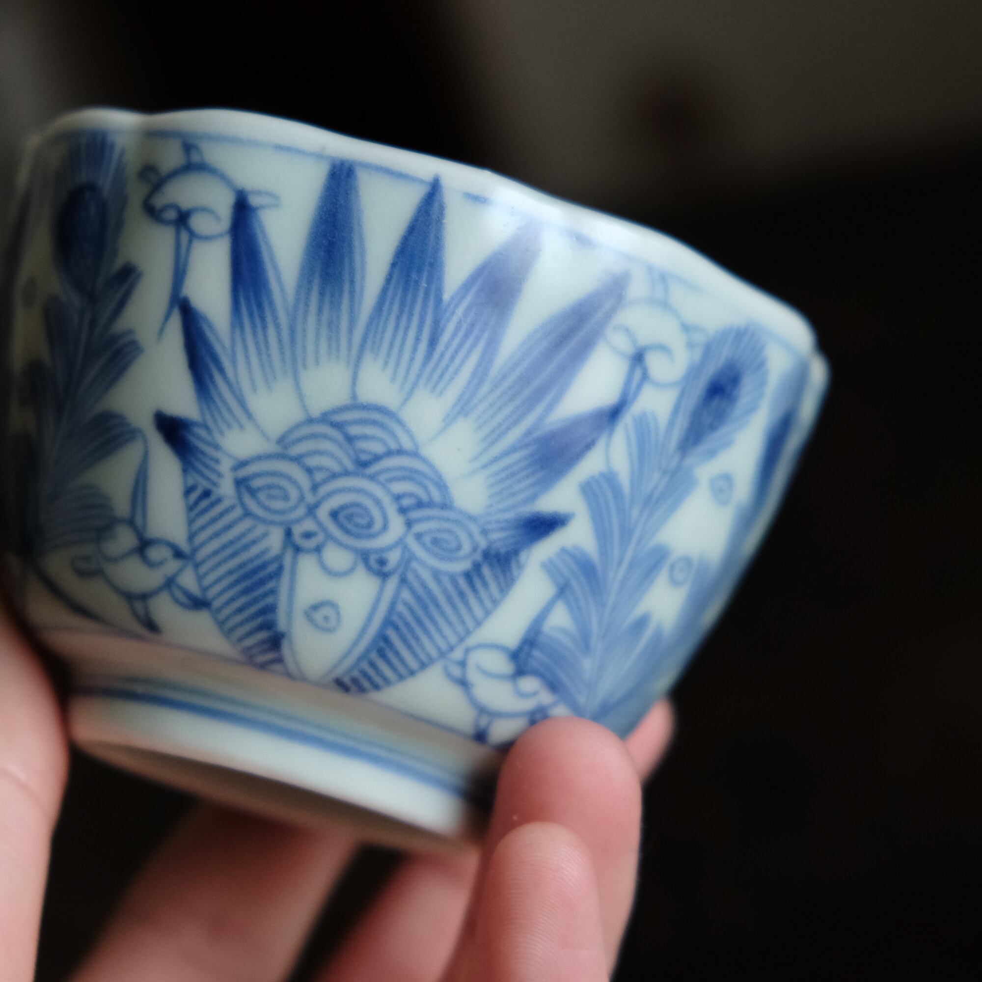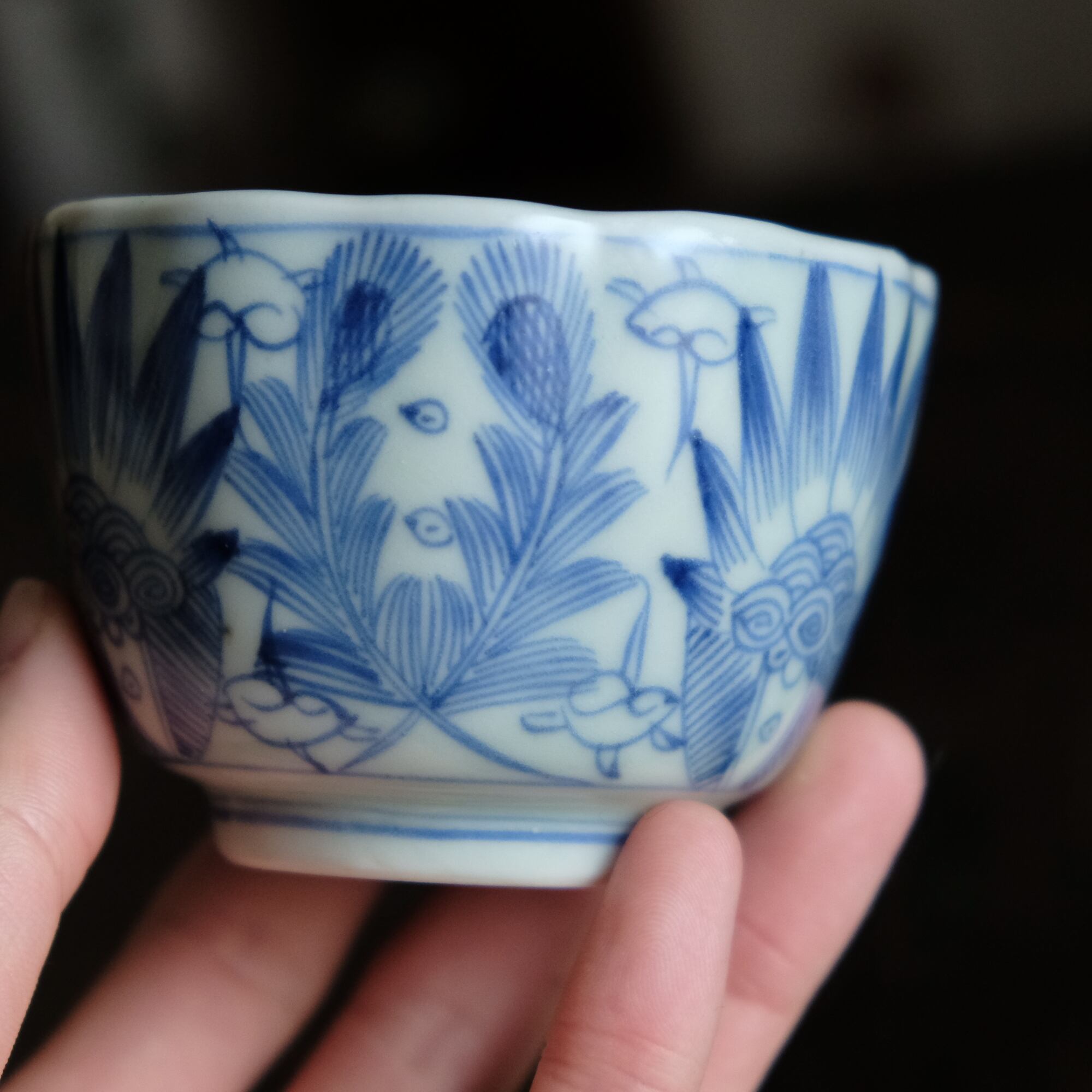 線描きで素敵◆伊万里 花文線描き染付猪口 向付 骨董/antiques 芸術 アート 暮らしに。江戸末期
