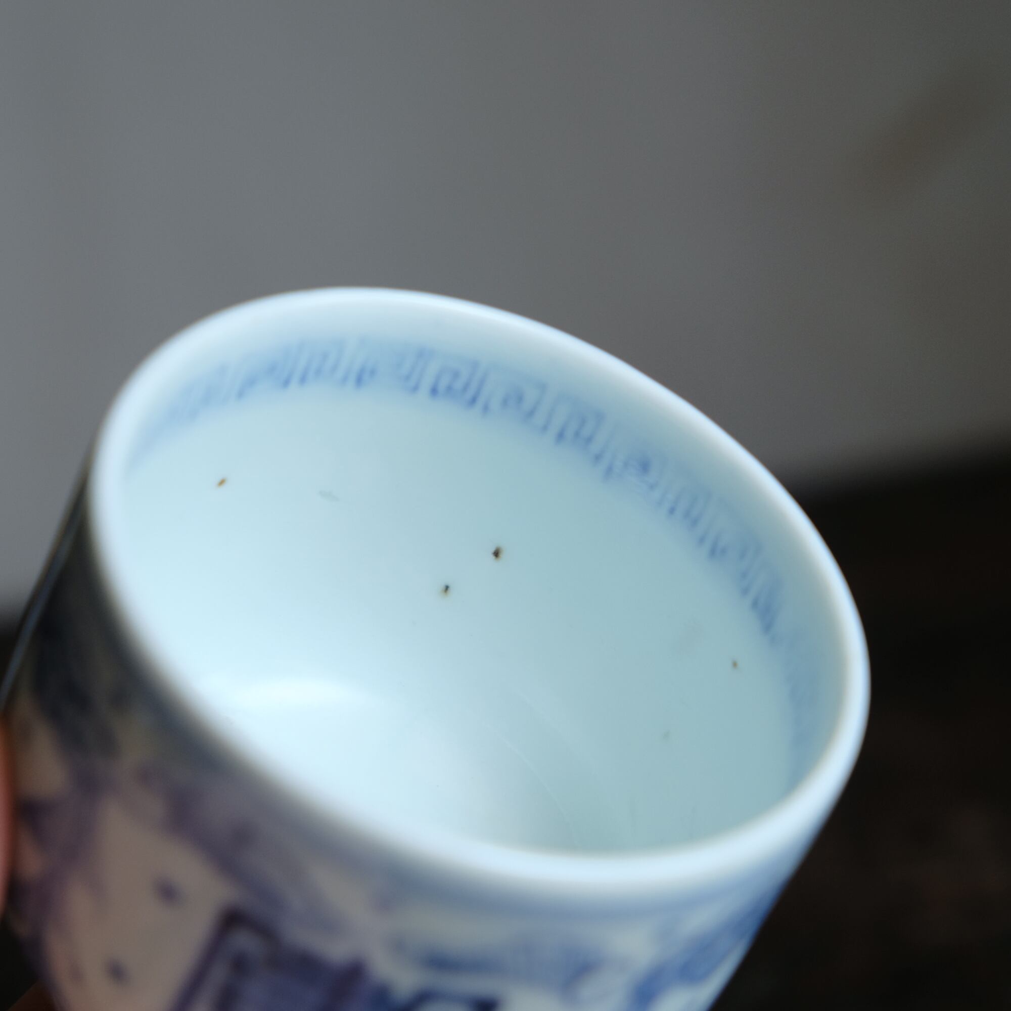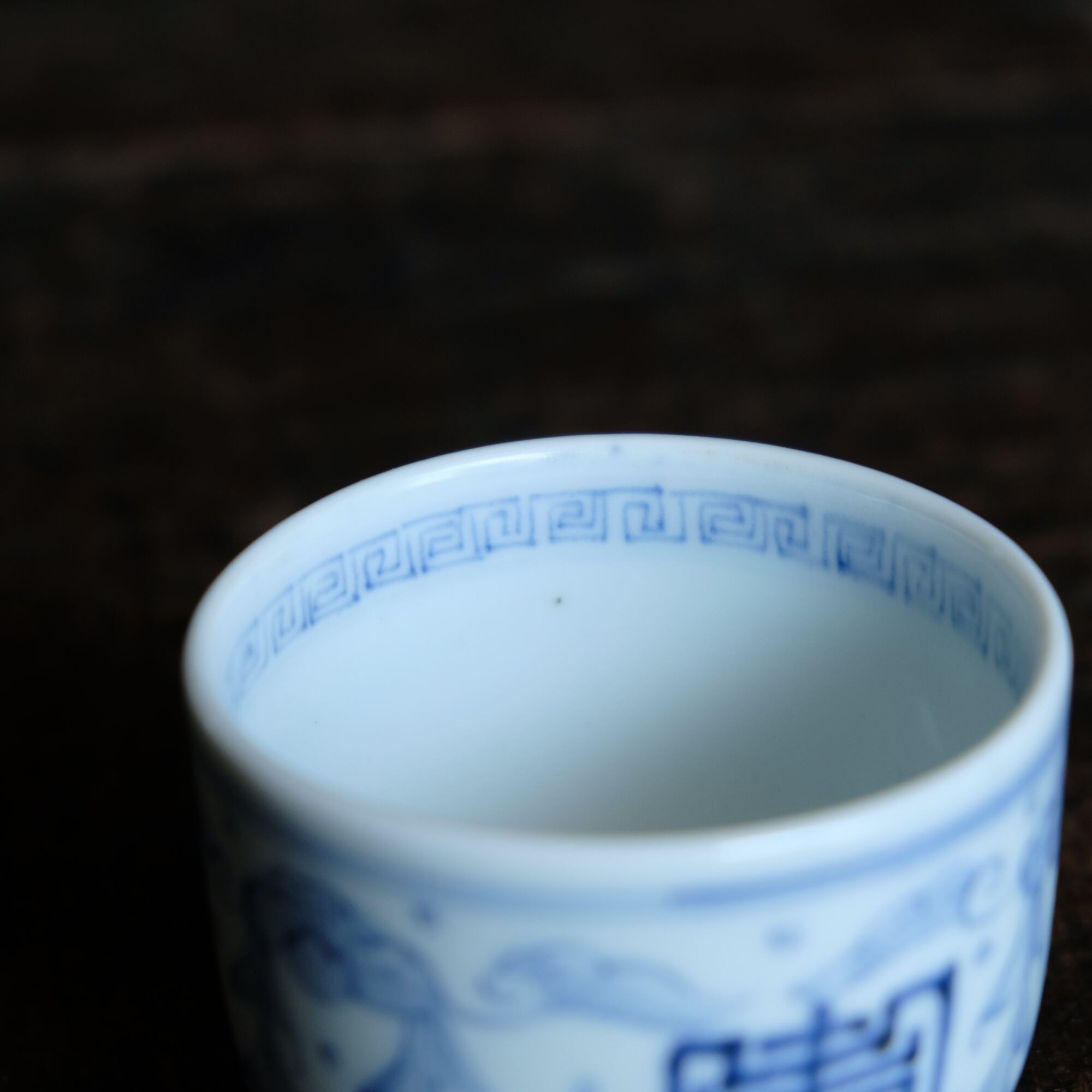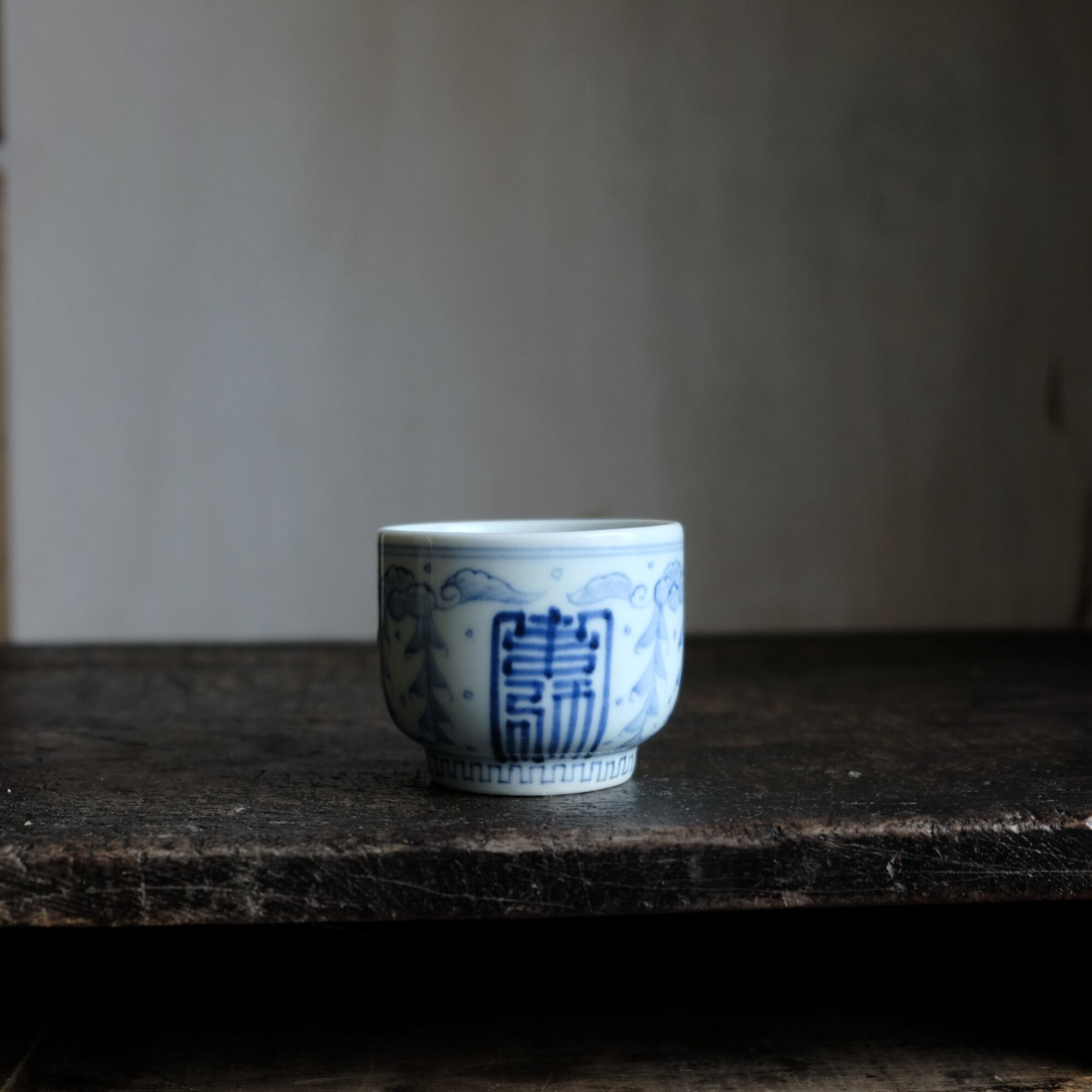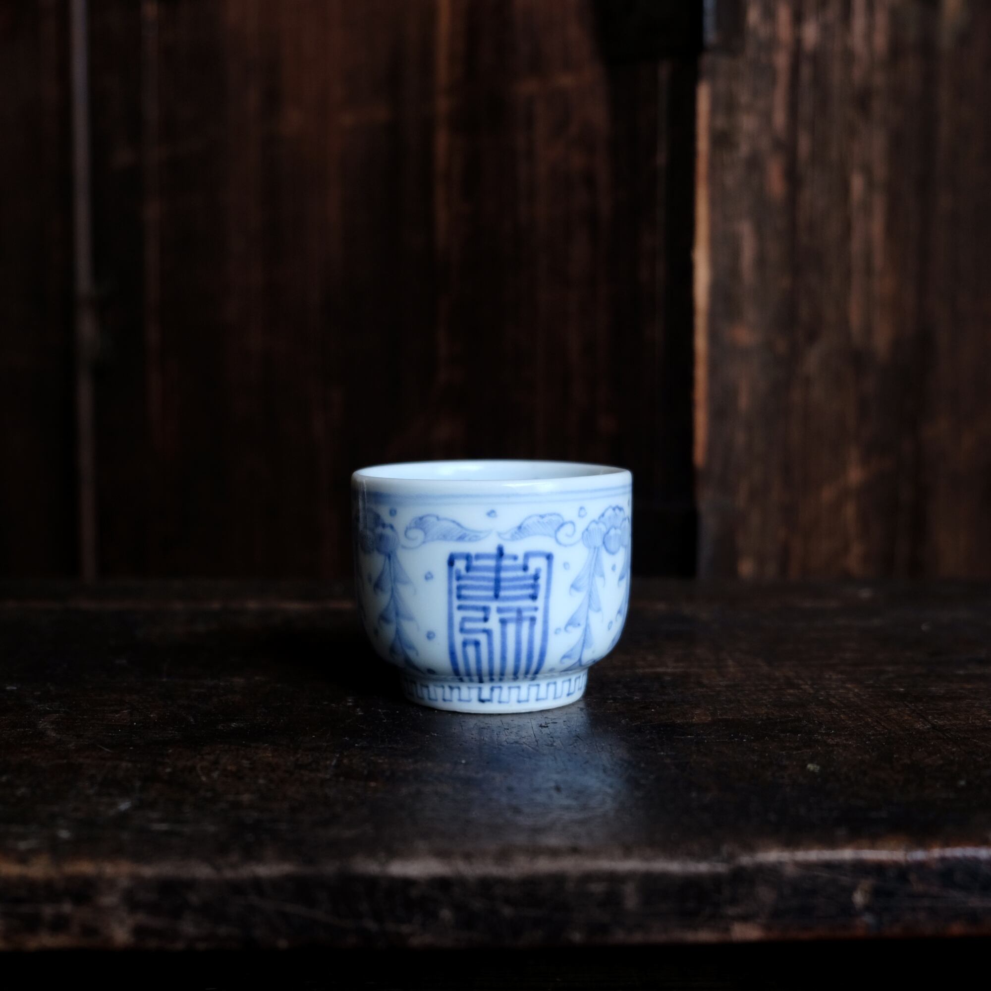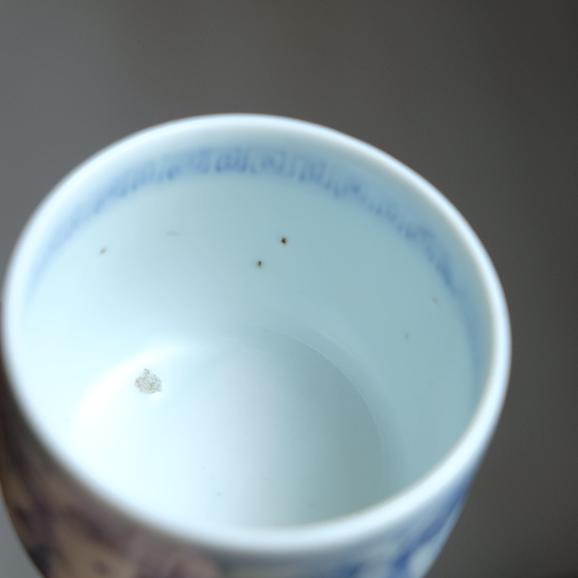 線描きで素敵◆花と漢字。伊万里 染付線描猪口 骨董・antiques 丁寧な暮らしに。江戸末期