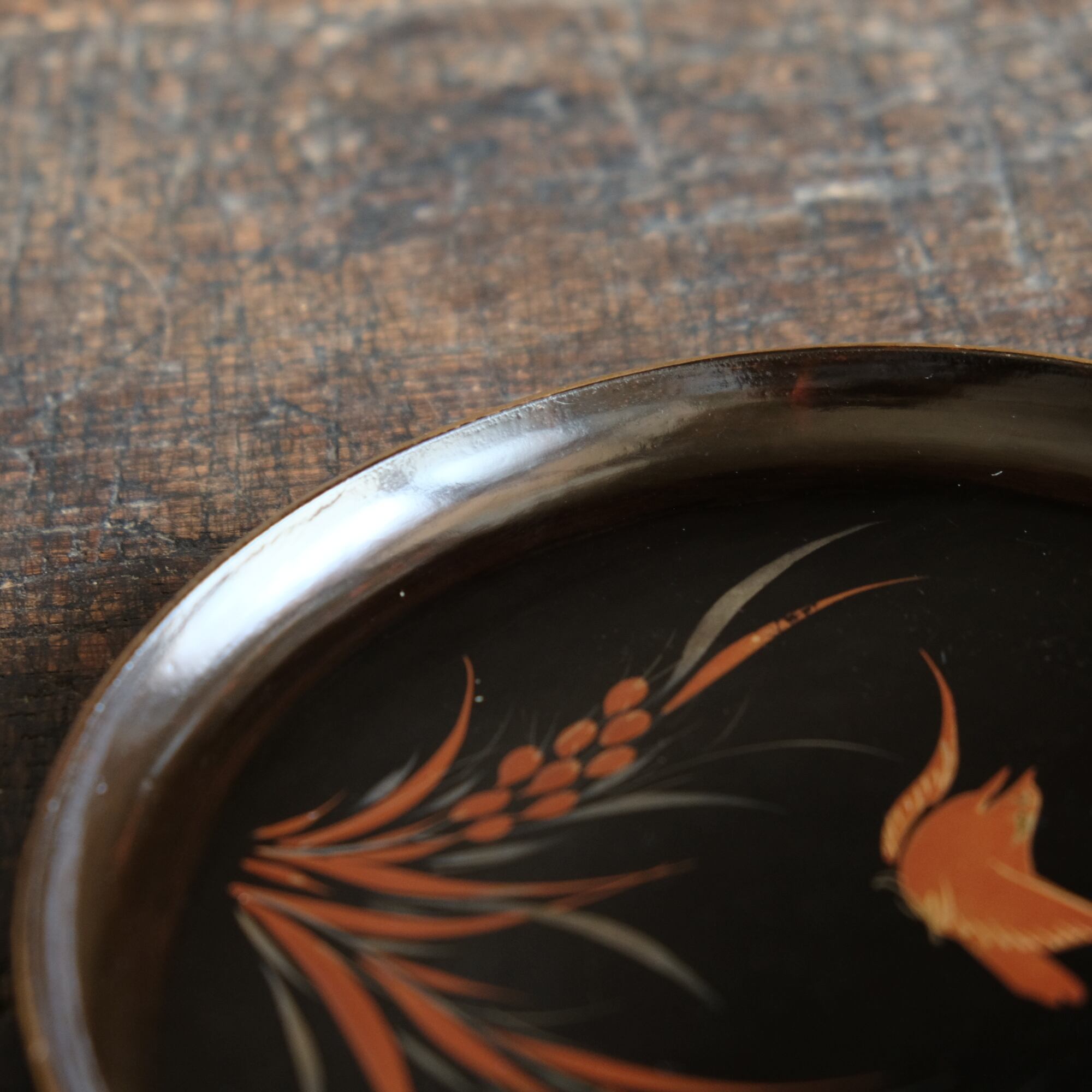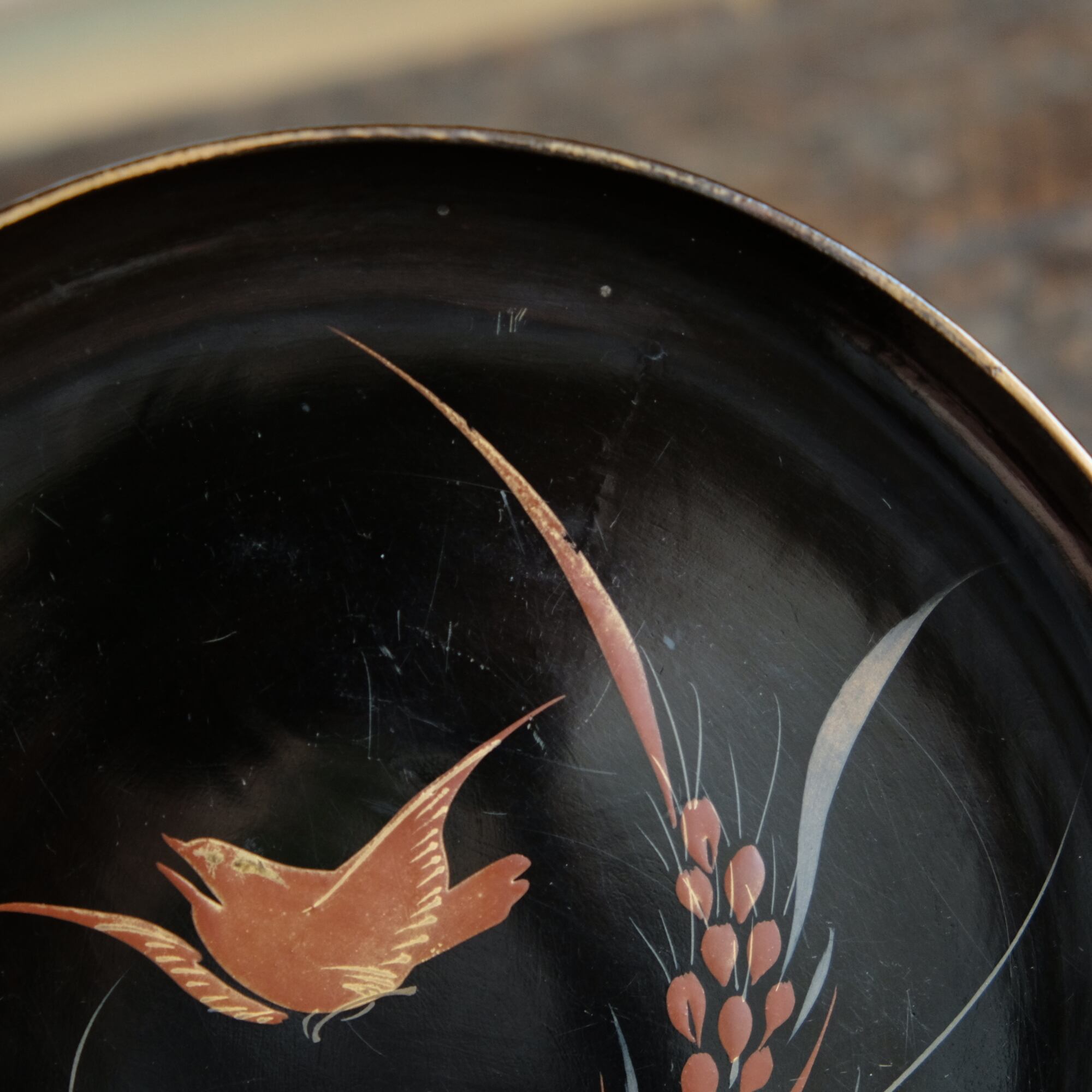 鳥と稲穂◆味のあるお品物。時代物 漆芸蒔絵中皿 漆器 骨董/antiques 古民家 明治期 b3