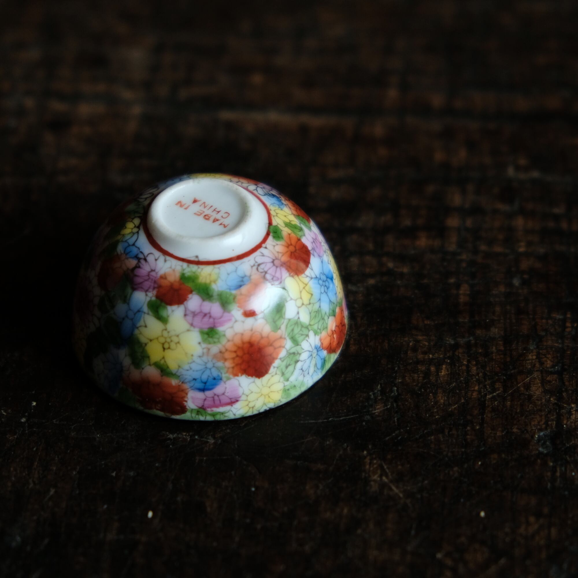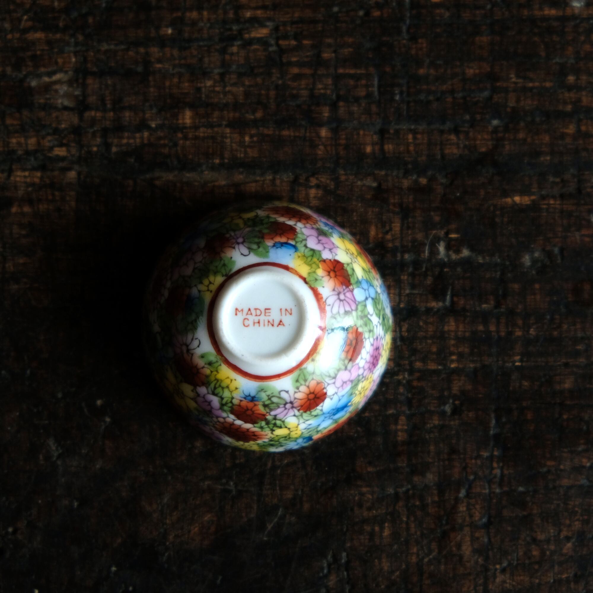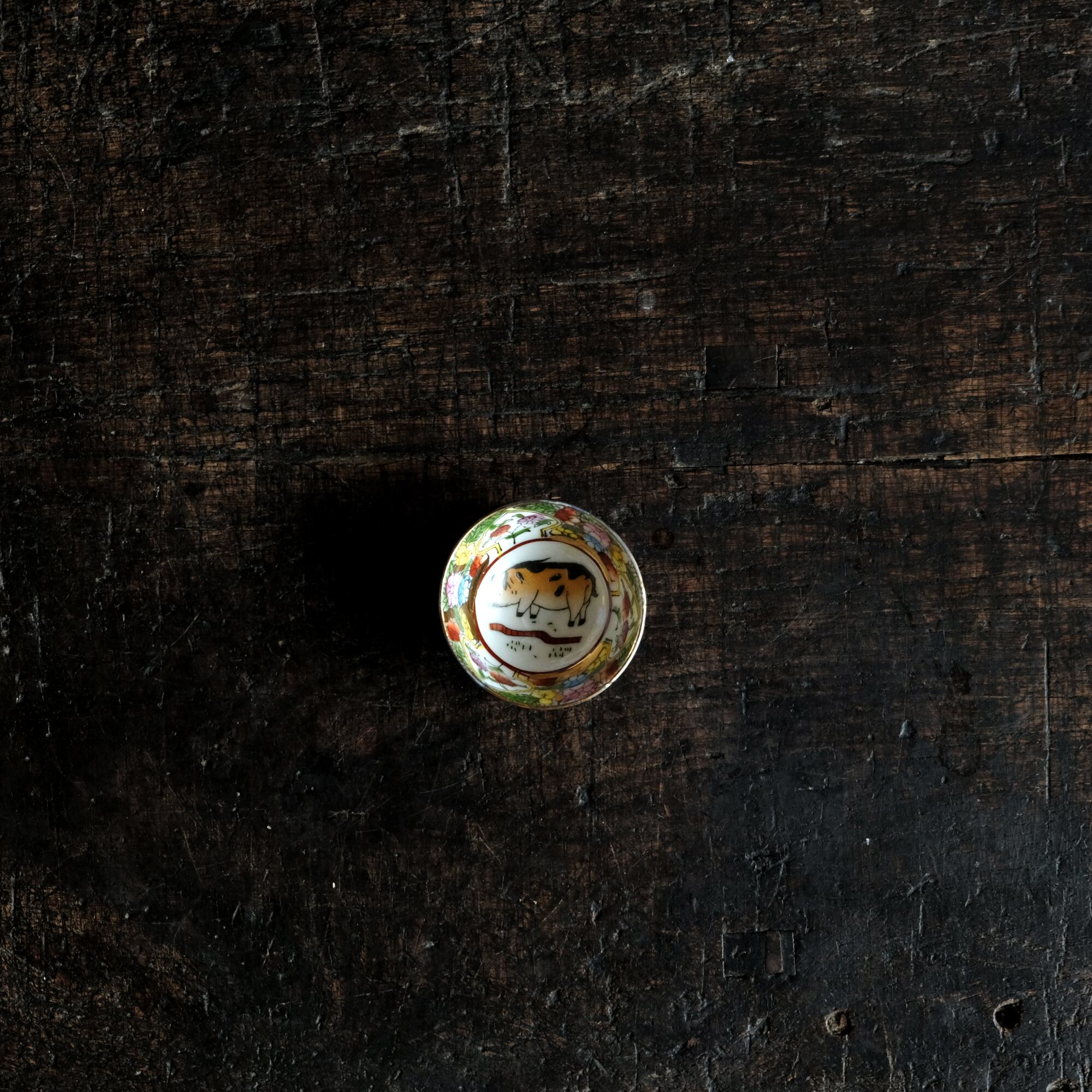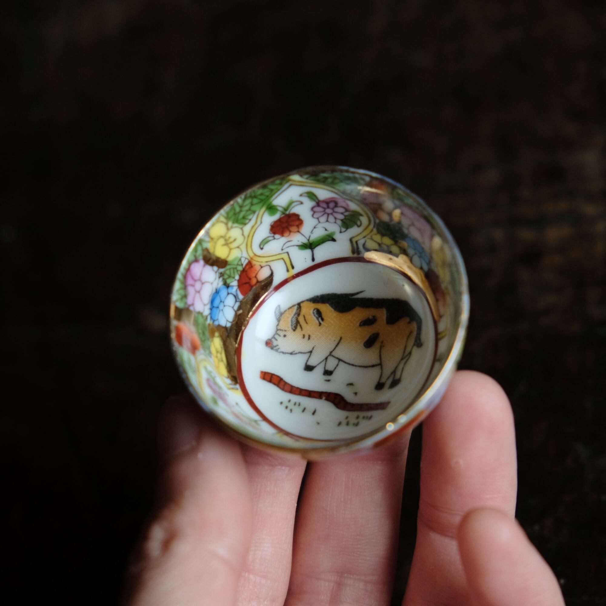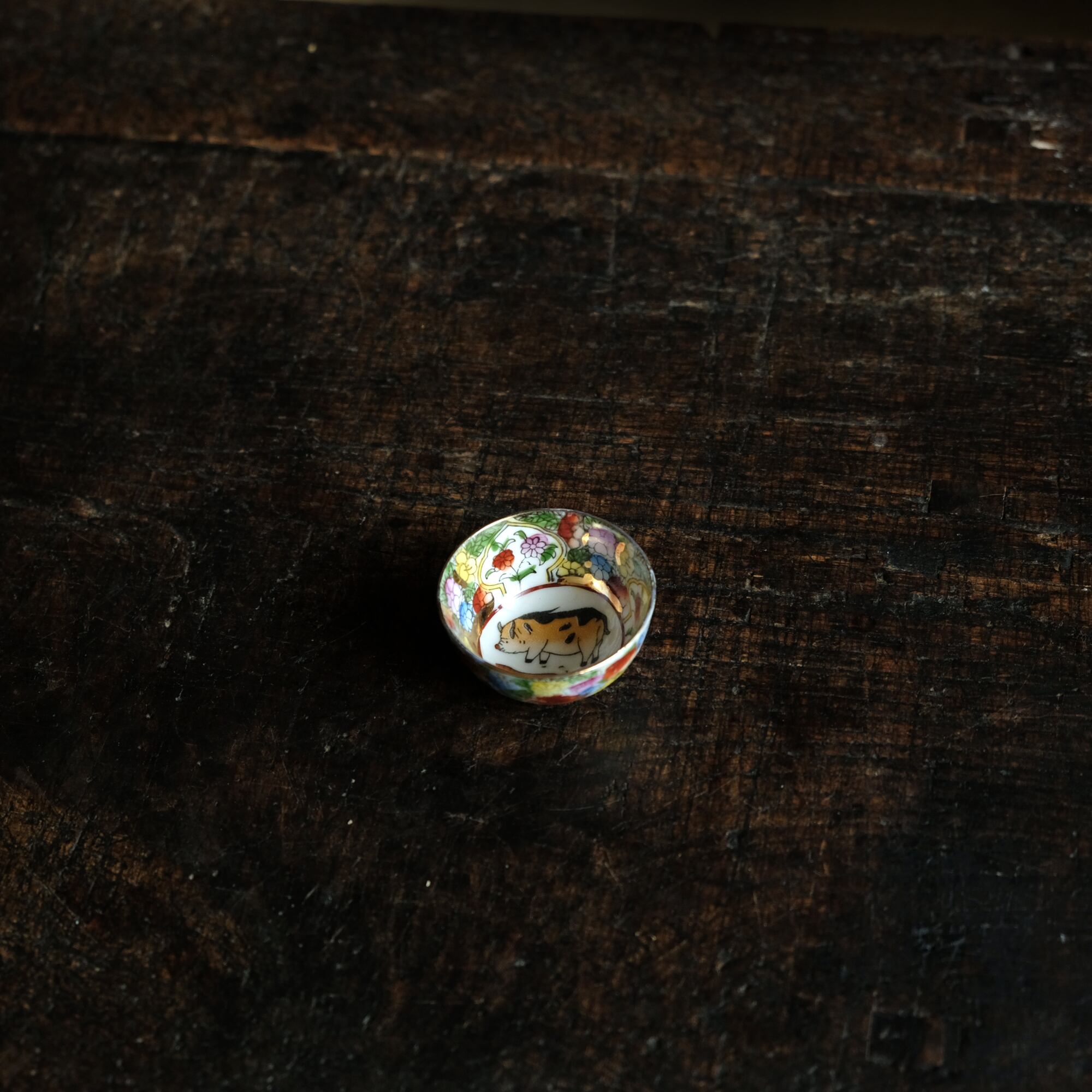 見込みに豚◆中国産 made in china 干支文色絵金彩小ぶり猪口 茶杯 花尽くし。シノワズリ チャイナレトロ b1