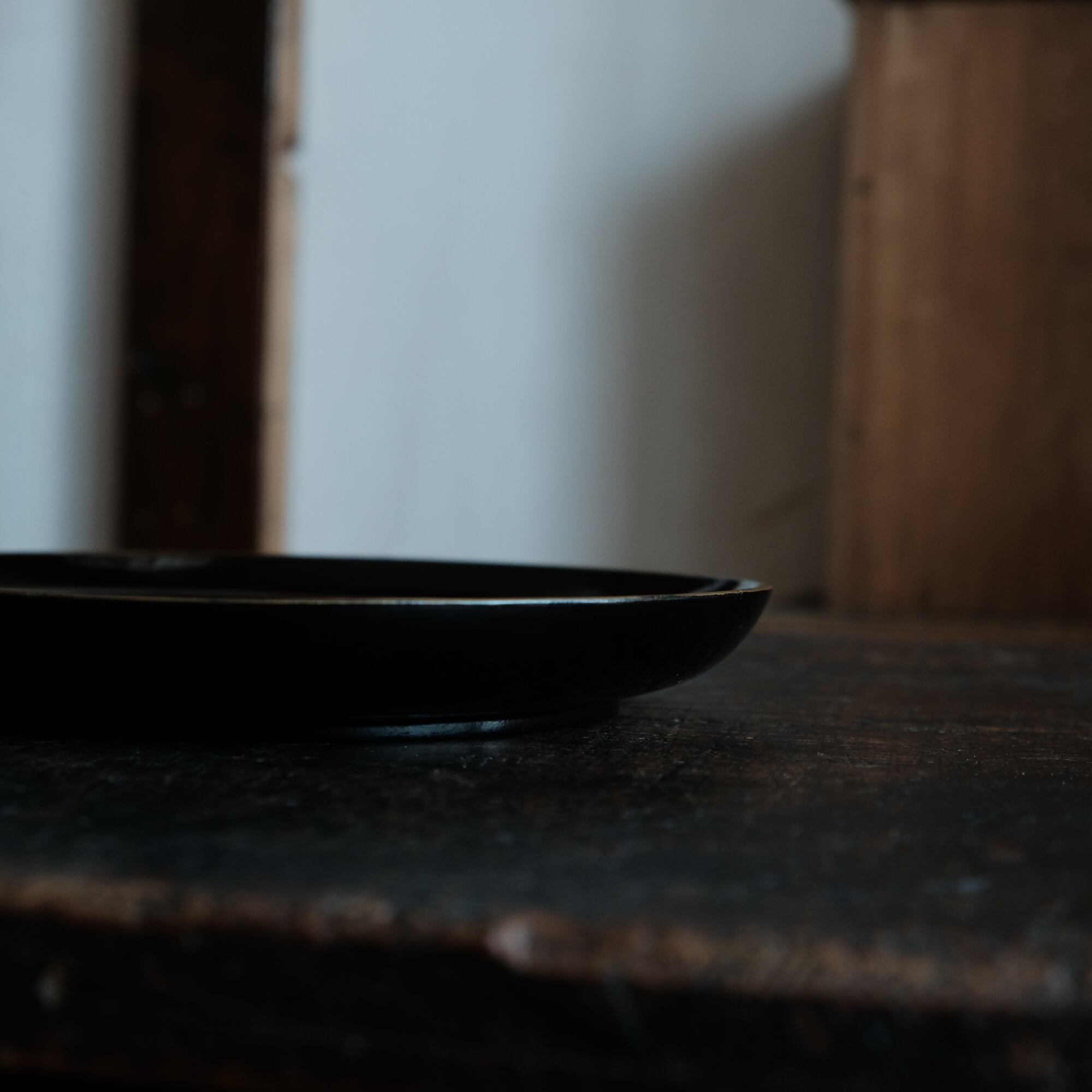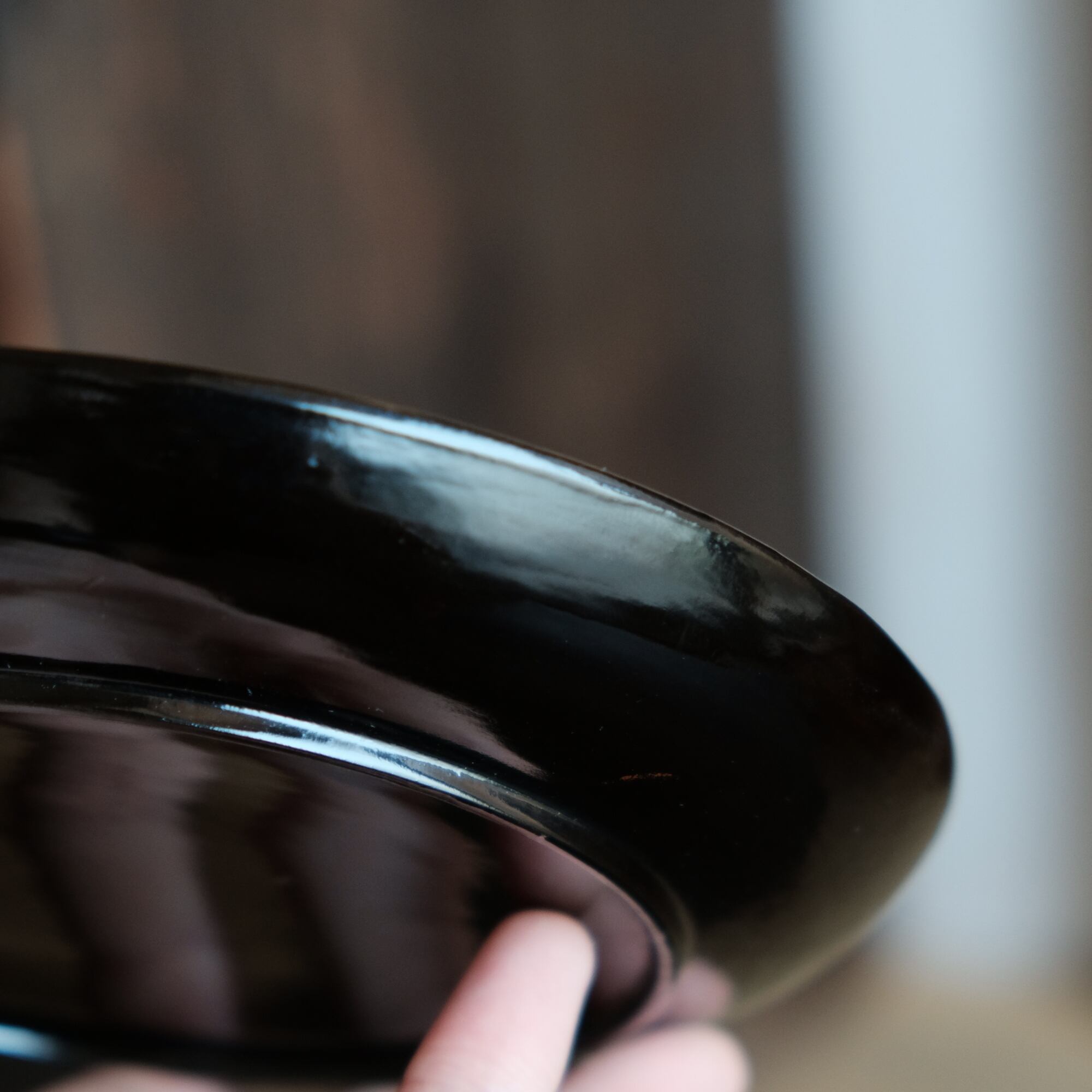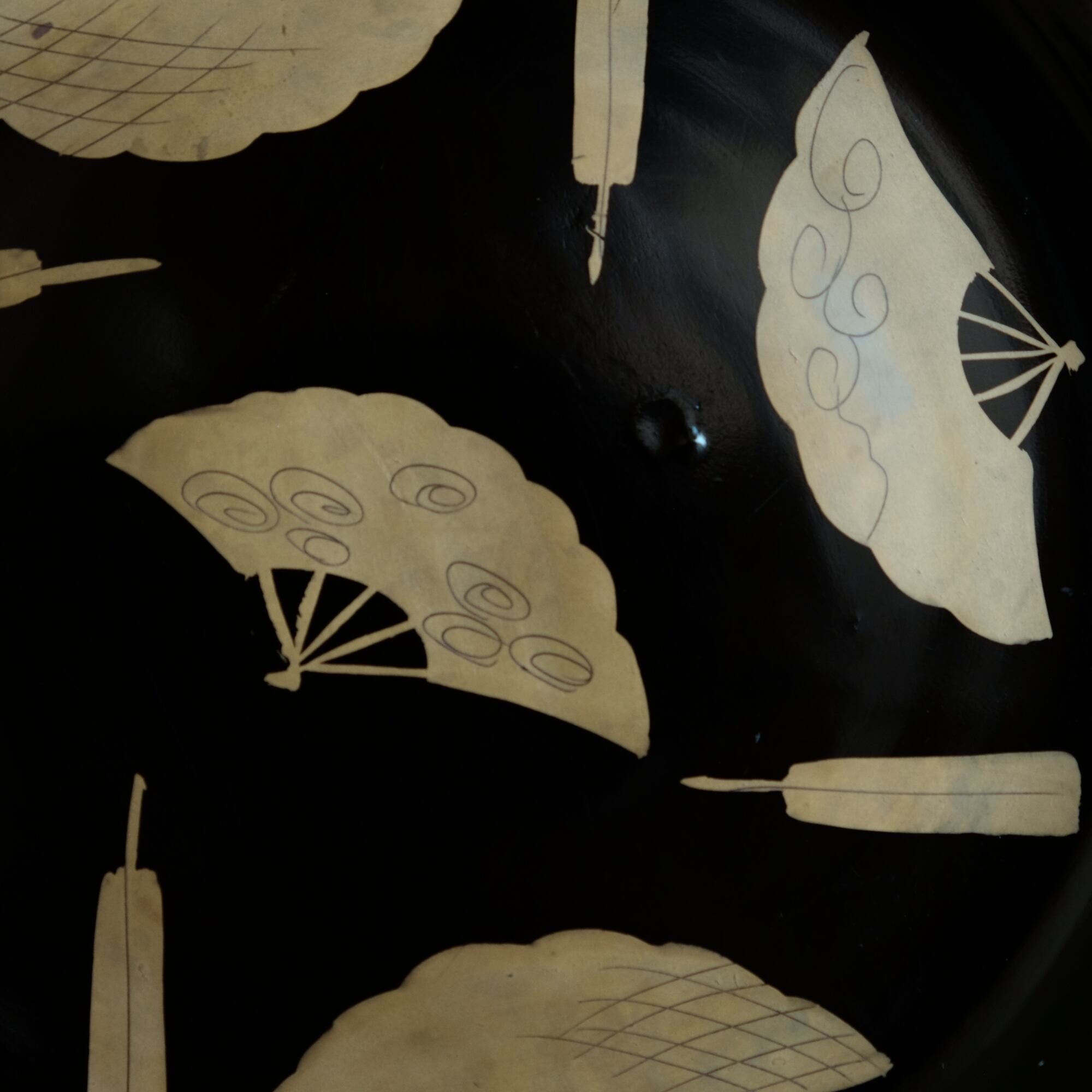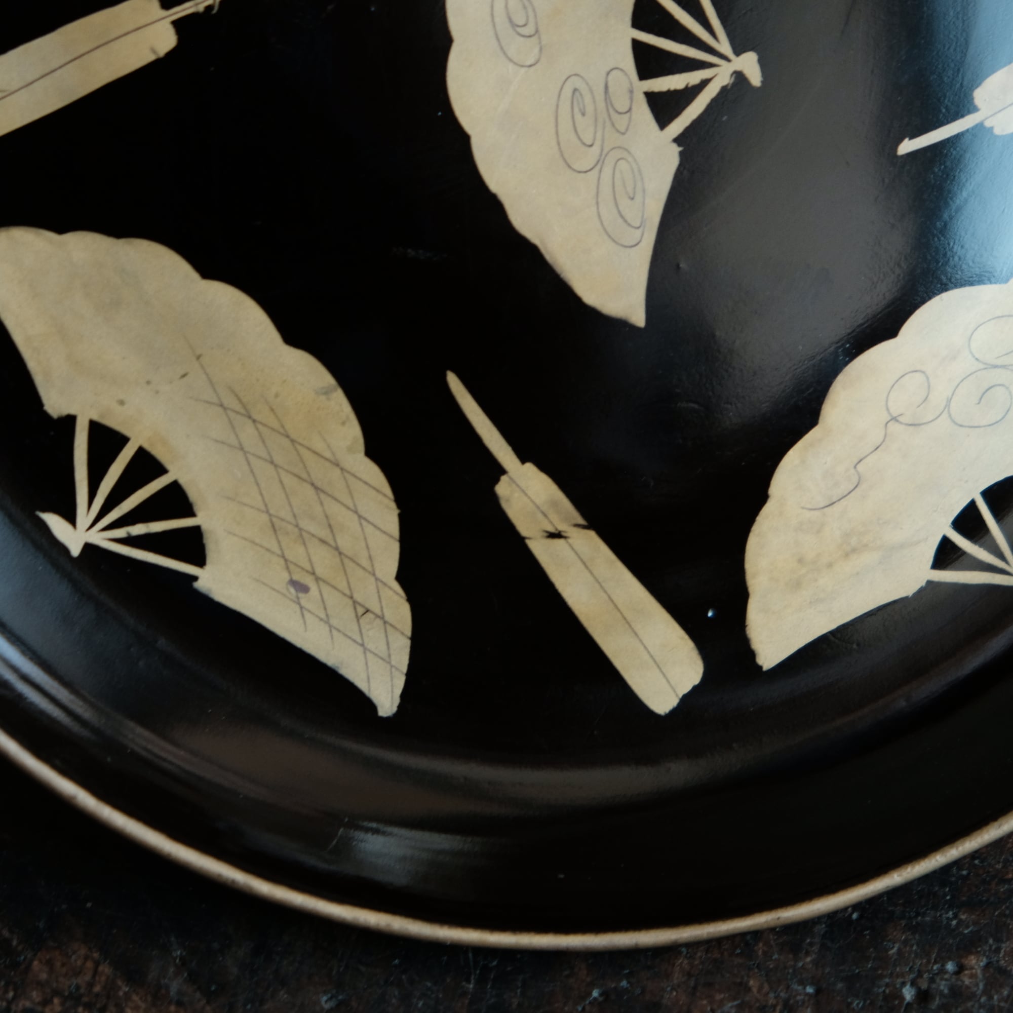 黒地にとても可愛らしい雰囲気の扇子の絵付けが素敵な中皿になります。