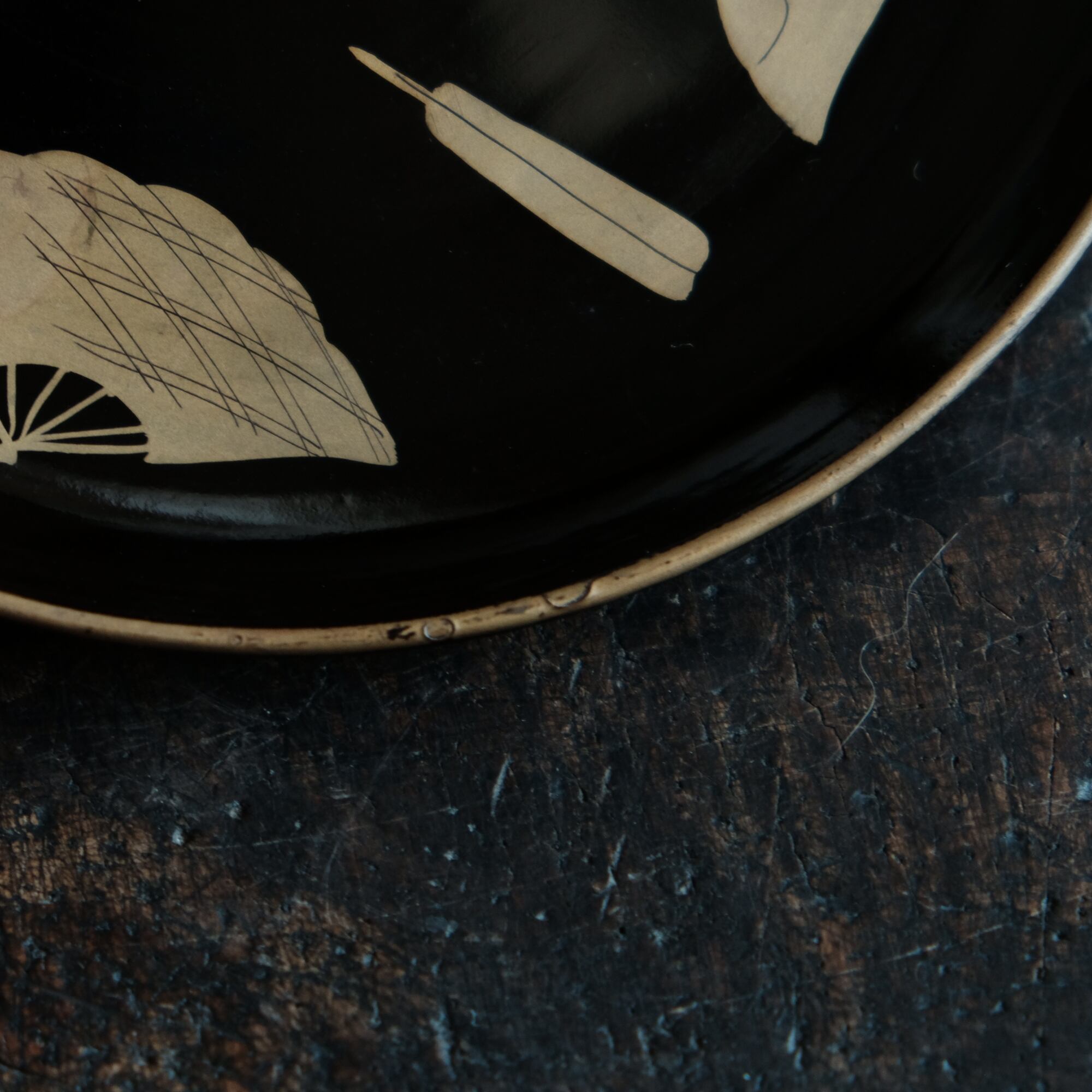 古い漆器特有のくすんだ色味の蒔絵がたまりません。