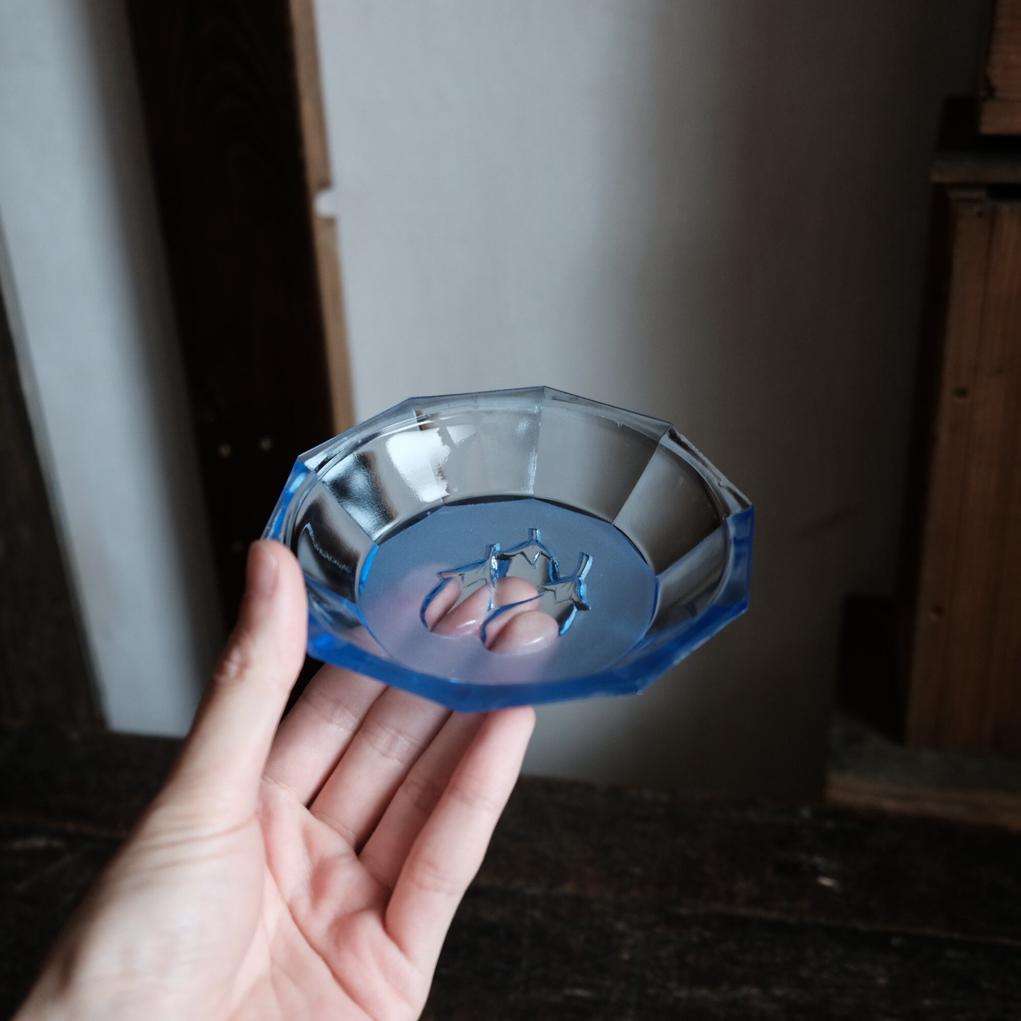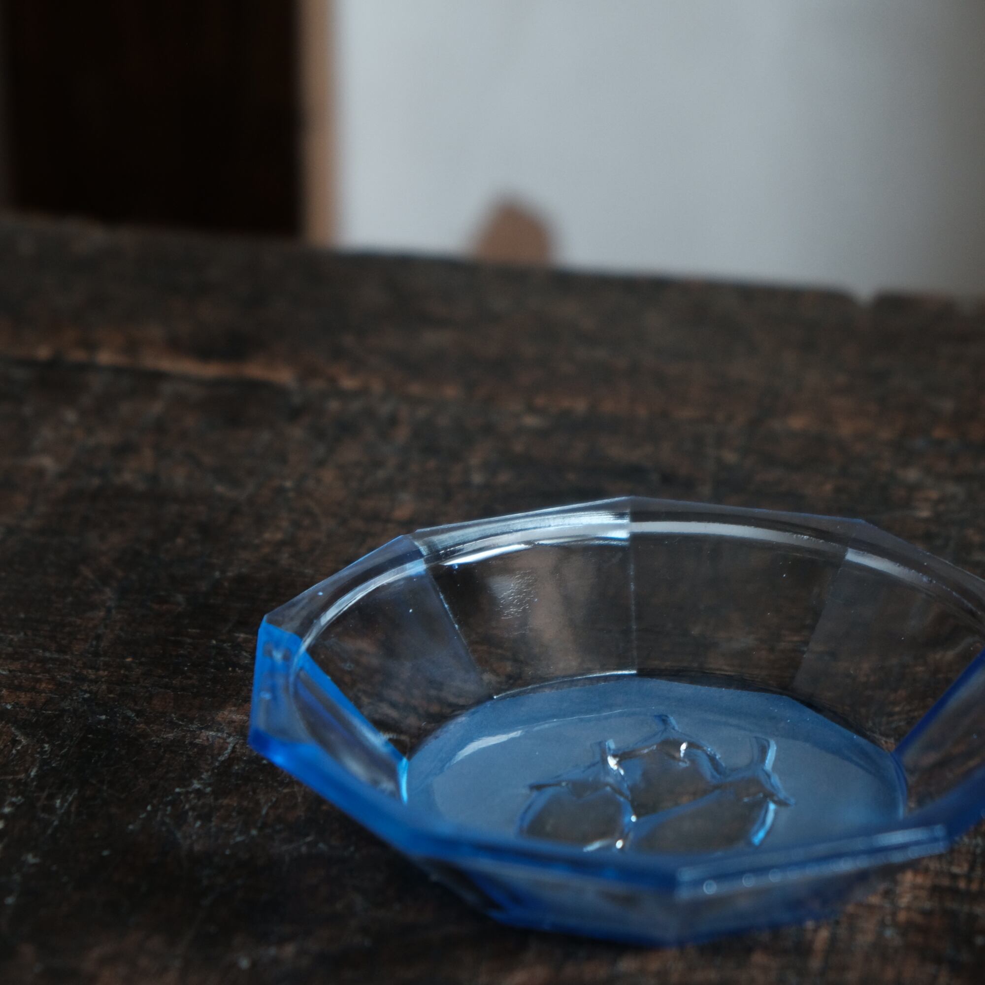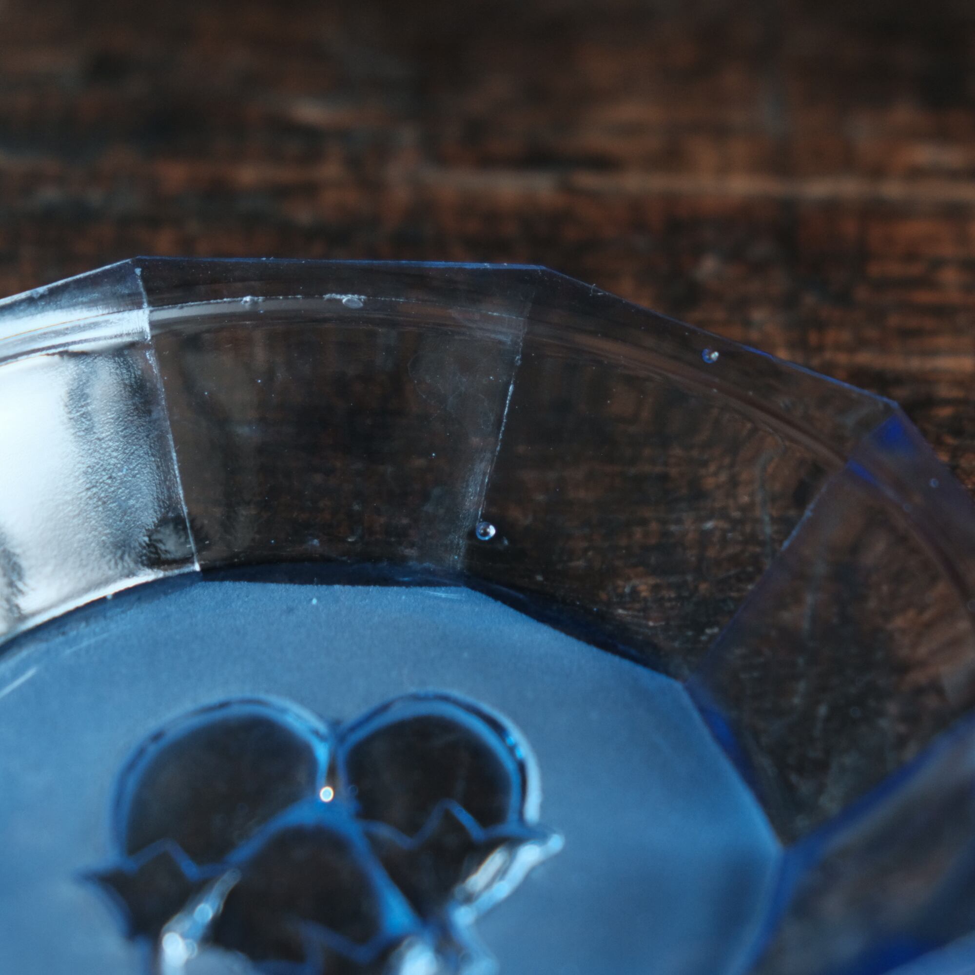 見込みに那須◆十角の形状。プレスガラス十角小皿 骨董/antiques アンティーク 古民家 大正〜昭和初期