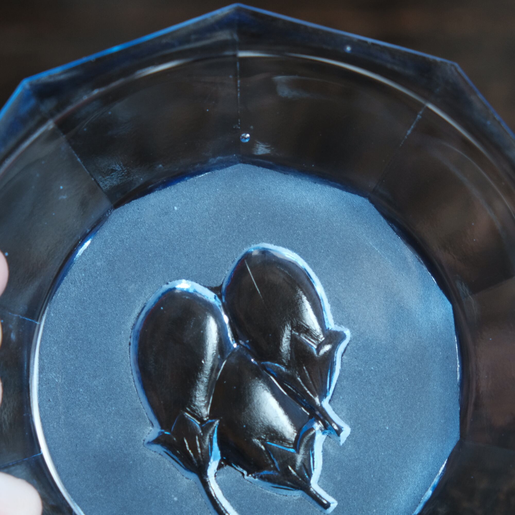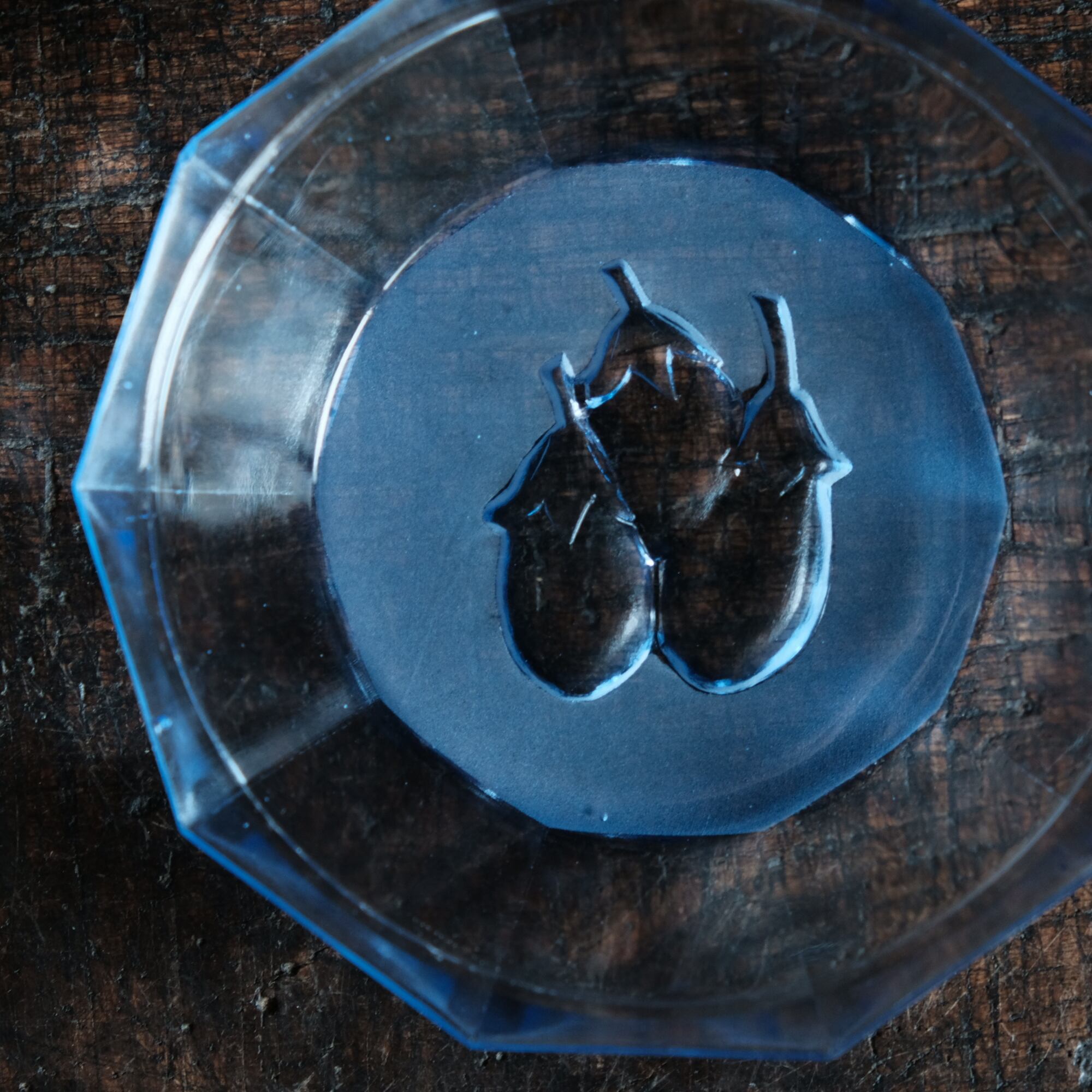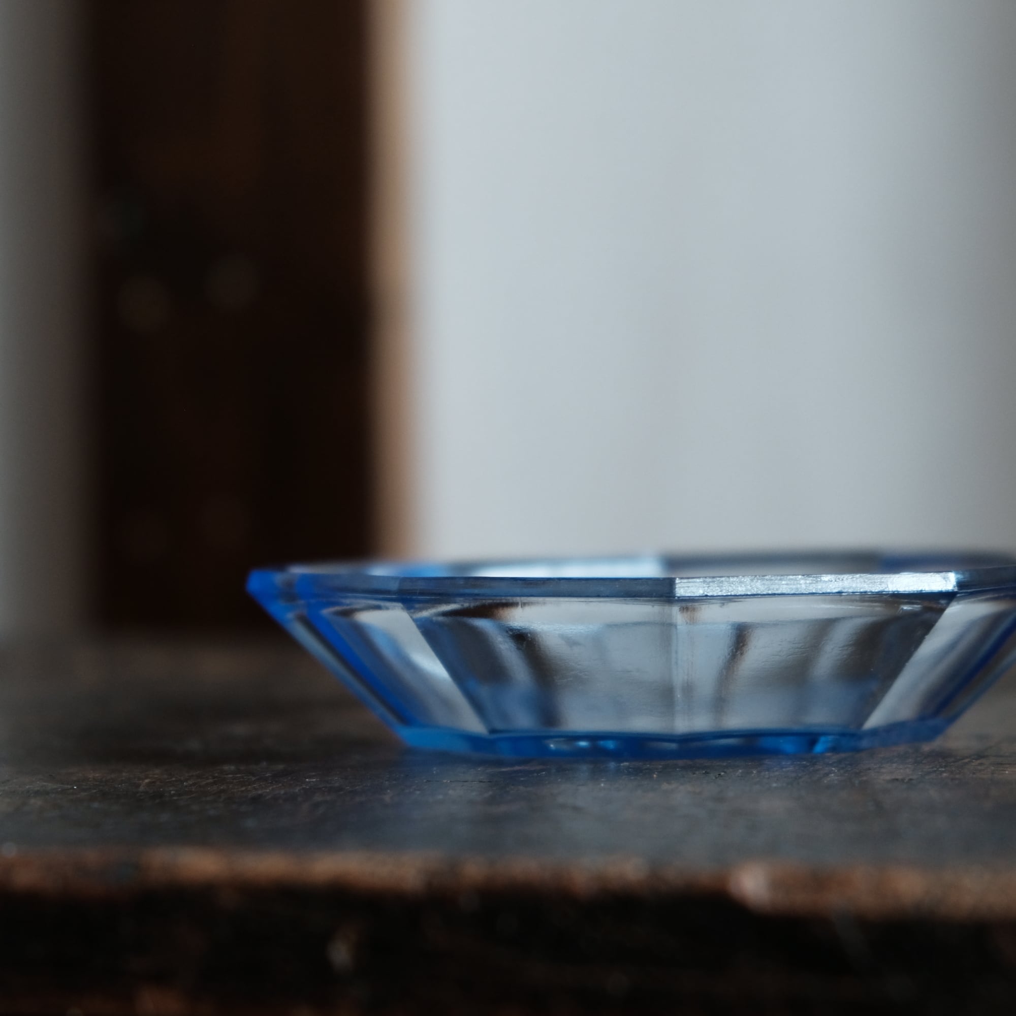 見込みに那須◆十角の形状。プレスガラス十角小皿 骨董/antiques アンティーク 古民家 大正〜昭和初期