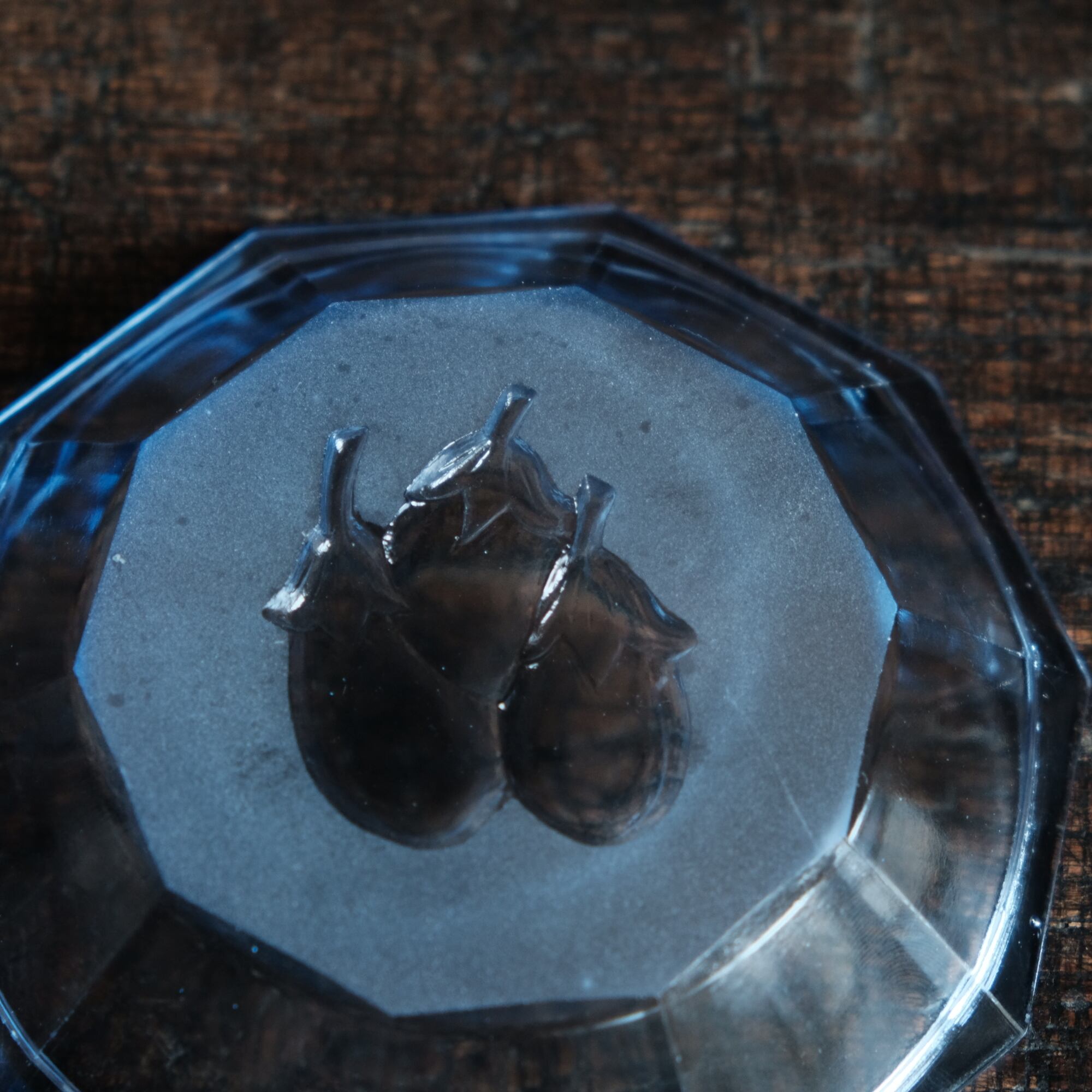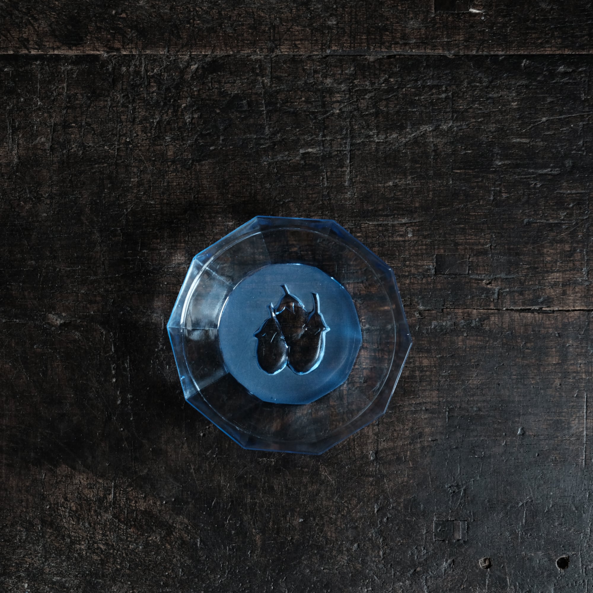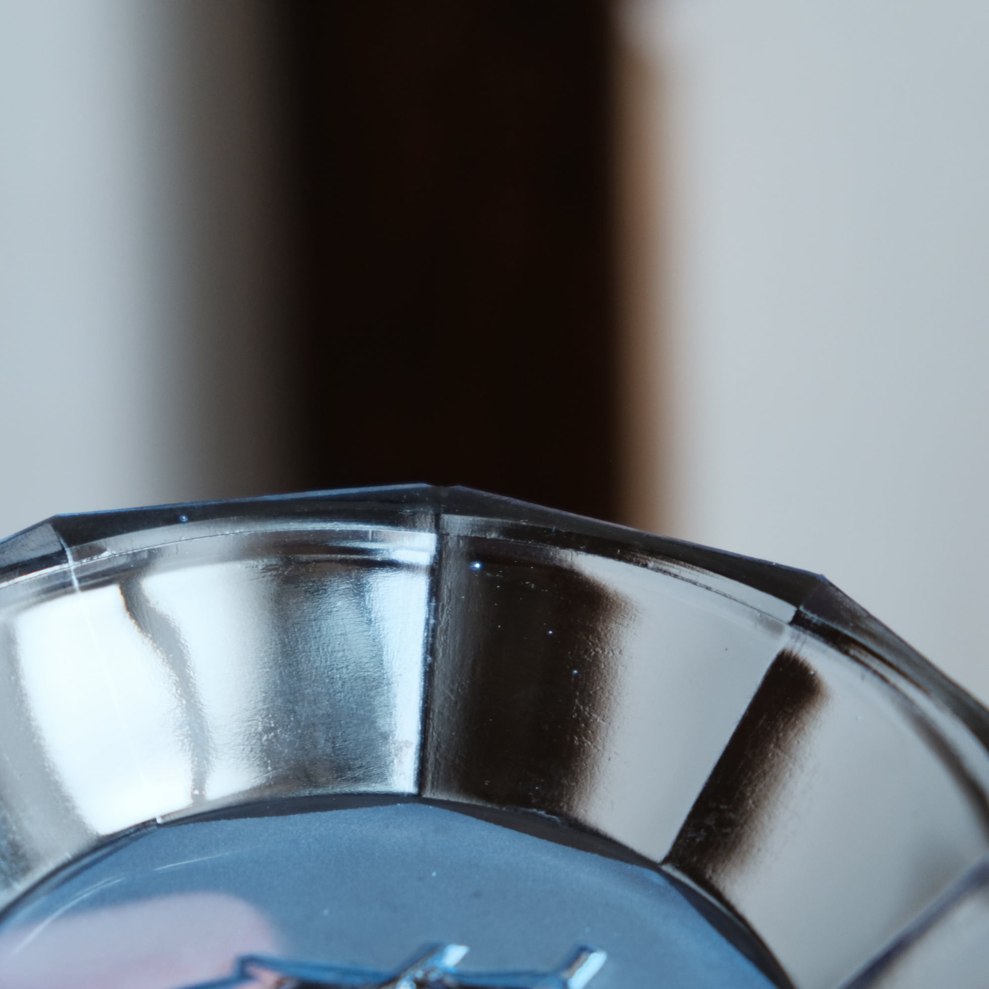 縁に微々たるアタリ・制作時に生じた線のようなもの、どの個体も内部に混入した気泡、制作段階に生じたバリなどの縁のザラつきが見られ現代のガラス製品のように完璧な造りではございませんのでこれらの不完全さも含め味風合いとして見ていただける方のみでお願いいたします。