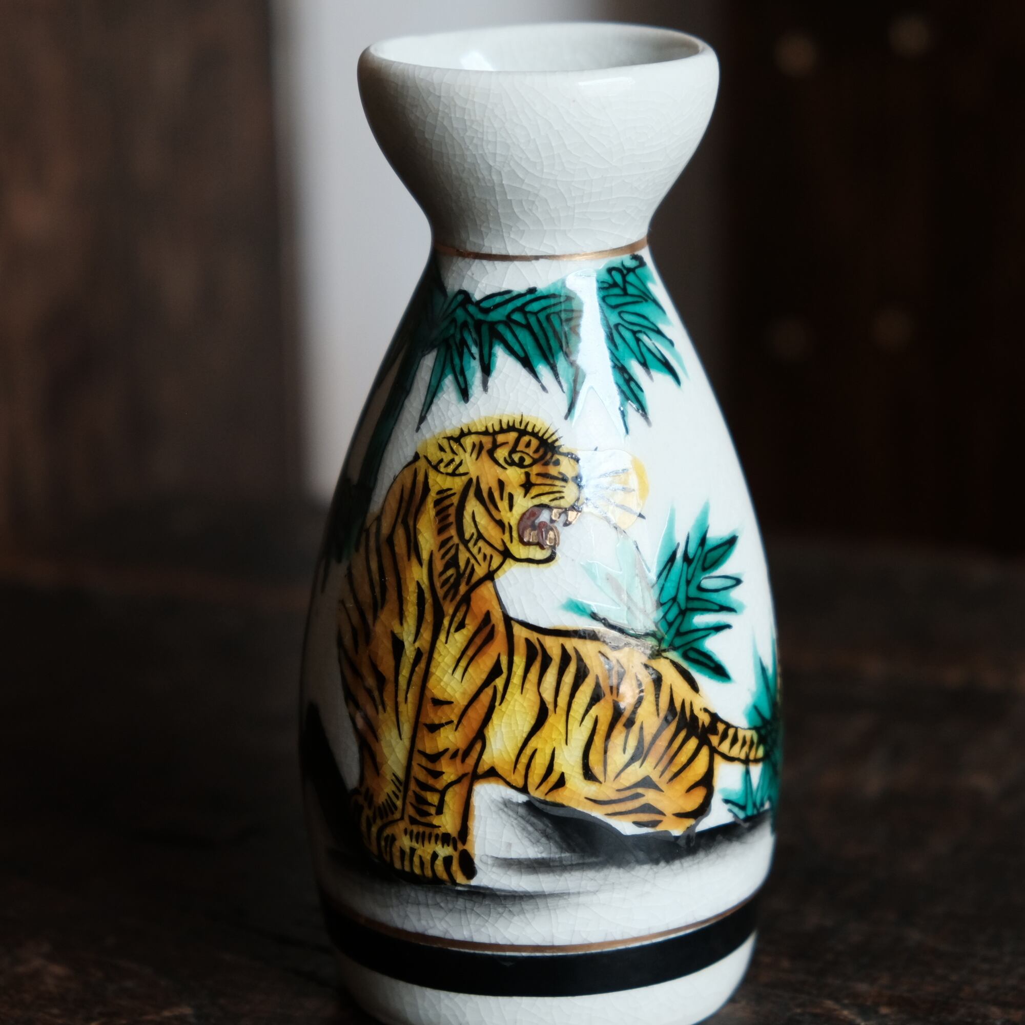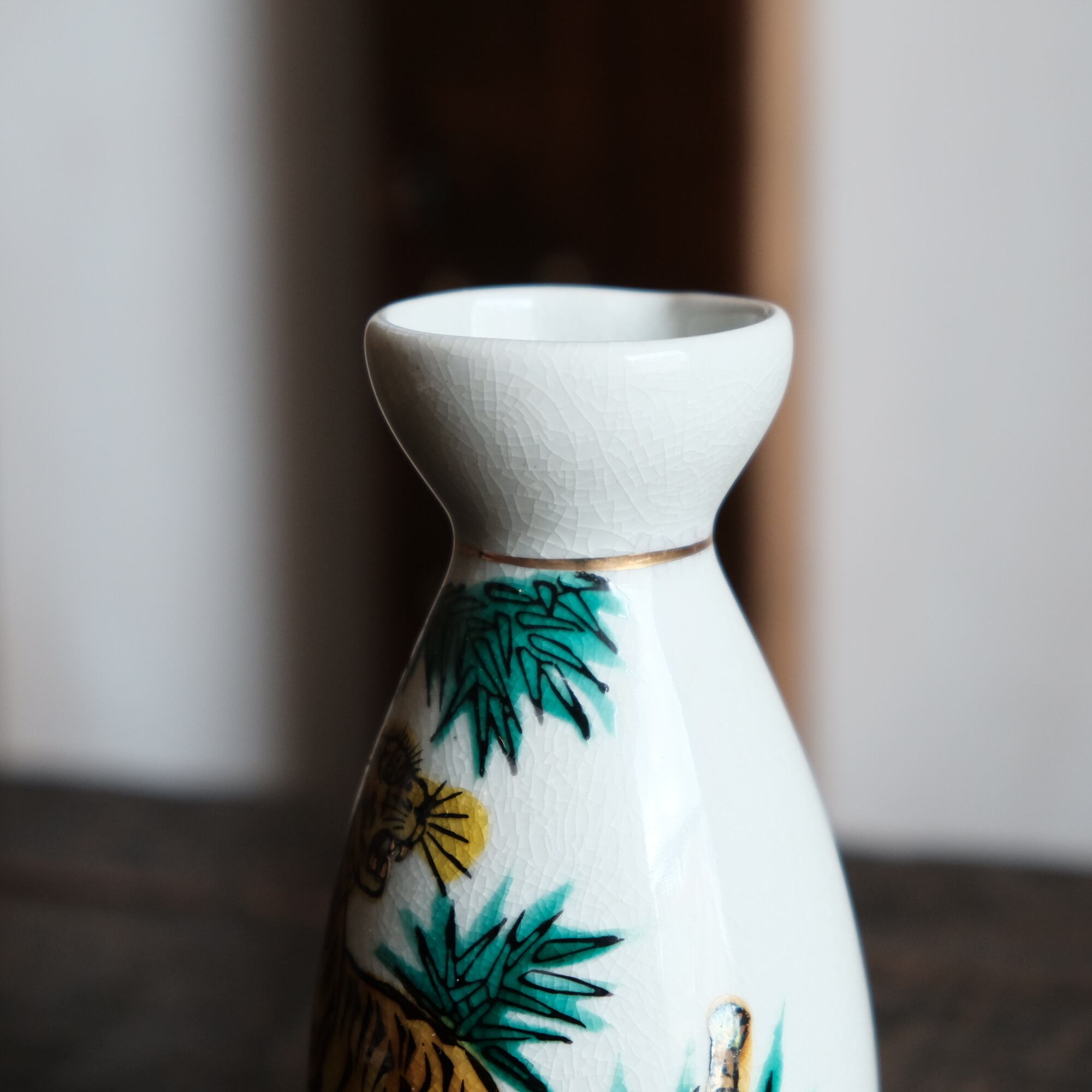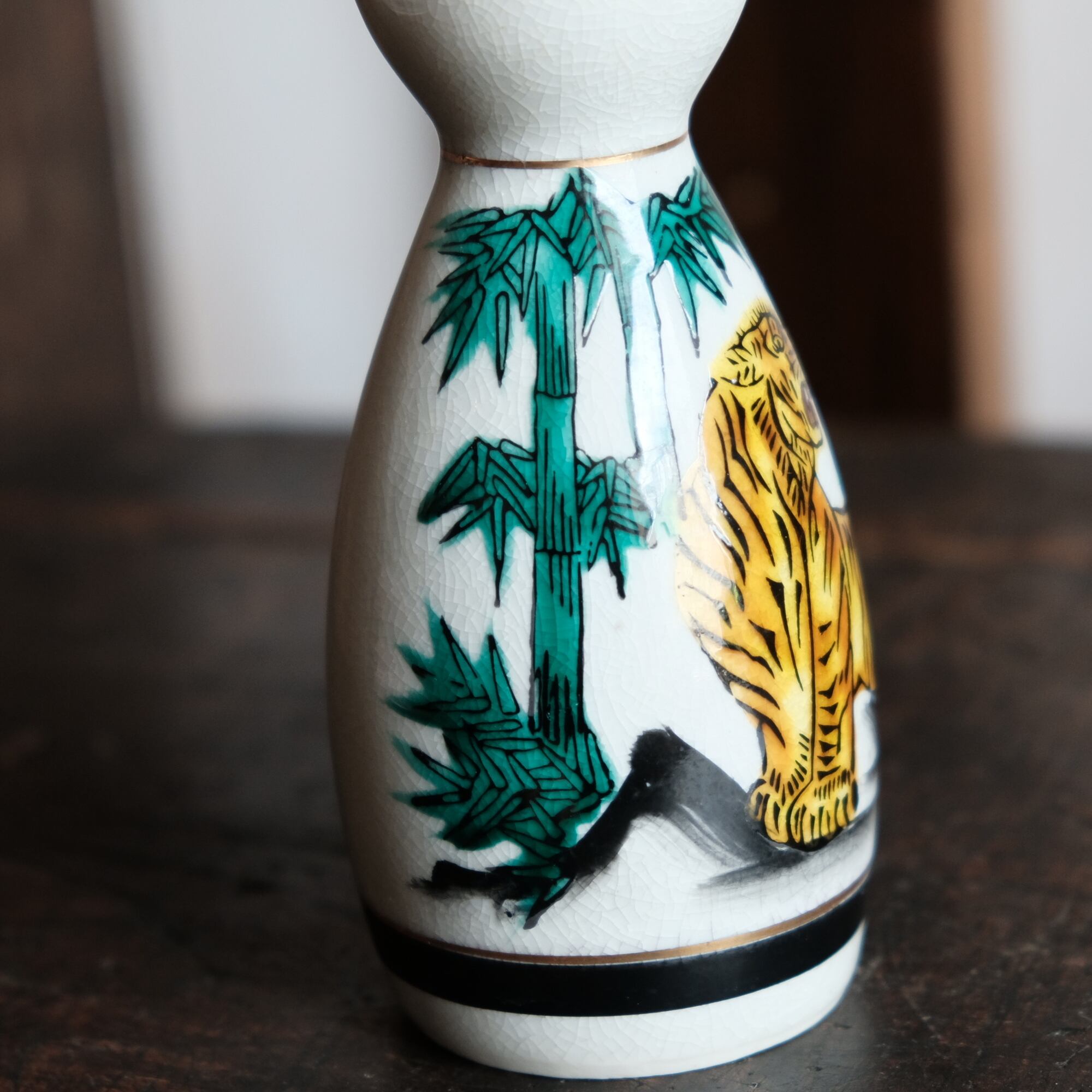 豪快な虎と竹林(寅)◆九谷焼 色絵金彩徳利 酒器 工芸品 昭和レトロ インテリア 古民家 b1