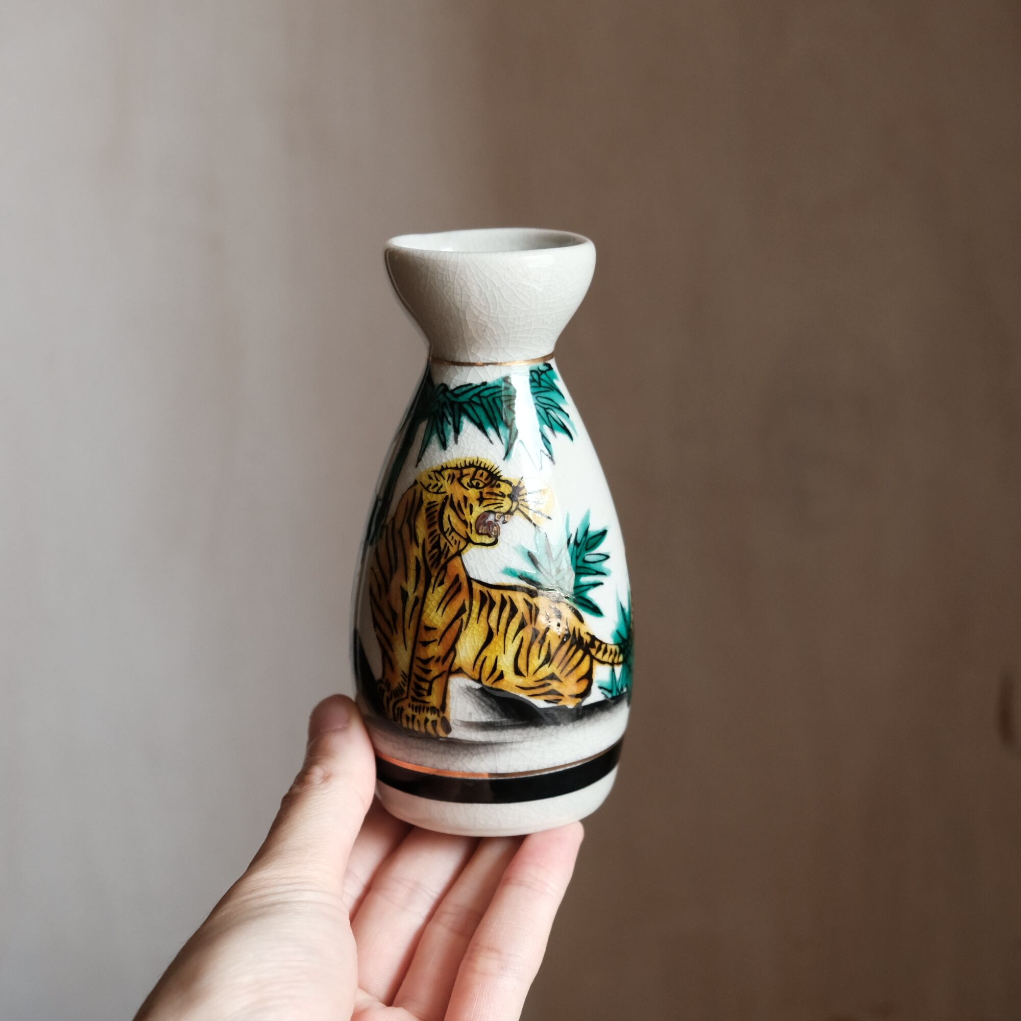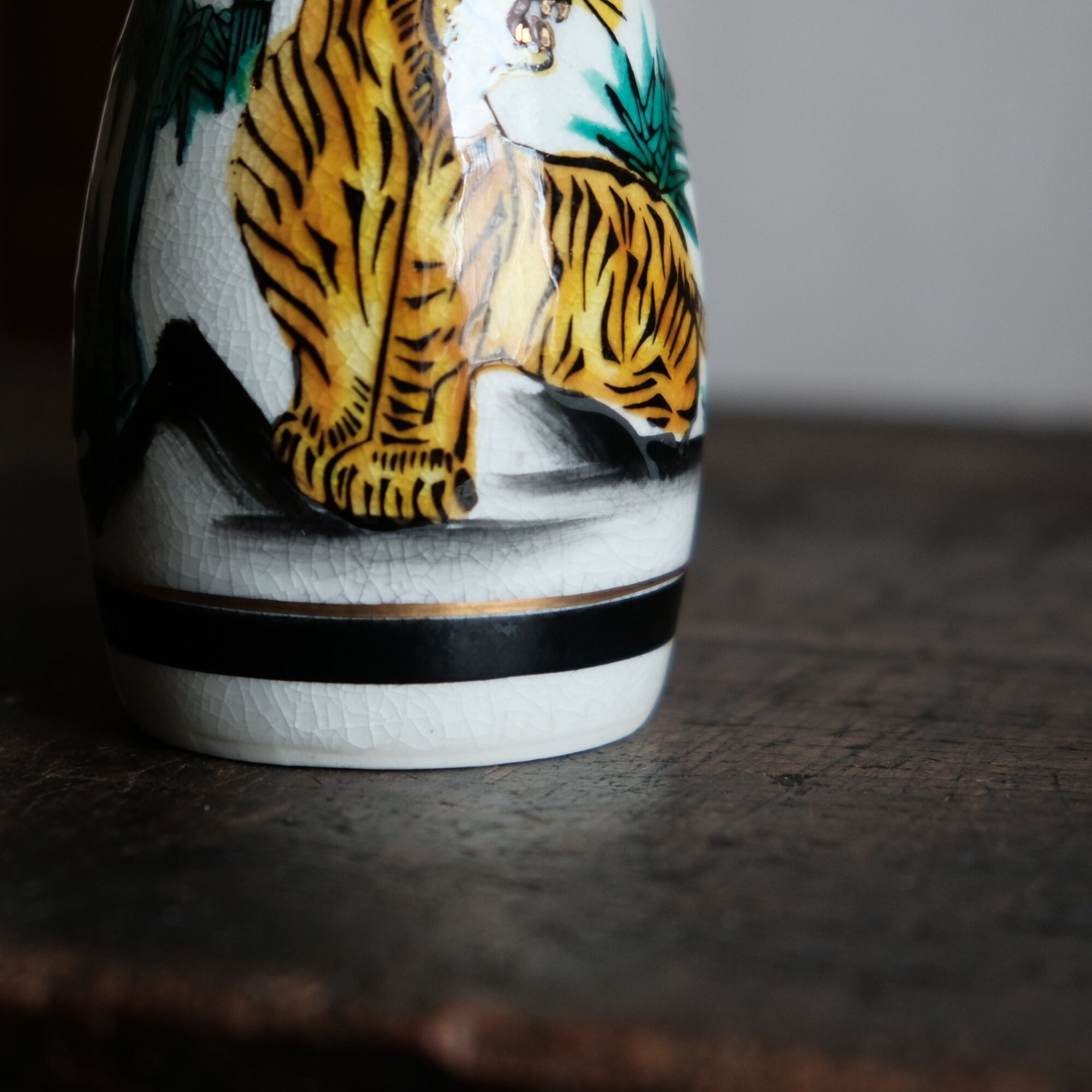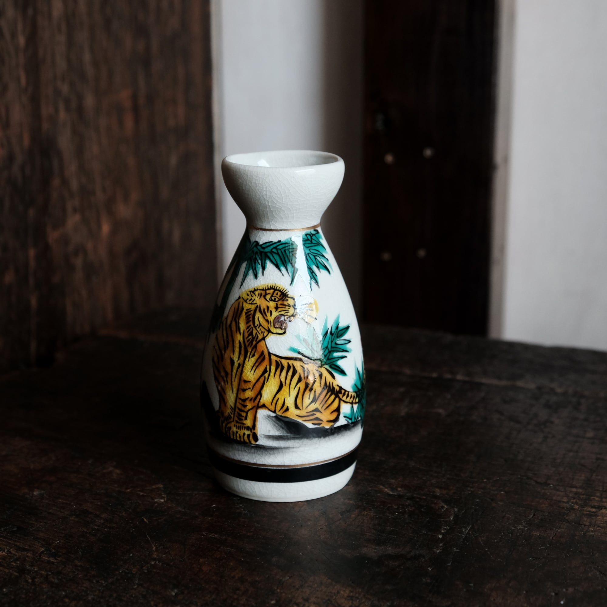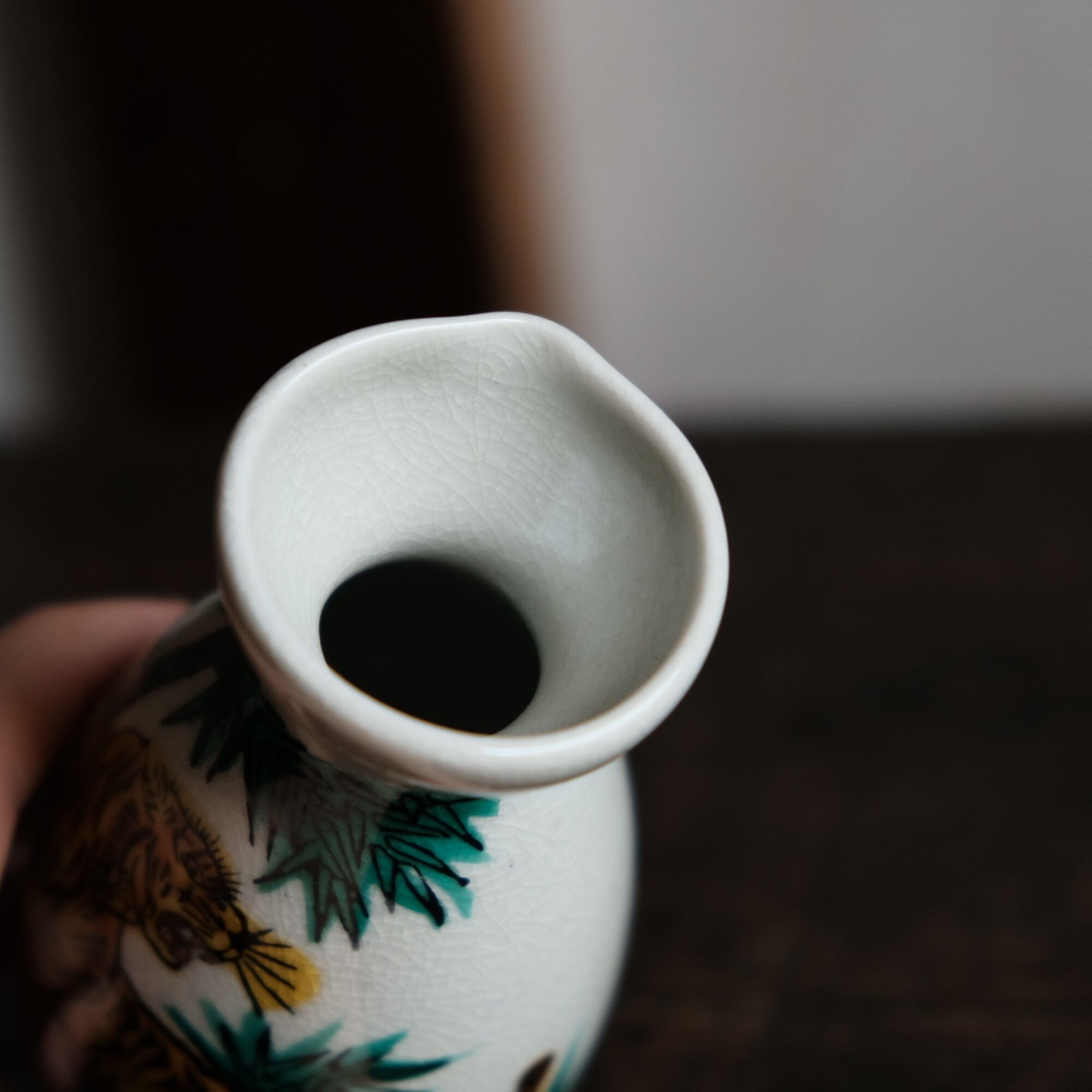 豪快な虎と竹林(寅)◆九谷焼 色絵金彩徳利 酒器 工芸品 昭和レトロ インテリア 古民家 b1