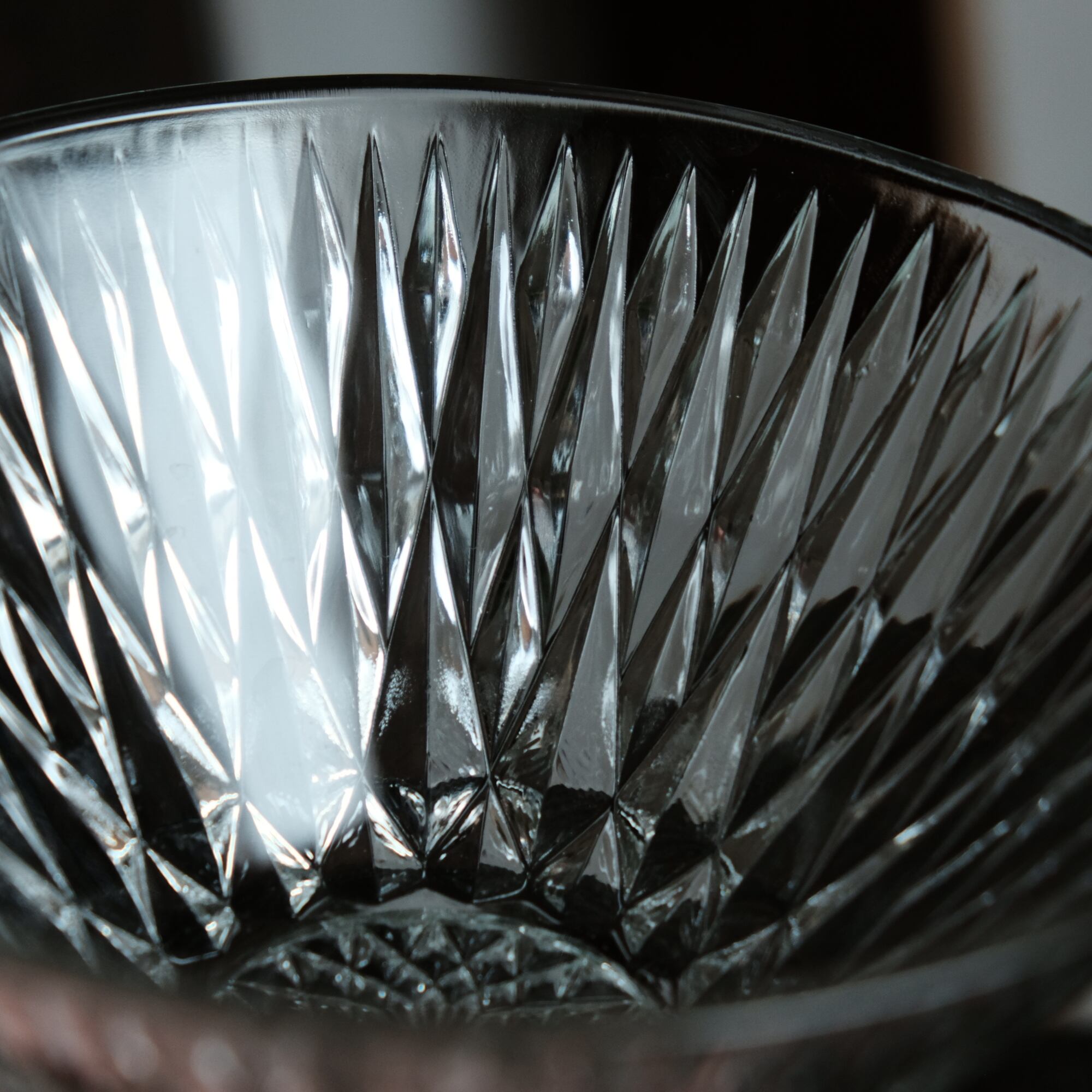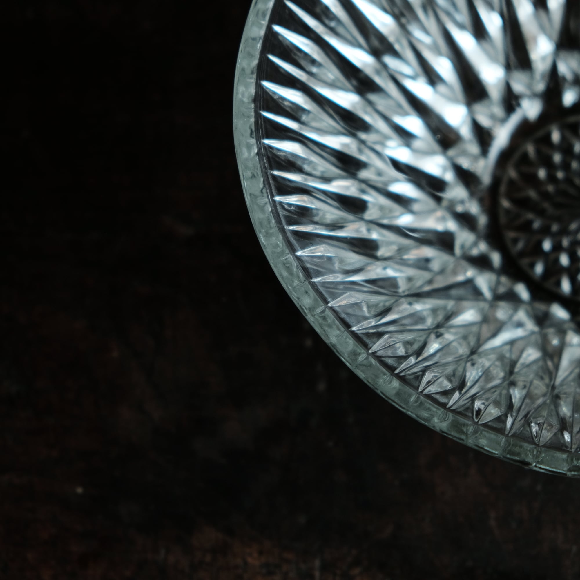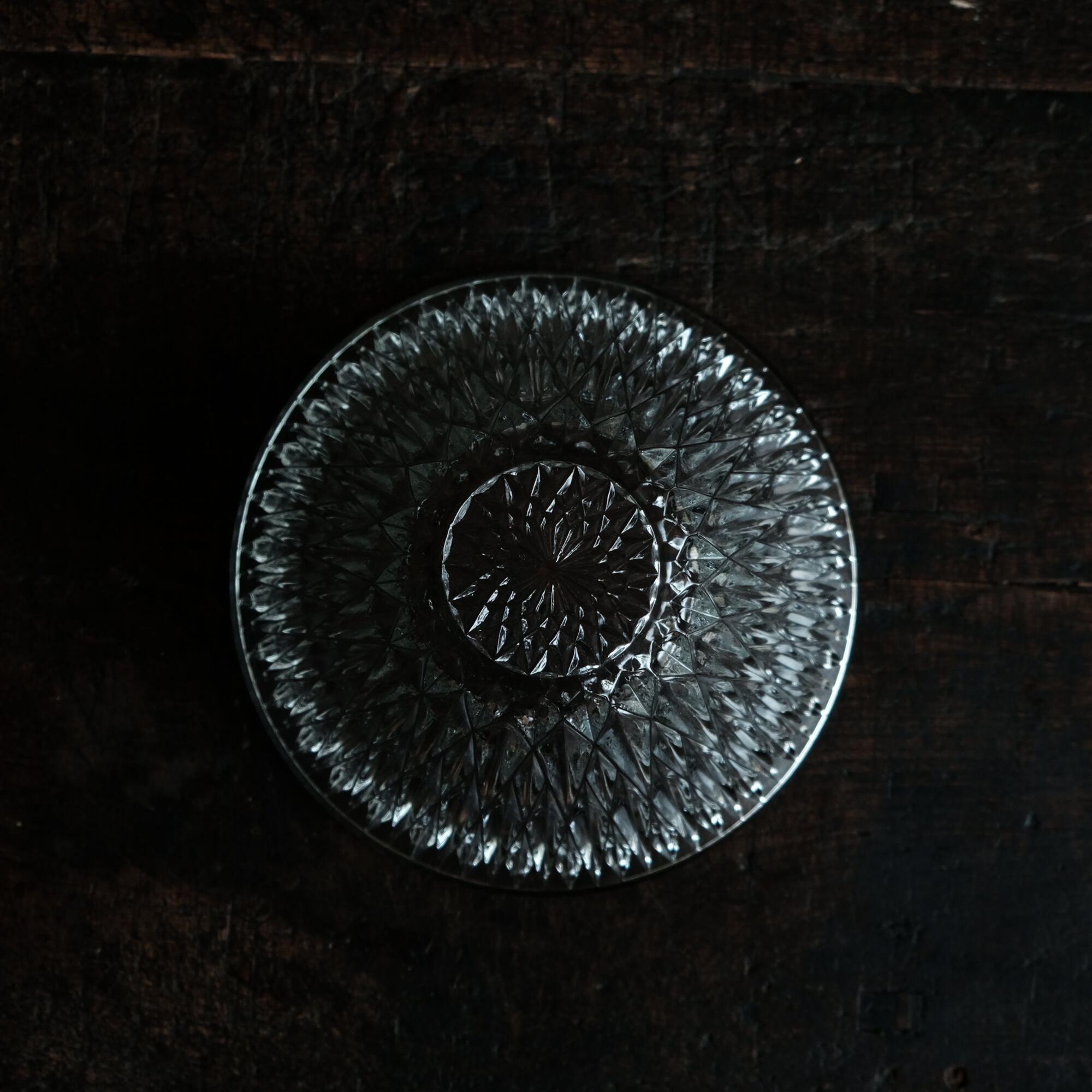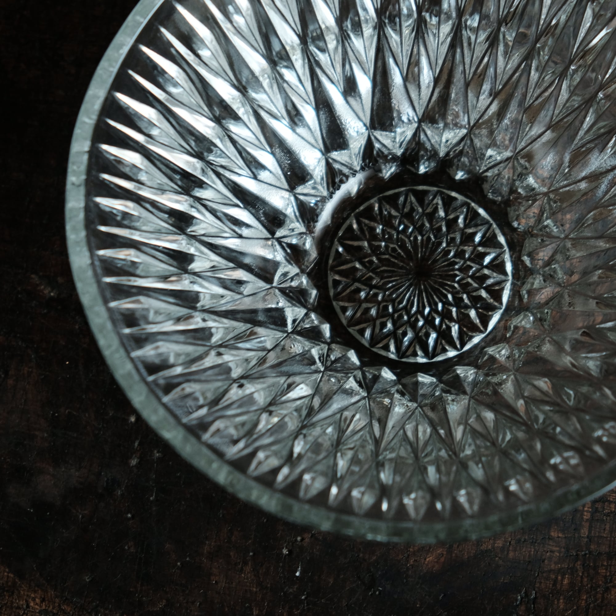 彫りの深いクッキリとしたプレスガラスで光を浴びた際の表情がとても綺麗です。
