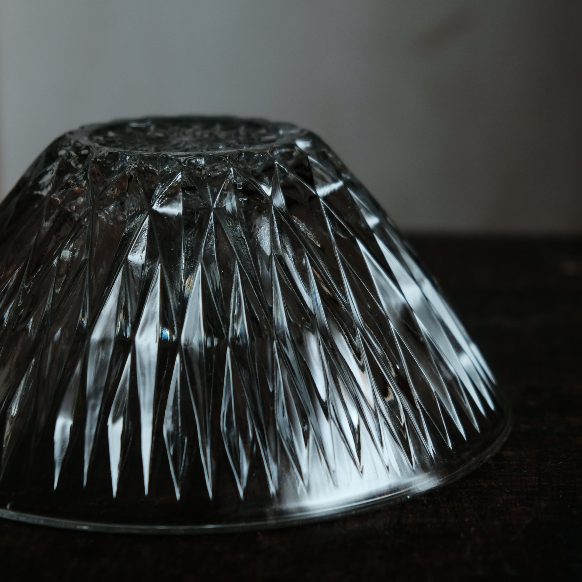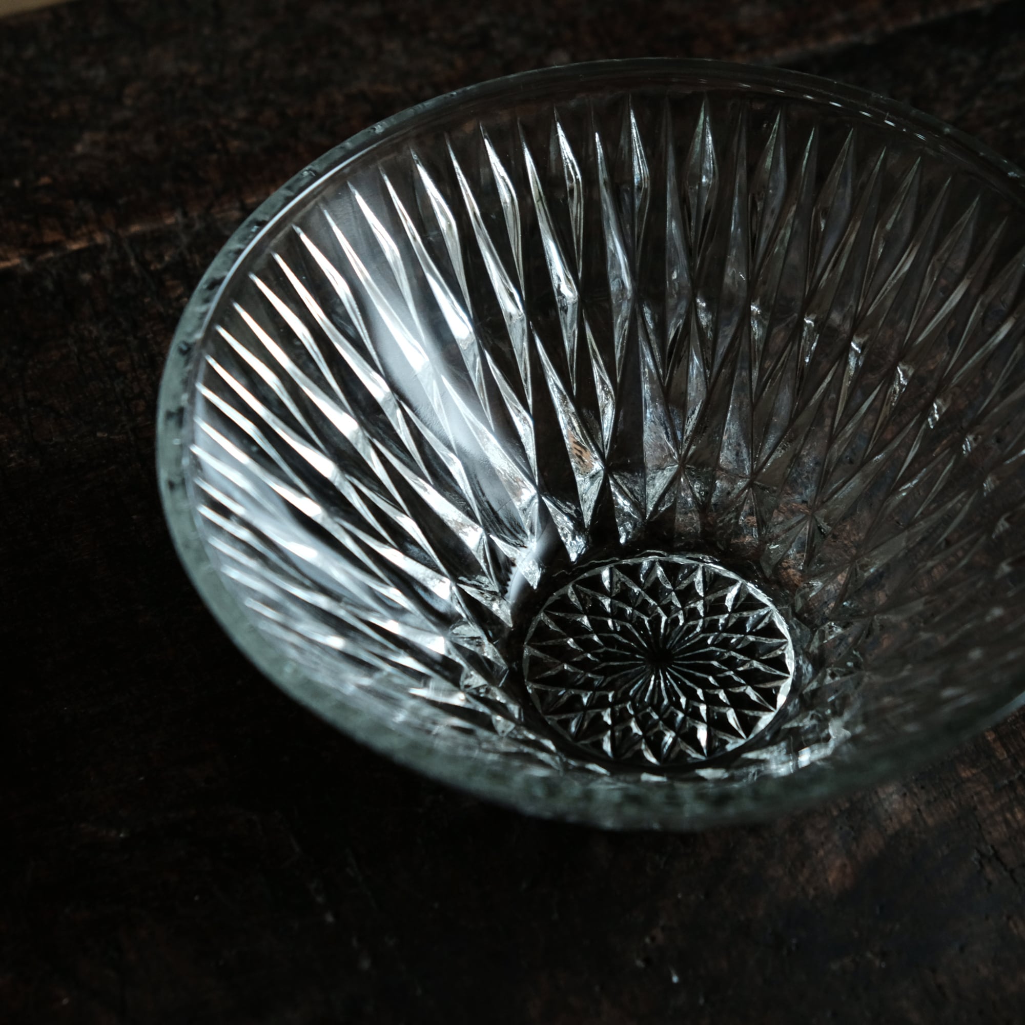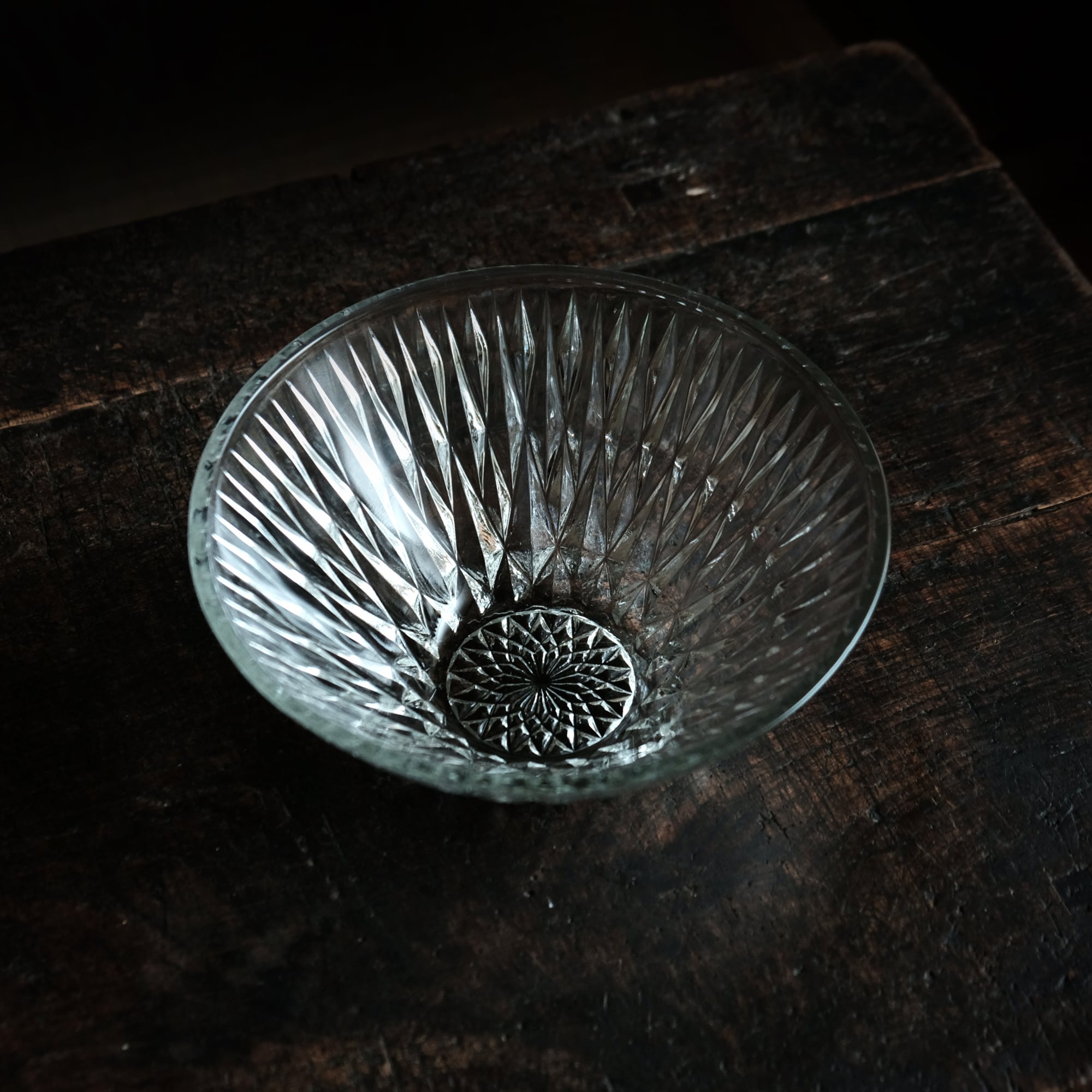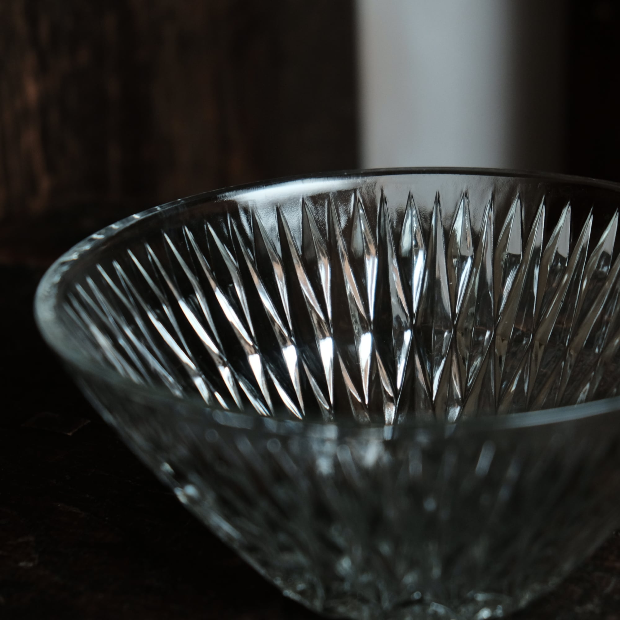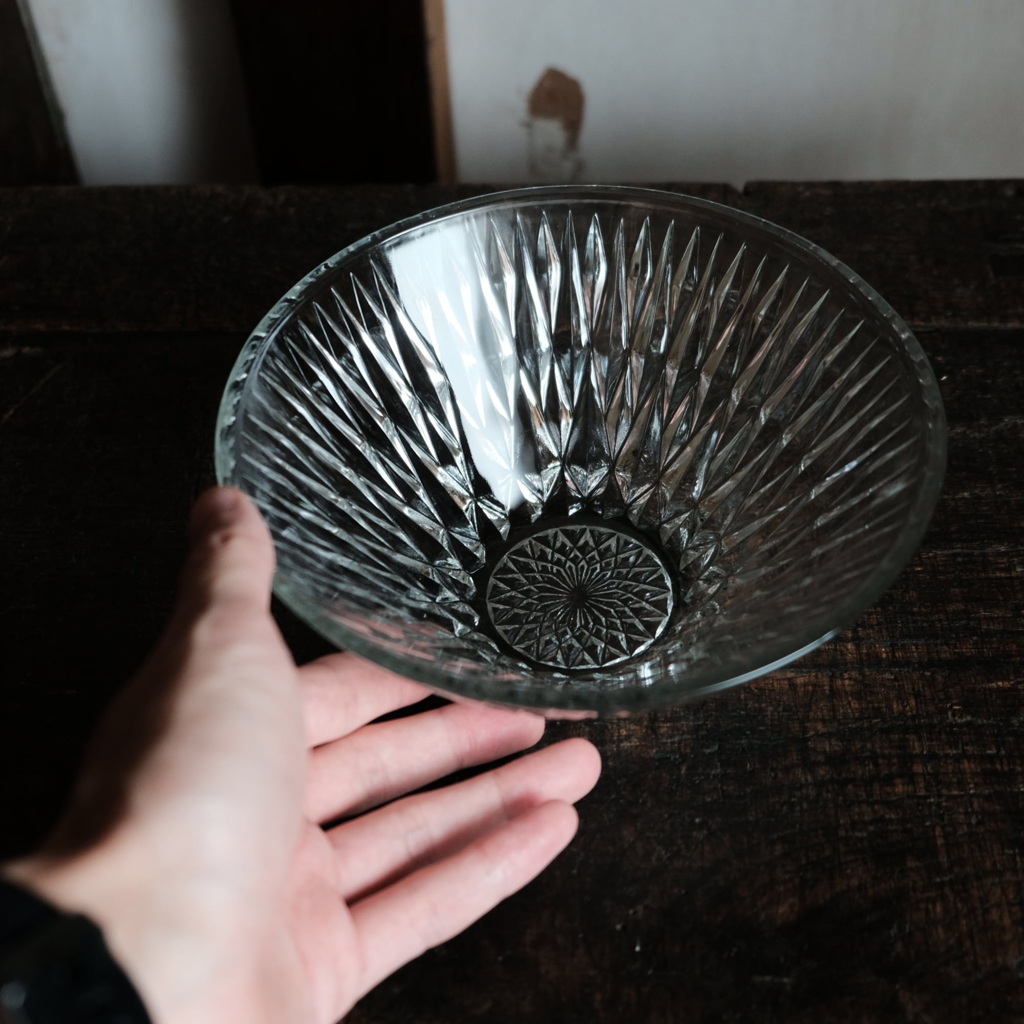 ギザギザで素敵◆しっかりとした厚み。クリスタル・プレスガラス深鉢 素麺鉢 ニュートロ 昭和中〜後期