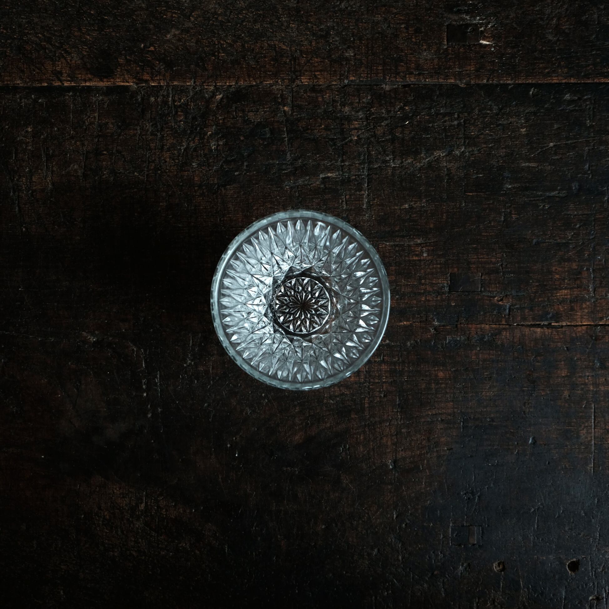 彫りの深いクッキリとしたプレスガラスで光を浴びた際の表情がとても綺麗です。