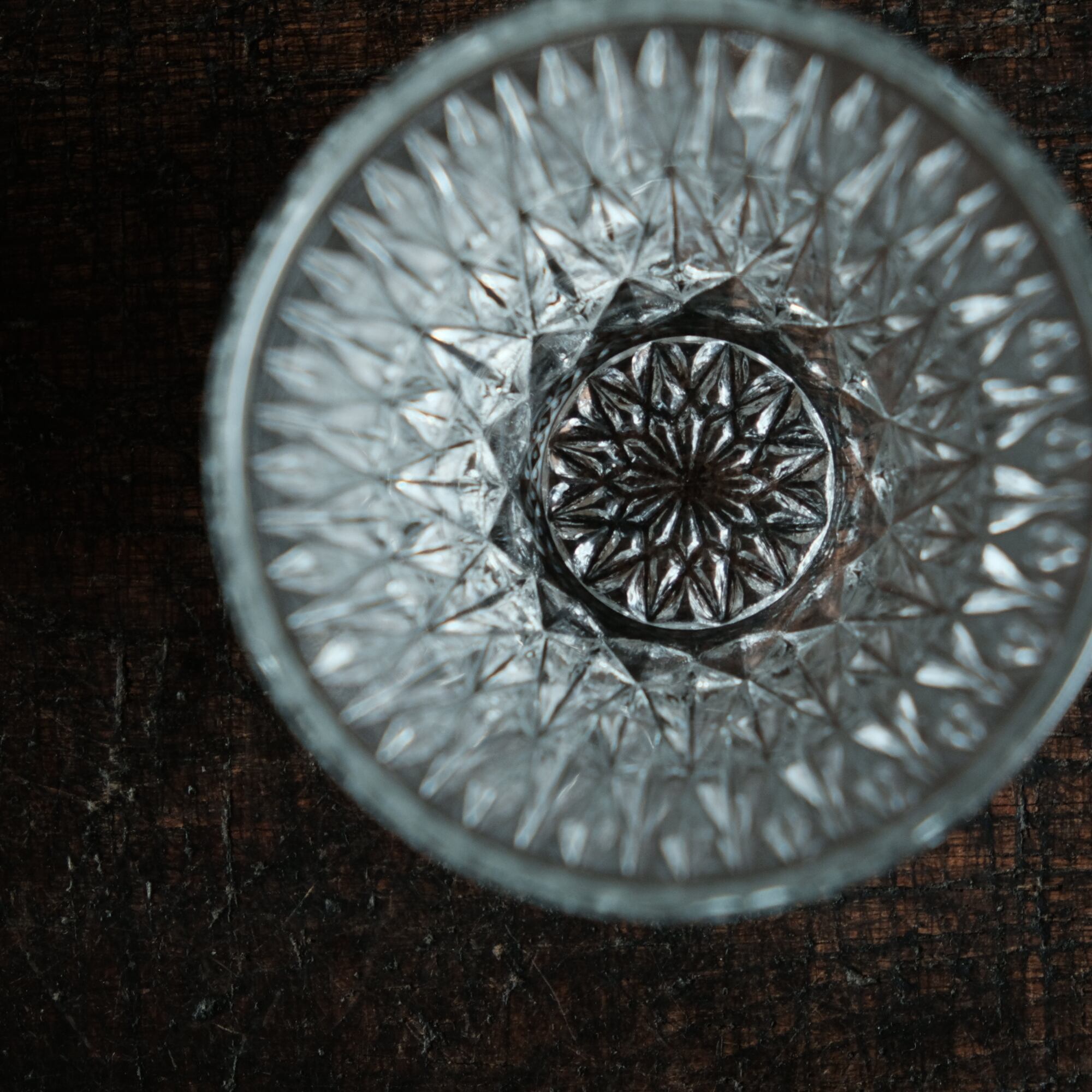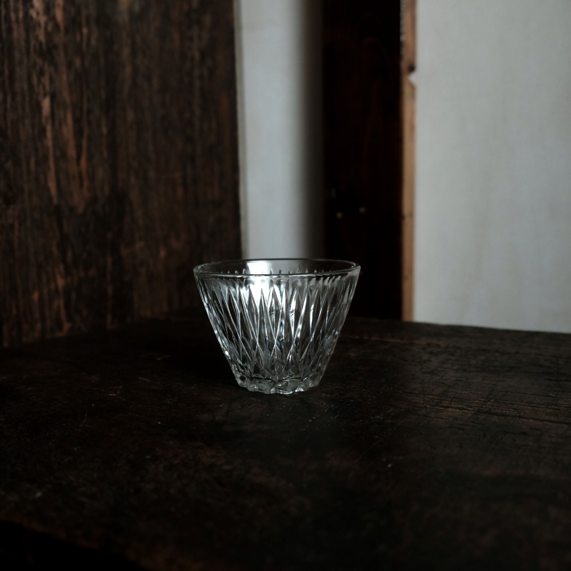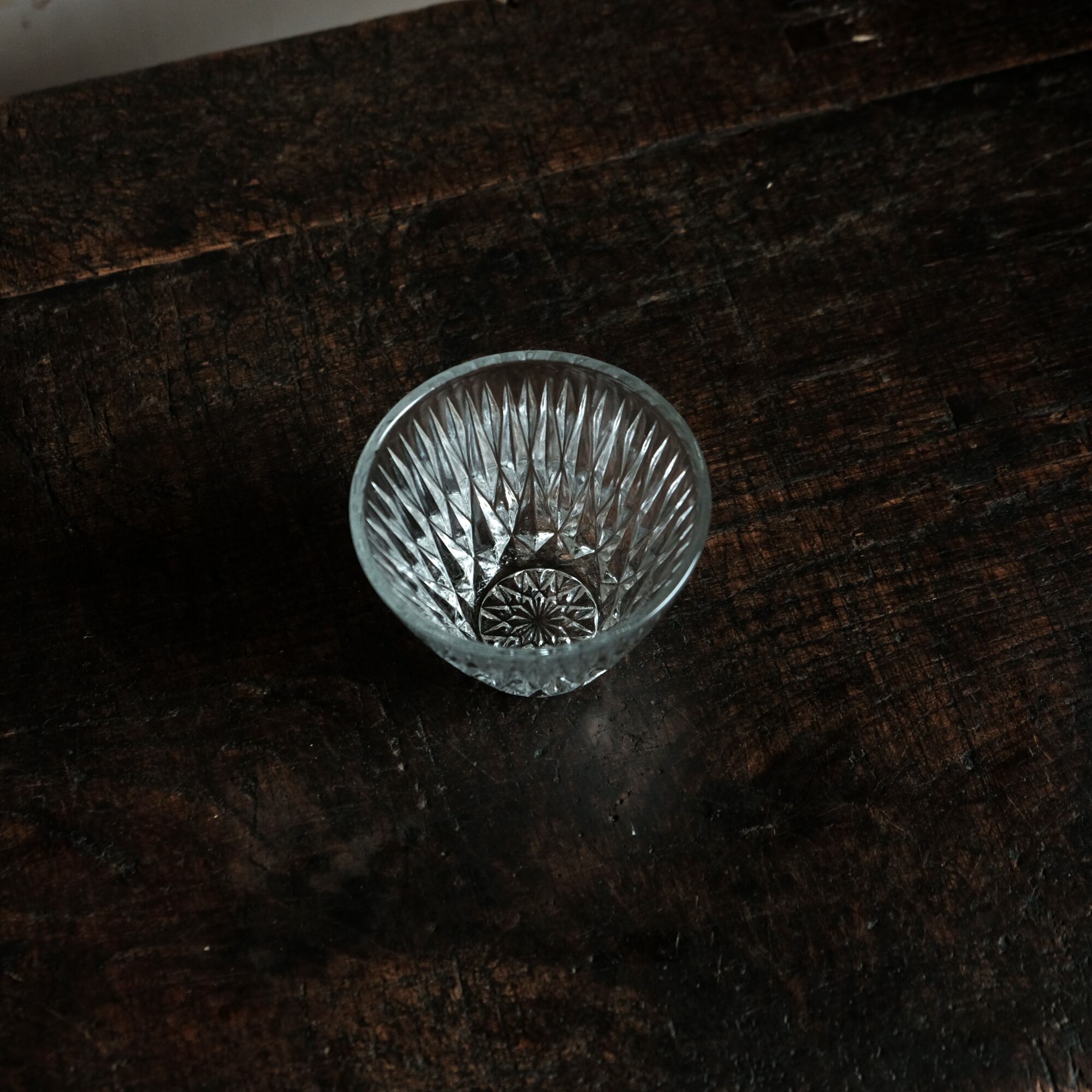 ギザギザで素敵◆しっかりとした厚み。クリスタル・プレスガラス猪口 小鉢 ニュートロ 昭和中〜後期