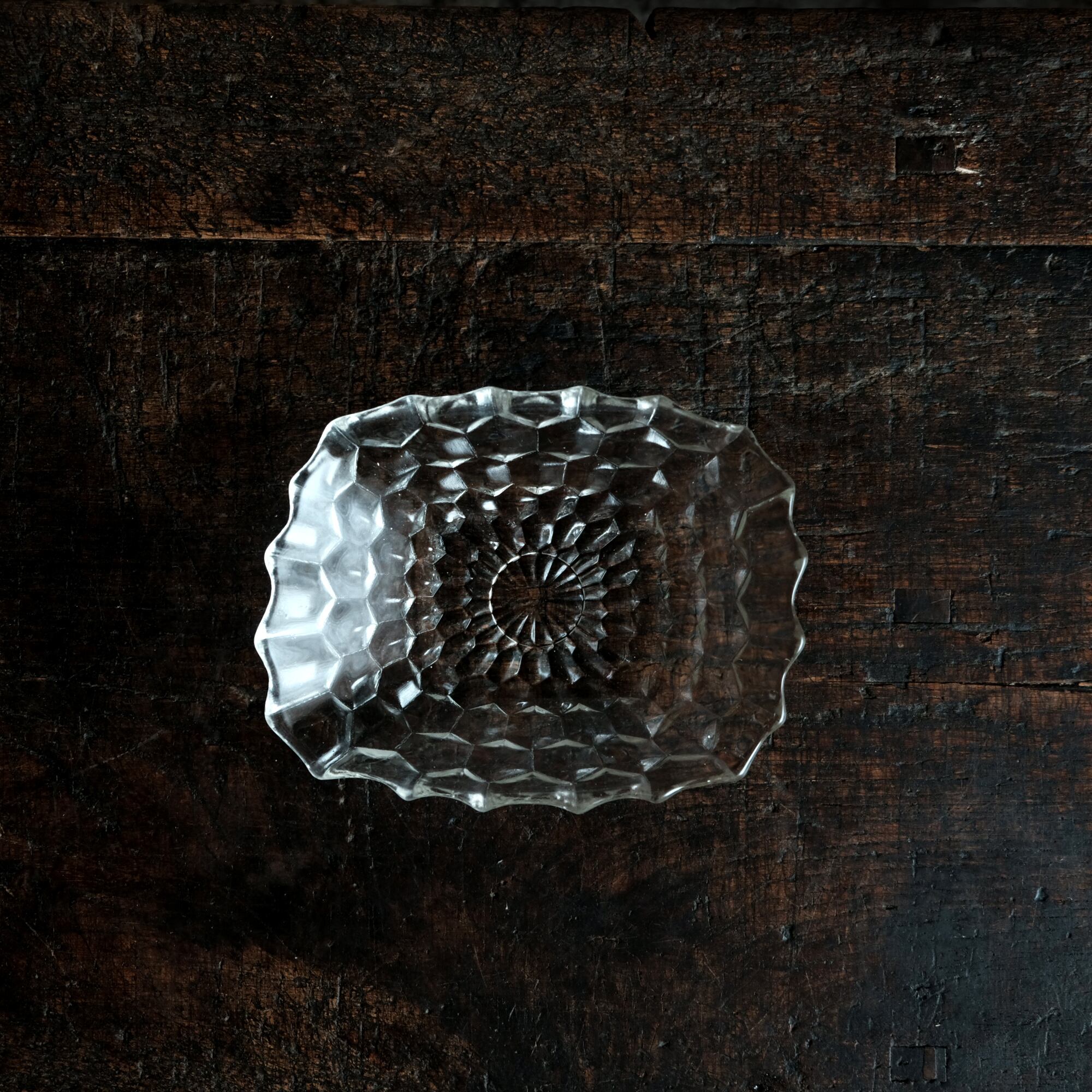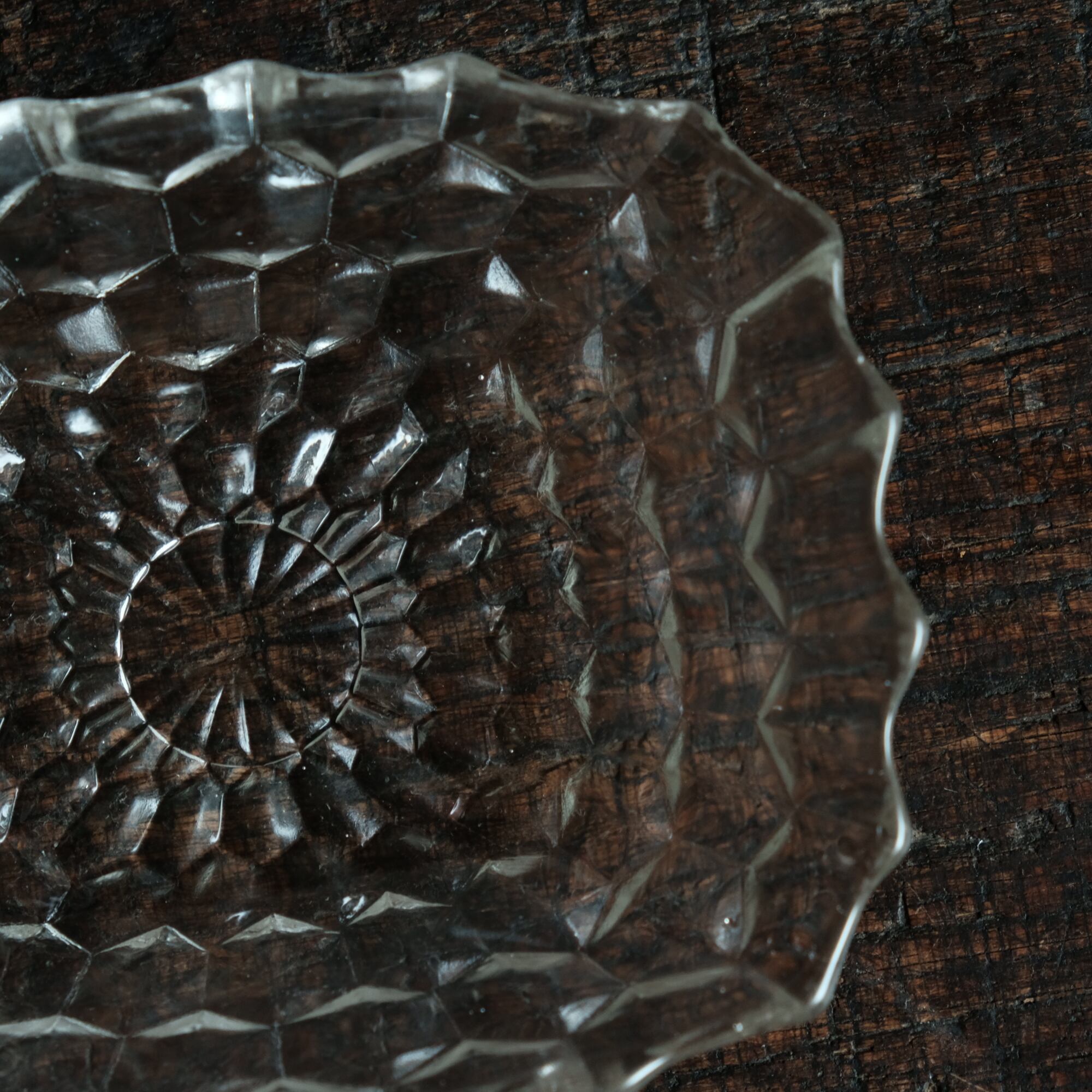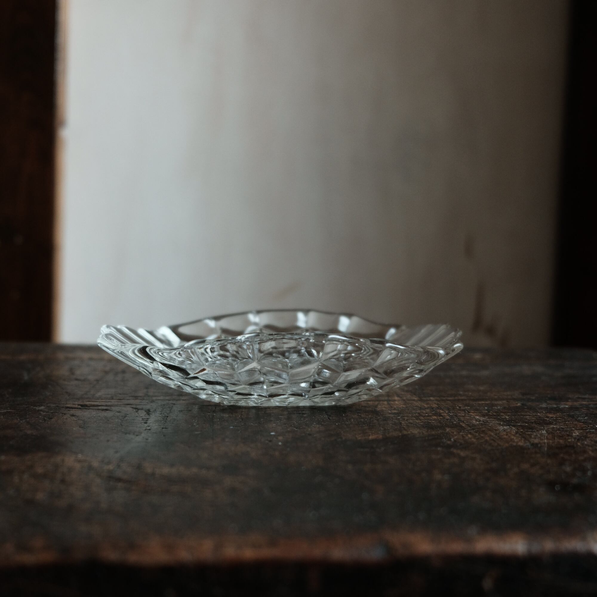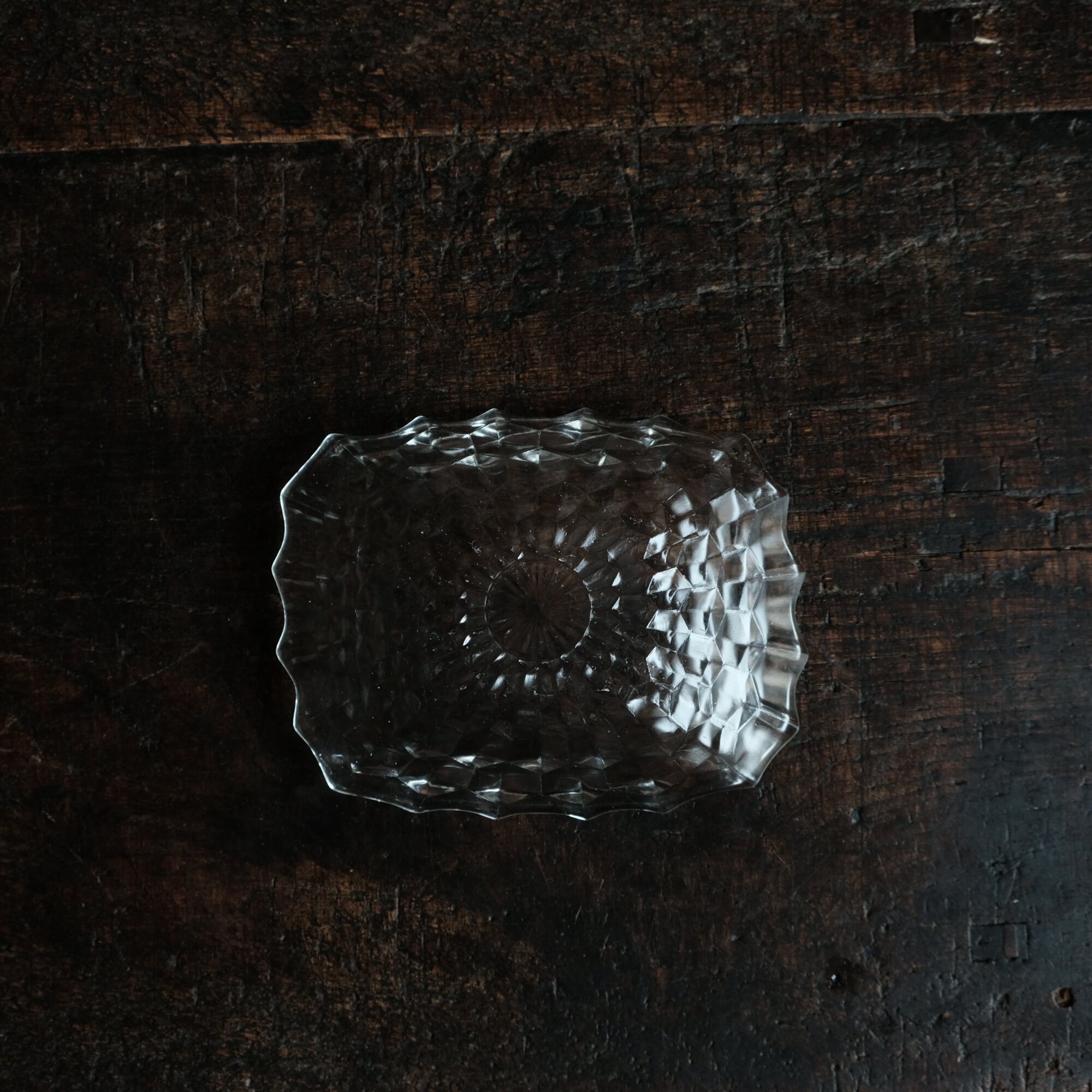 歪な形状◆ギザギザで素敵 プレスガラス変形皿 ビンテージ 古民家 古道具 暮らしに。昭和中〜後期