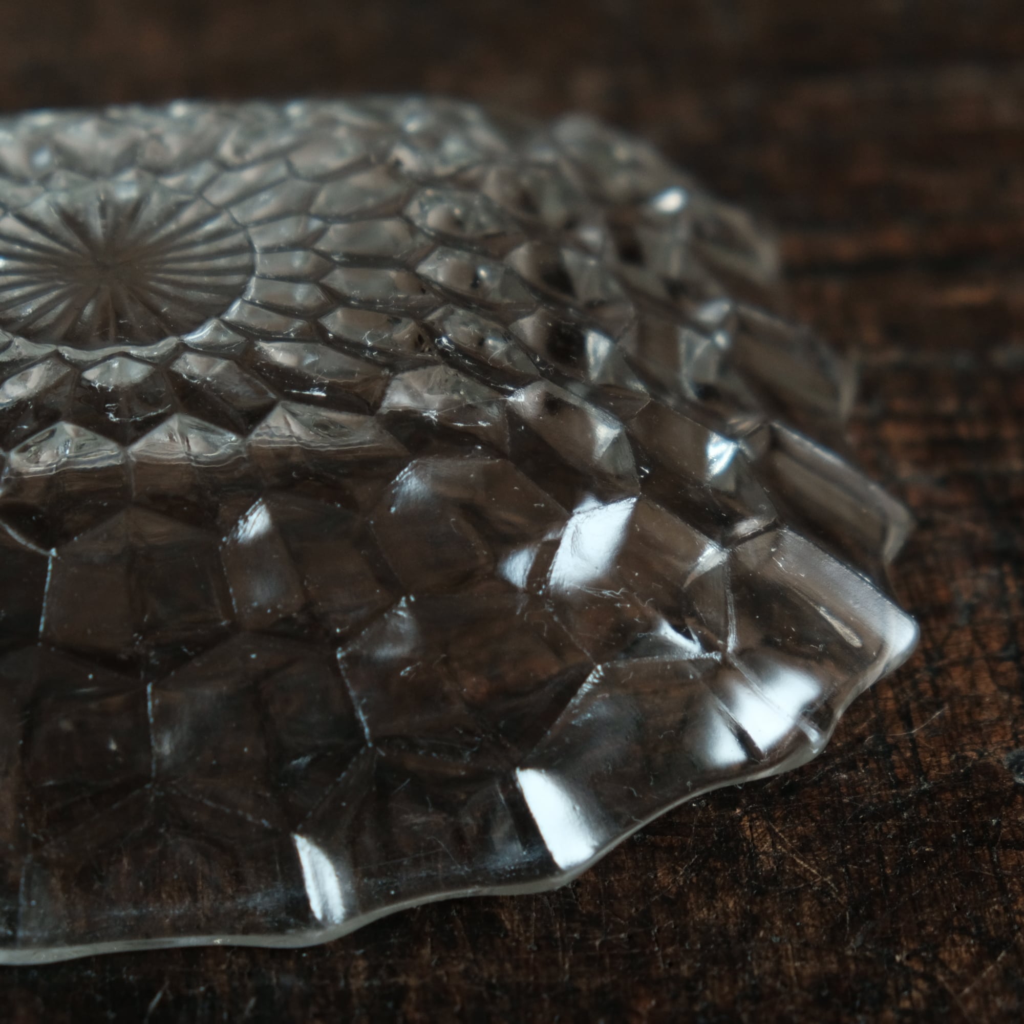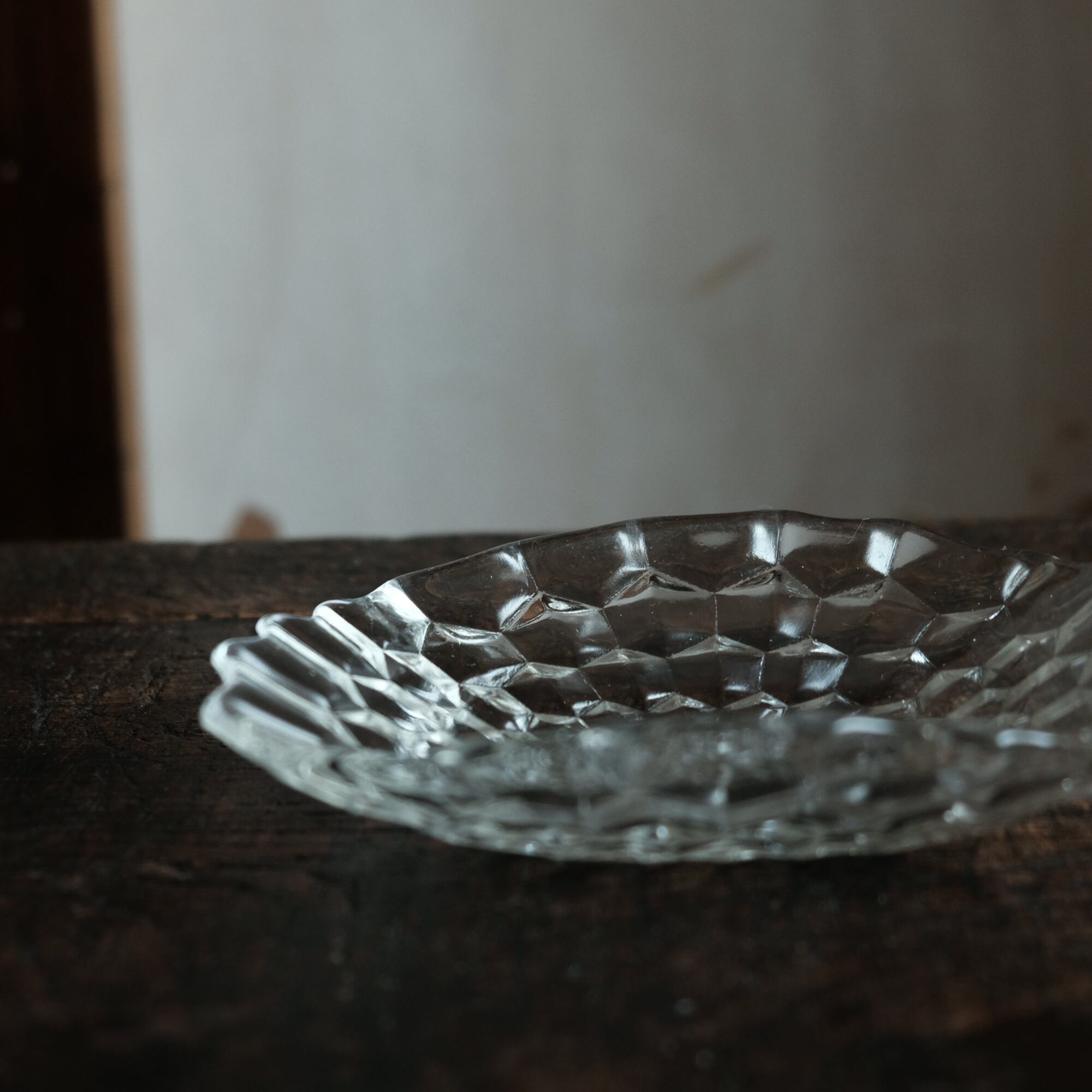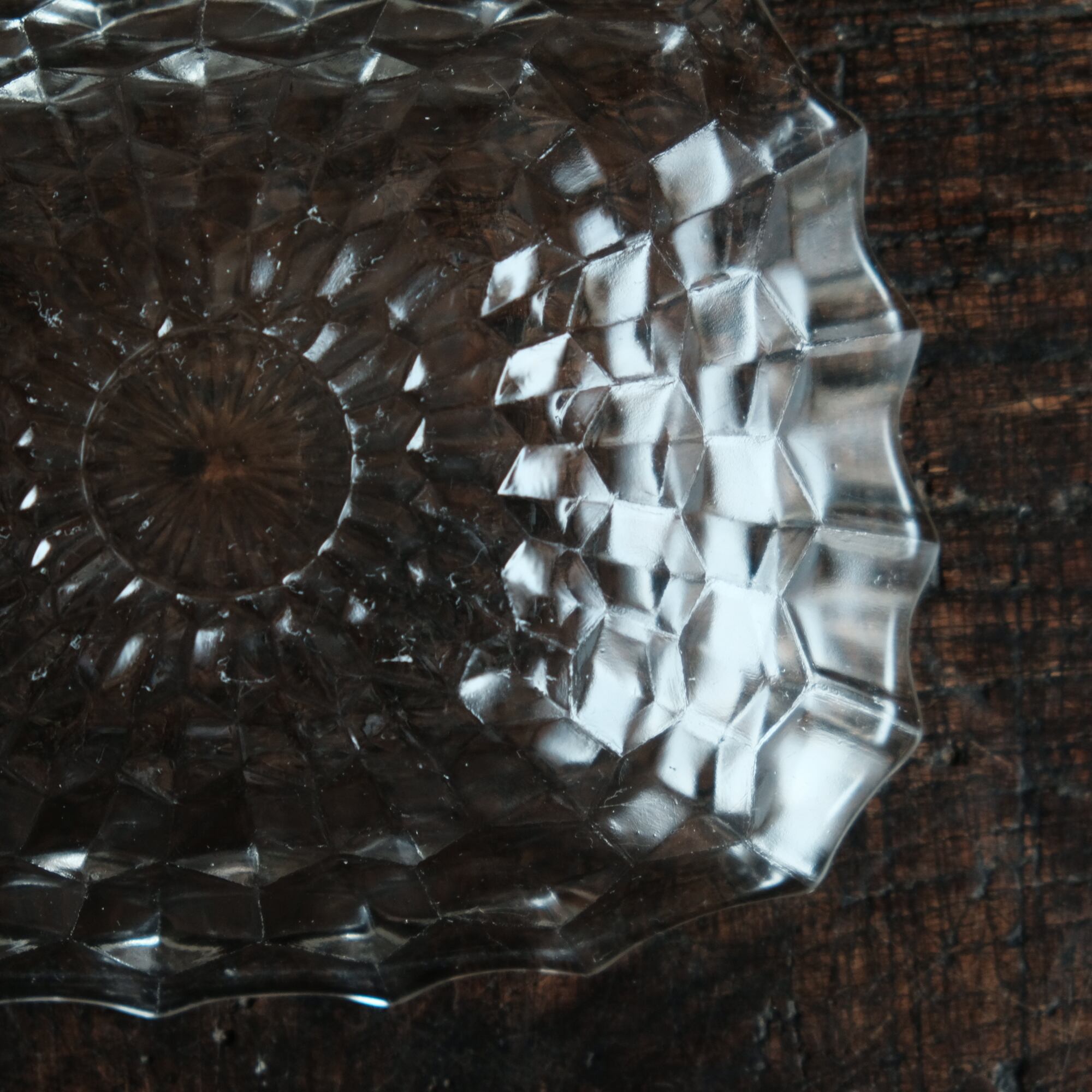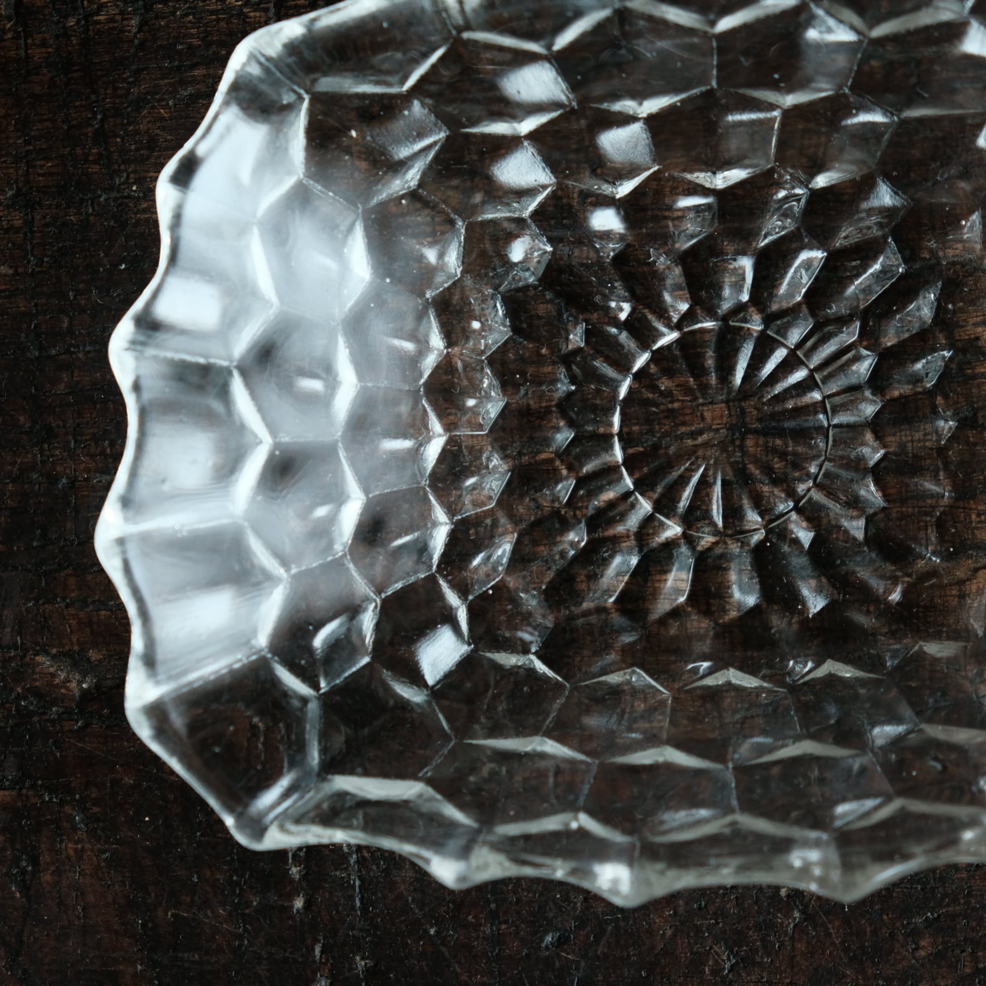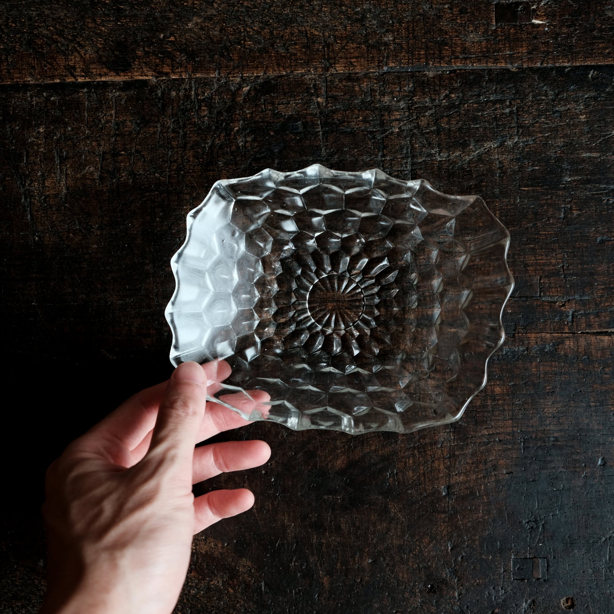 歪な形状◆ギザギザで素敵 プレスガラス変形皿 ビンテージ 古民家 古道具 暮らしに。昭和中〜後期
