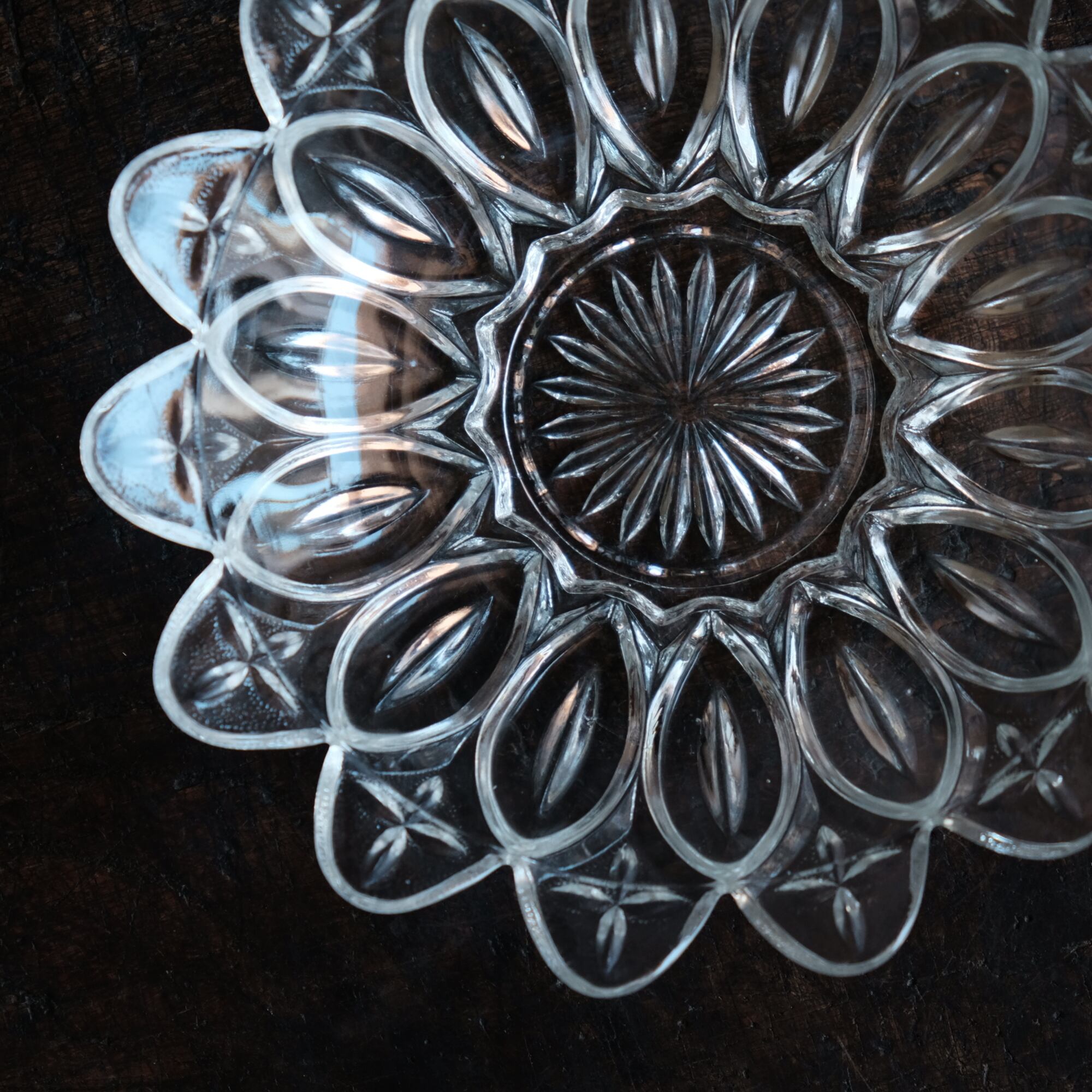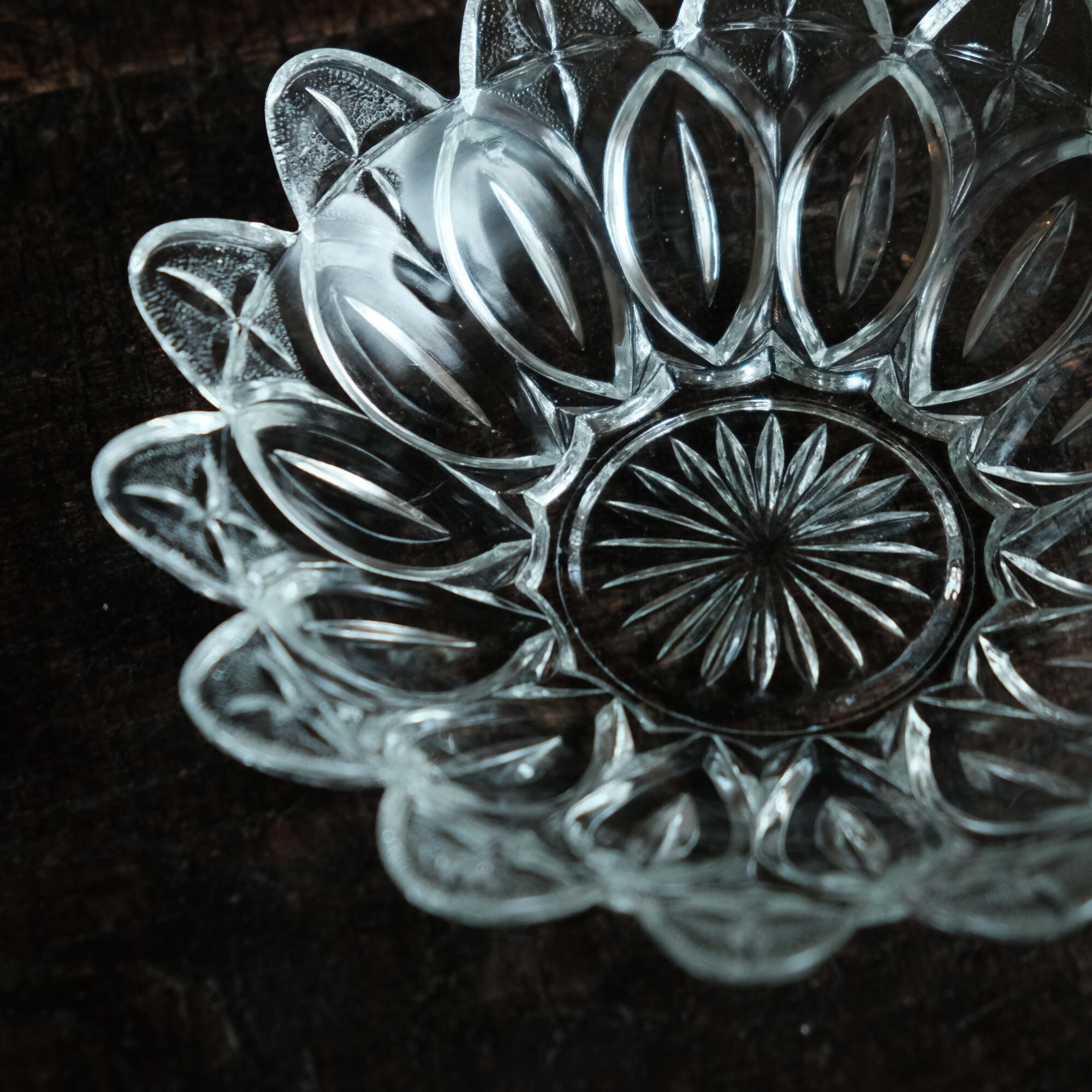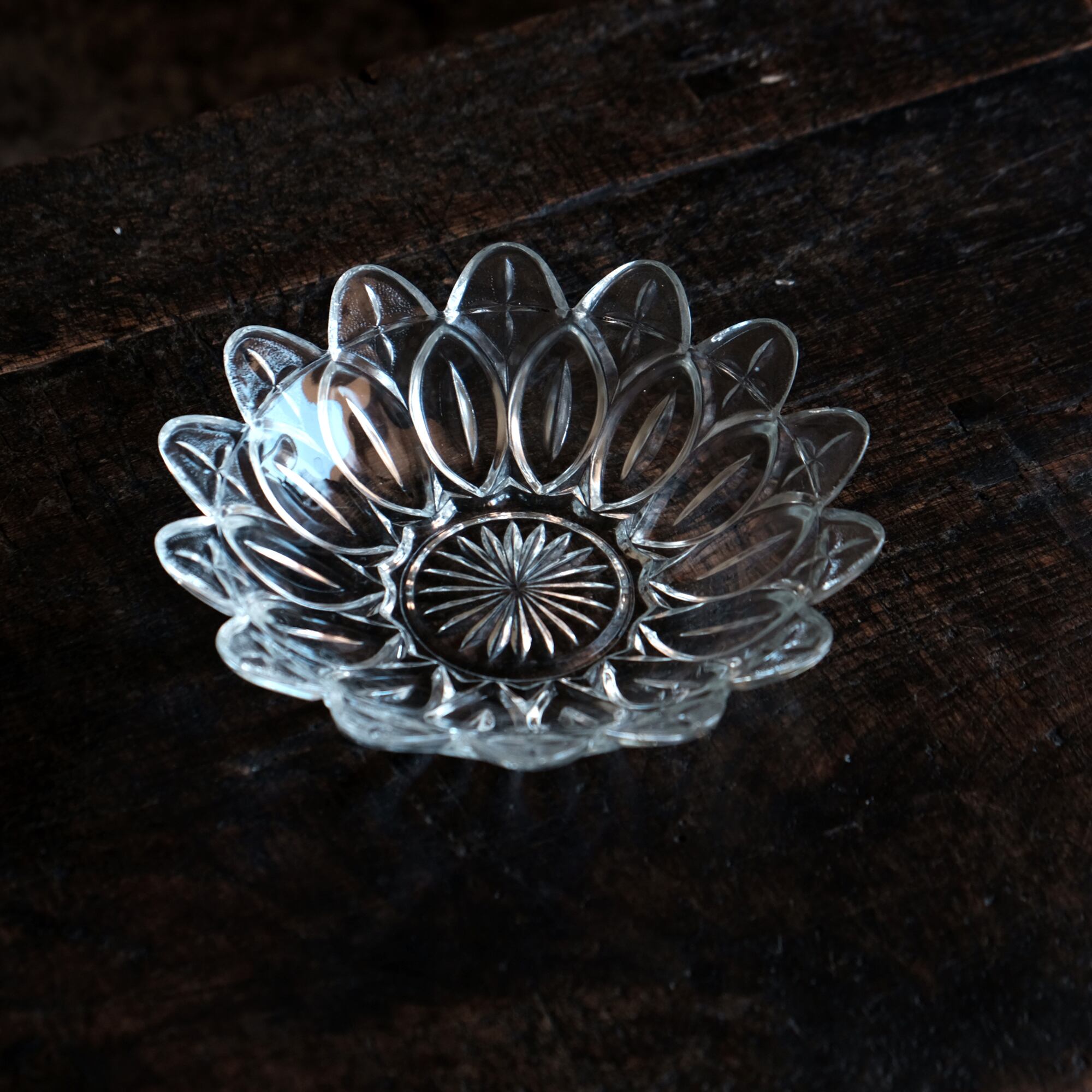 花の形状◆昭和中〜後期 プレス硝子変形中皿 古民家 古道具 昭和レトロ 丁寧な暮らしに。