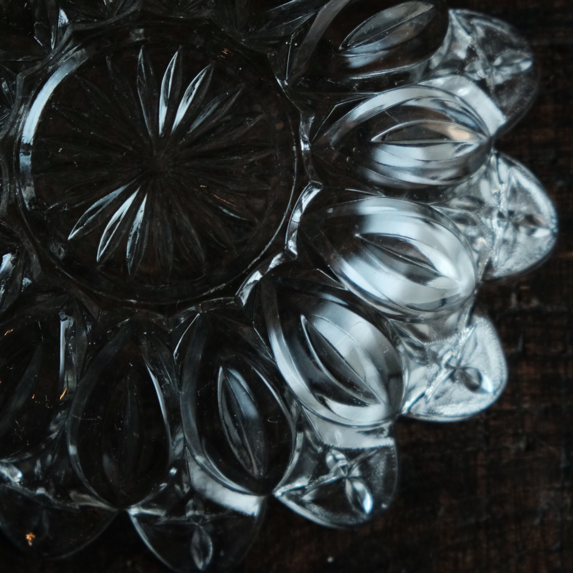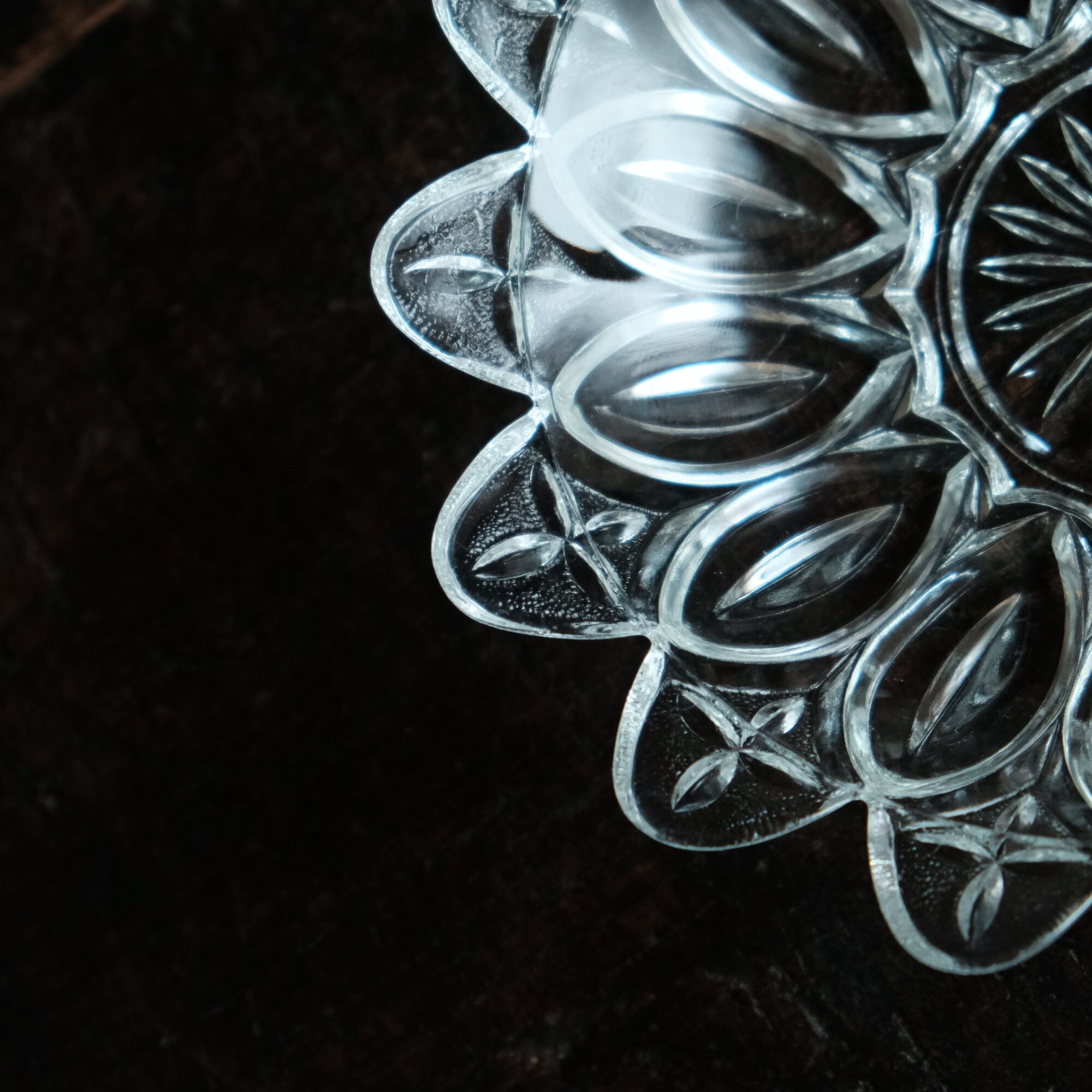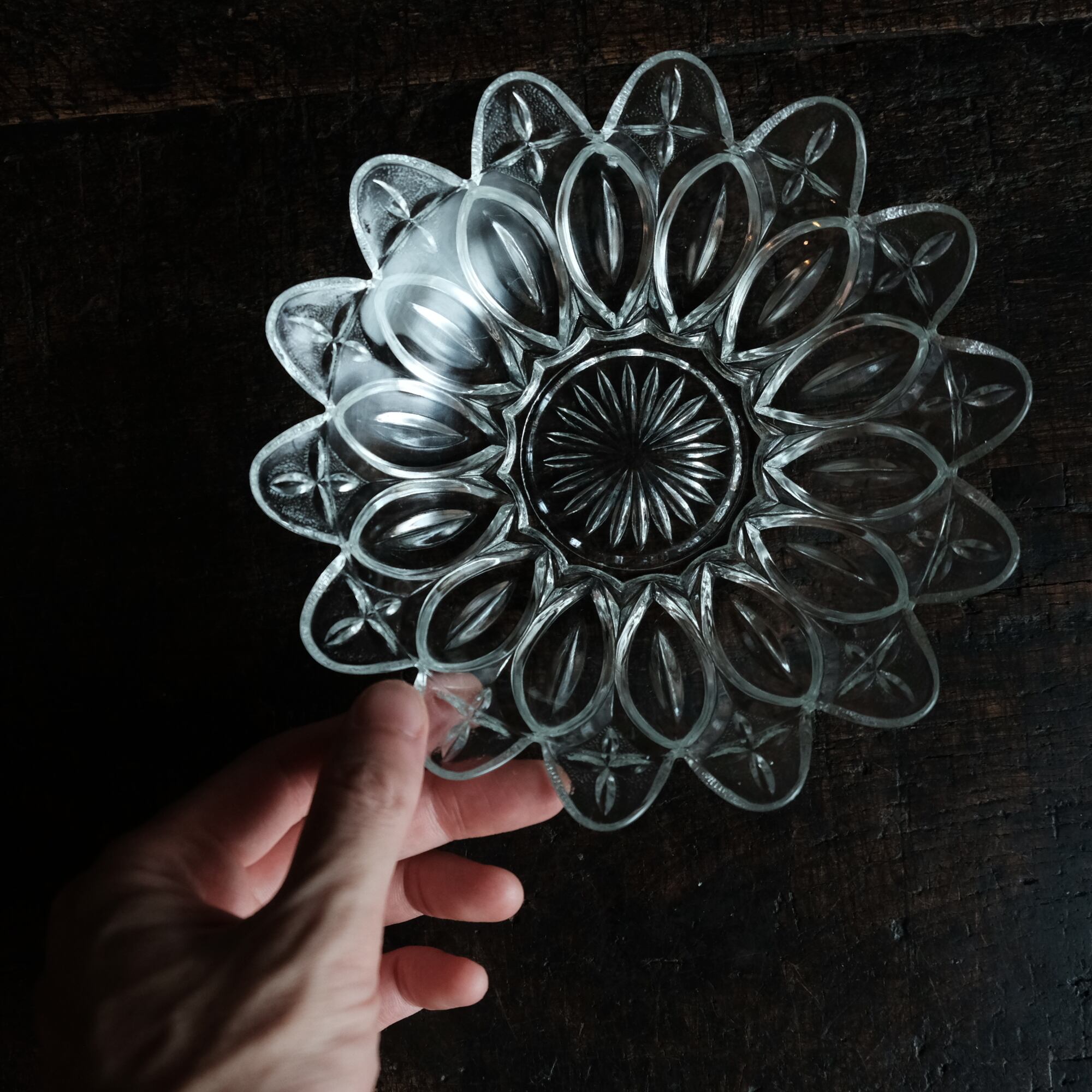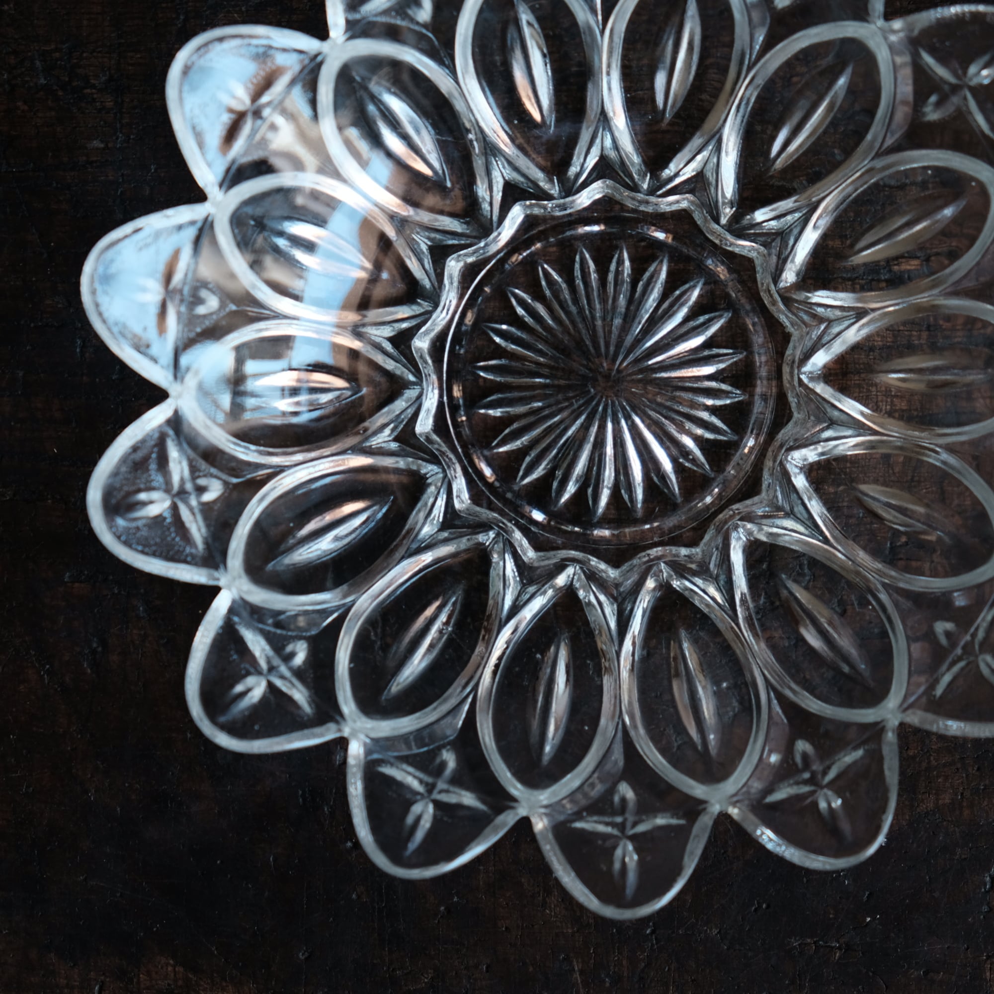 花の形状◆昭和中〜後期 プレス硝子変形中皿 古民家 古道具 昭和レトロ 丁寧な暮らしに。