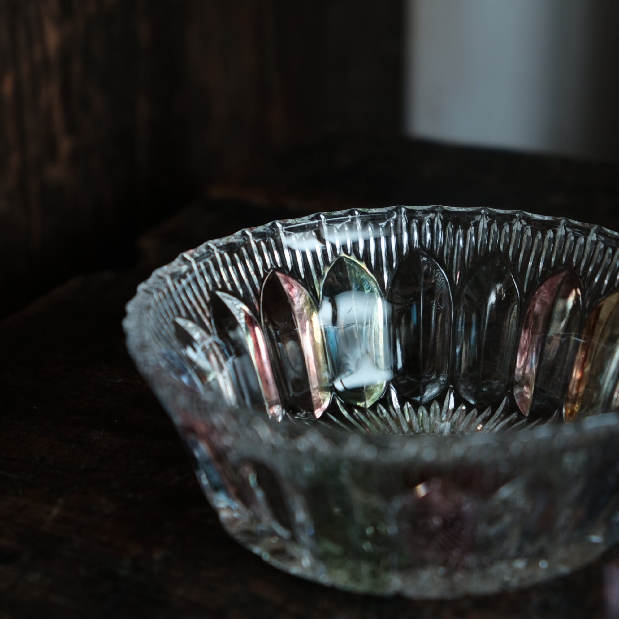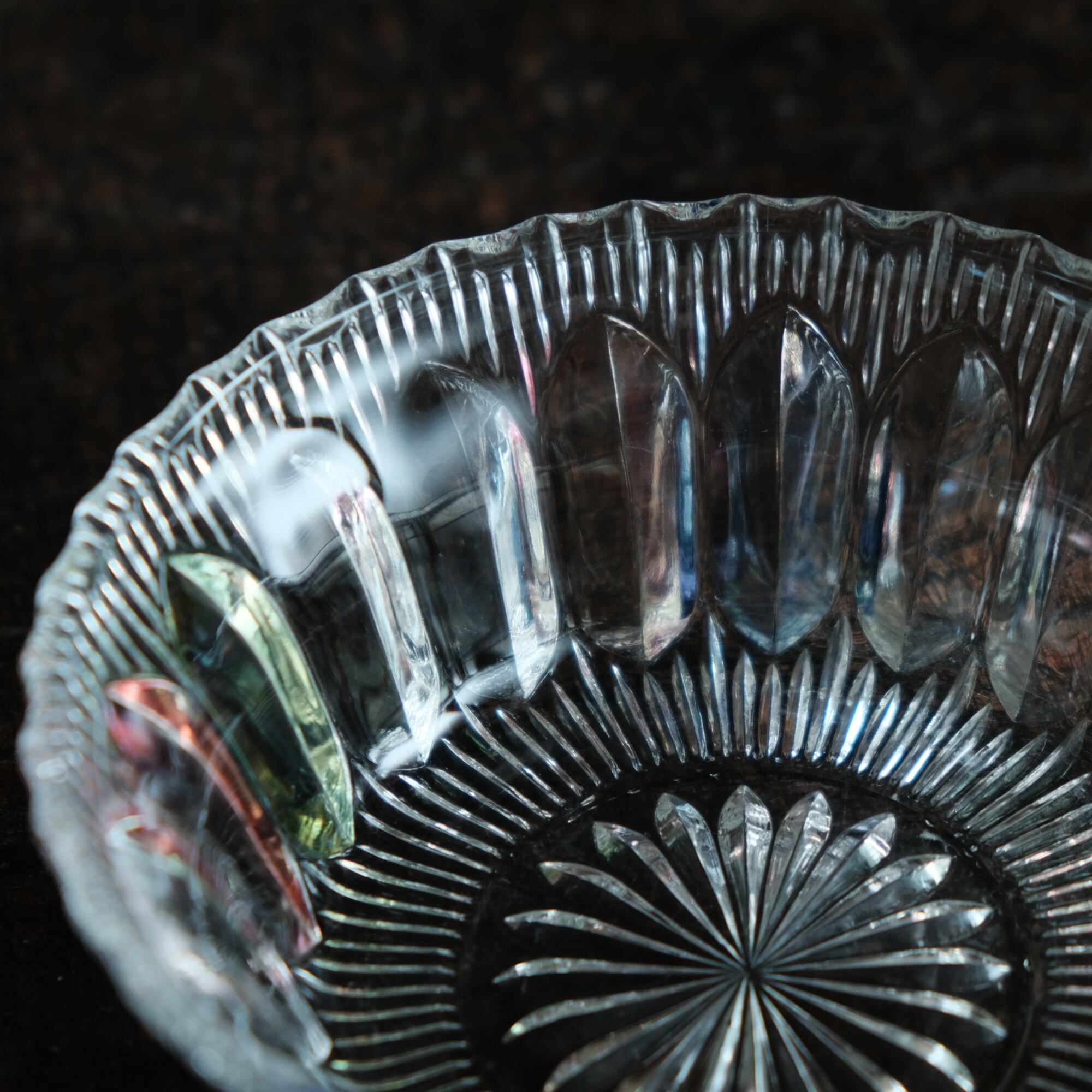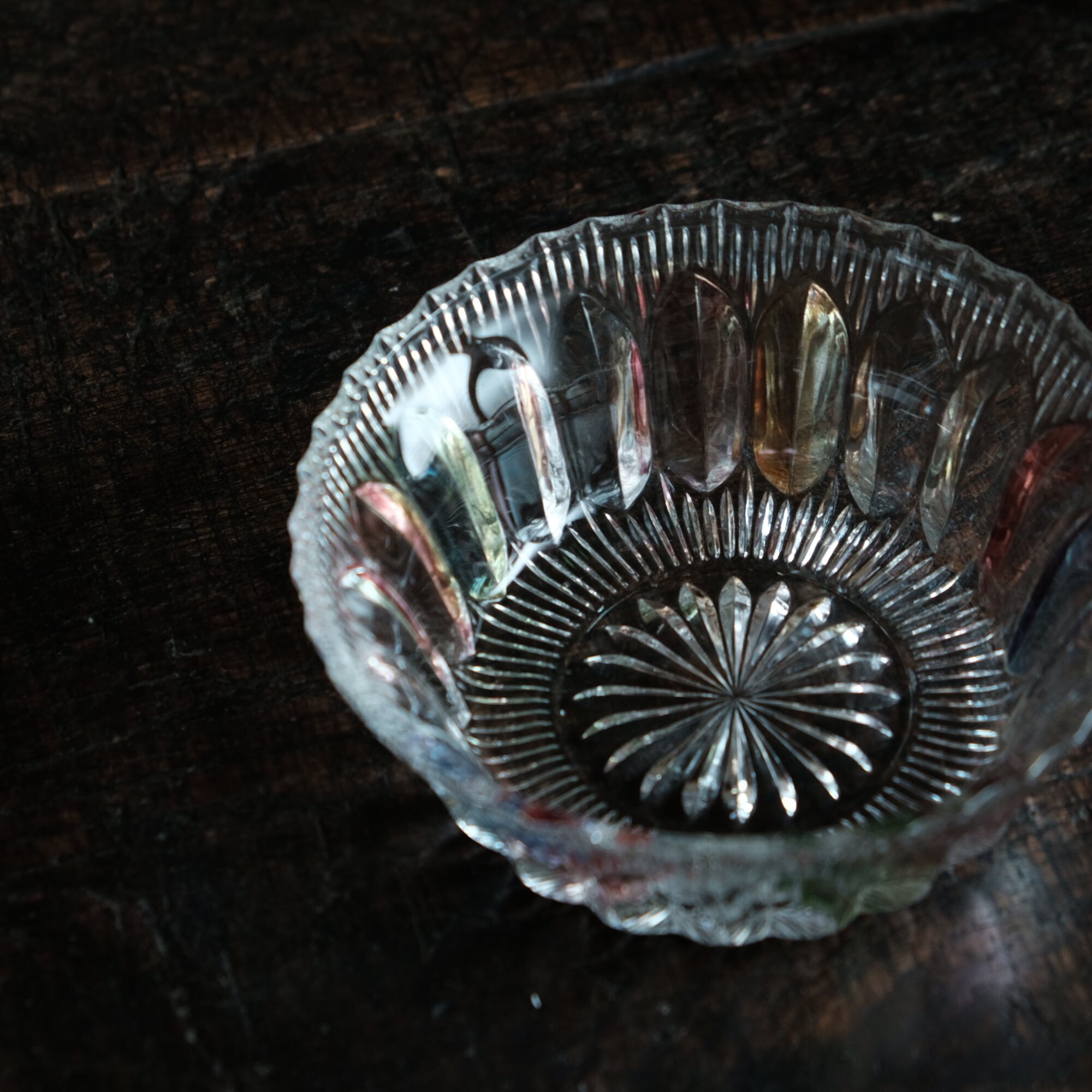 素敵な形状◆クリアにカラフルな色味。昭和後期 クリスタルガラス小鉢 暮らしに