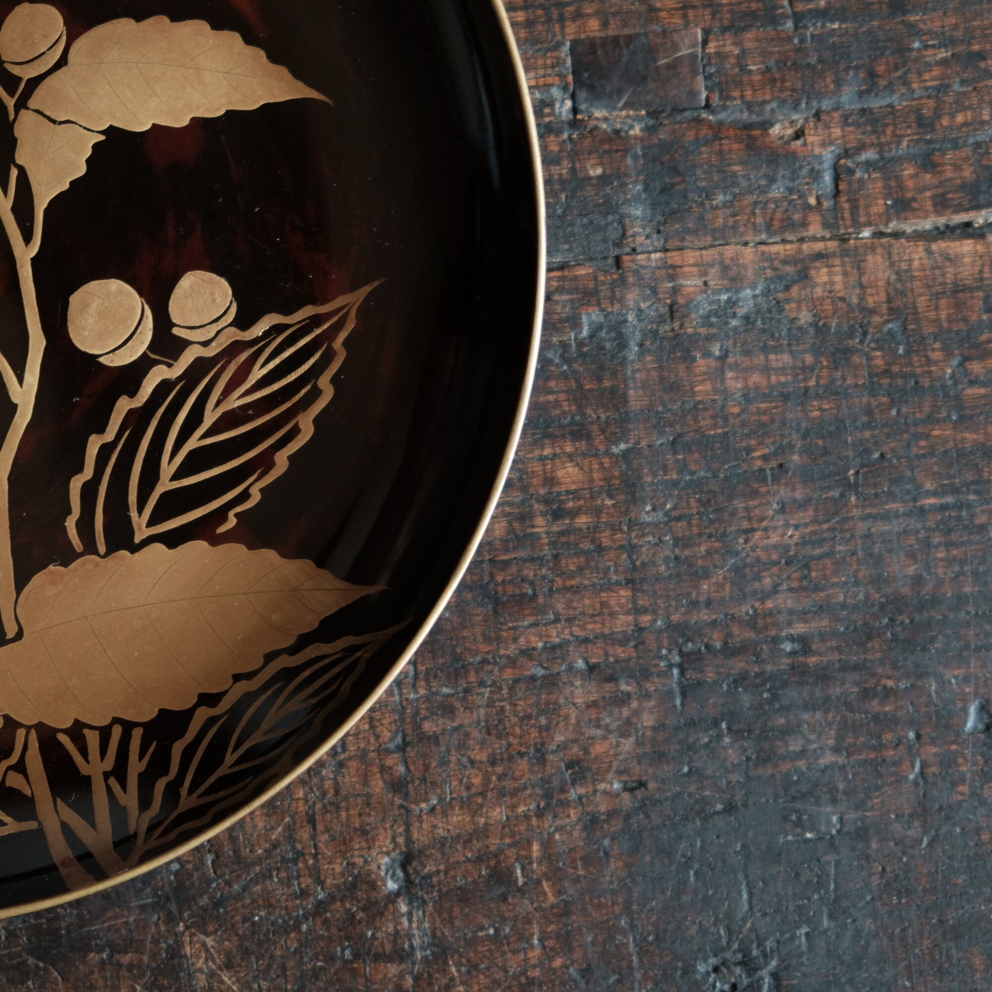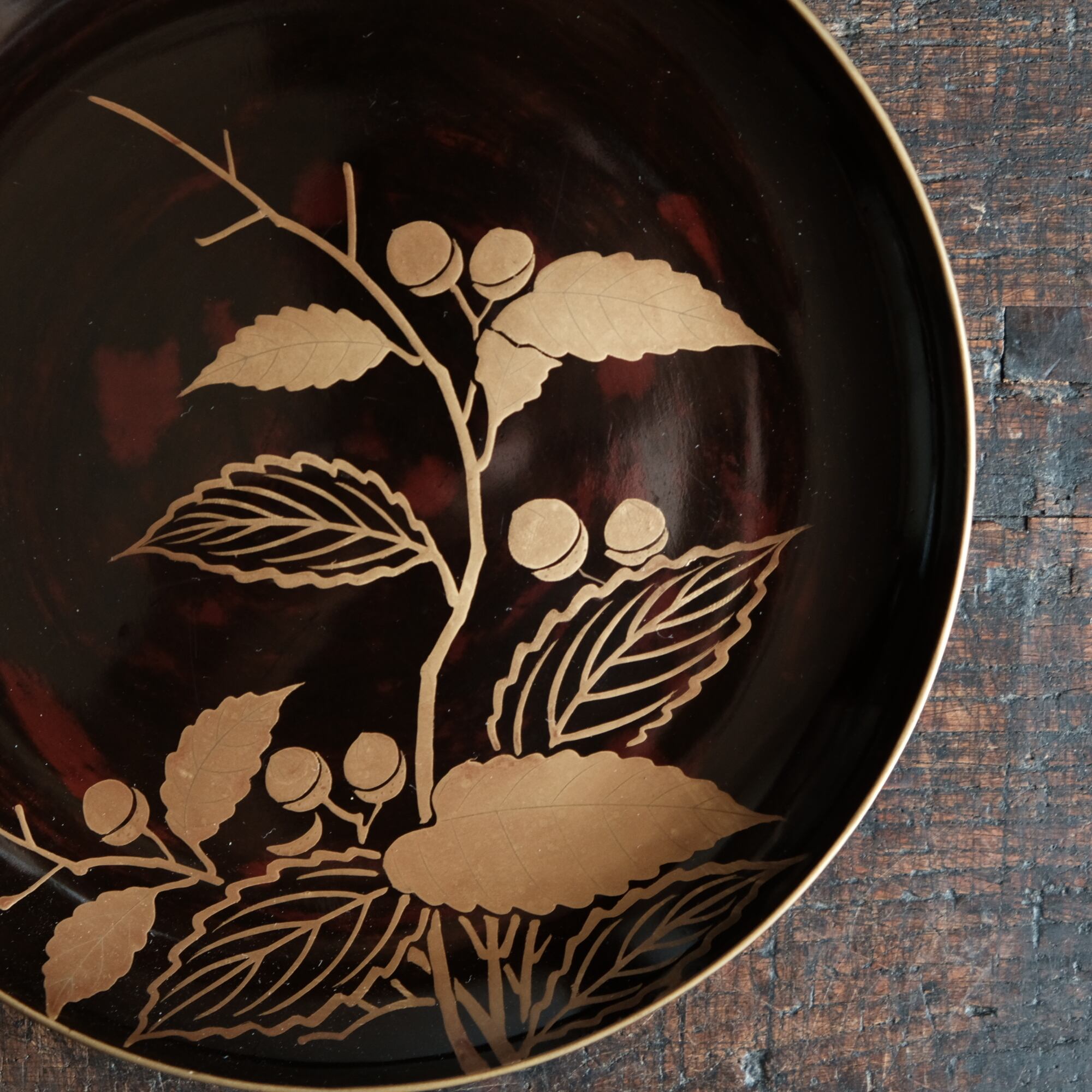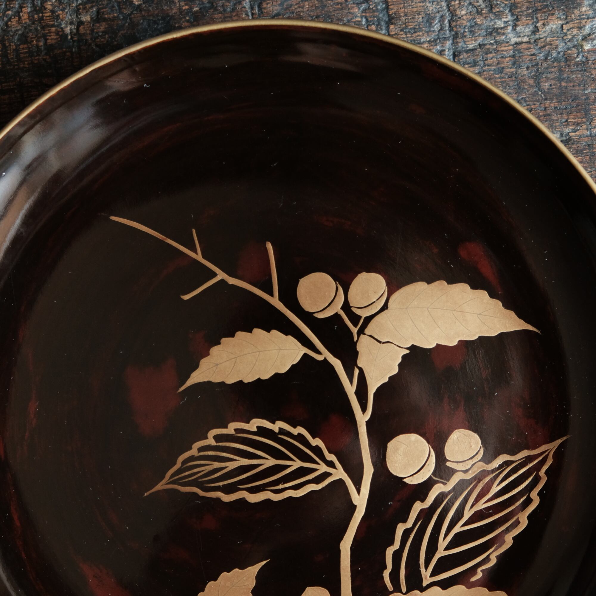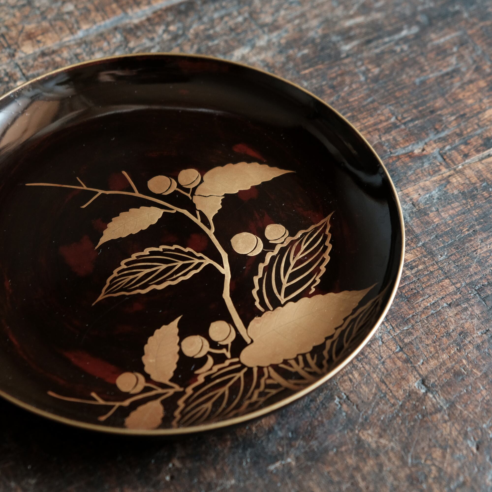素敵な色味◆枝木と実 漆芸蒔絵中皿 漆器 骨董/antiques 古民家 時代物 明治時代 b2