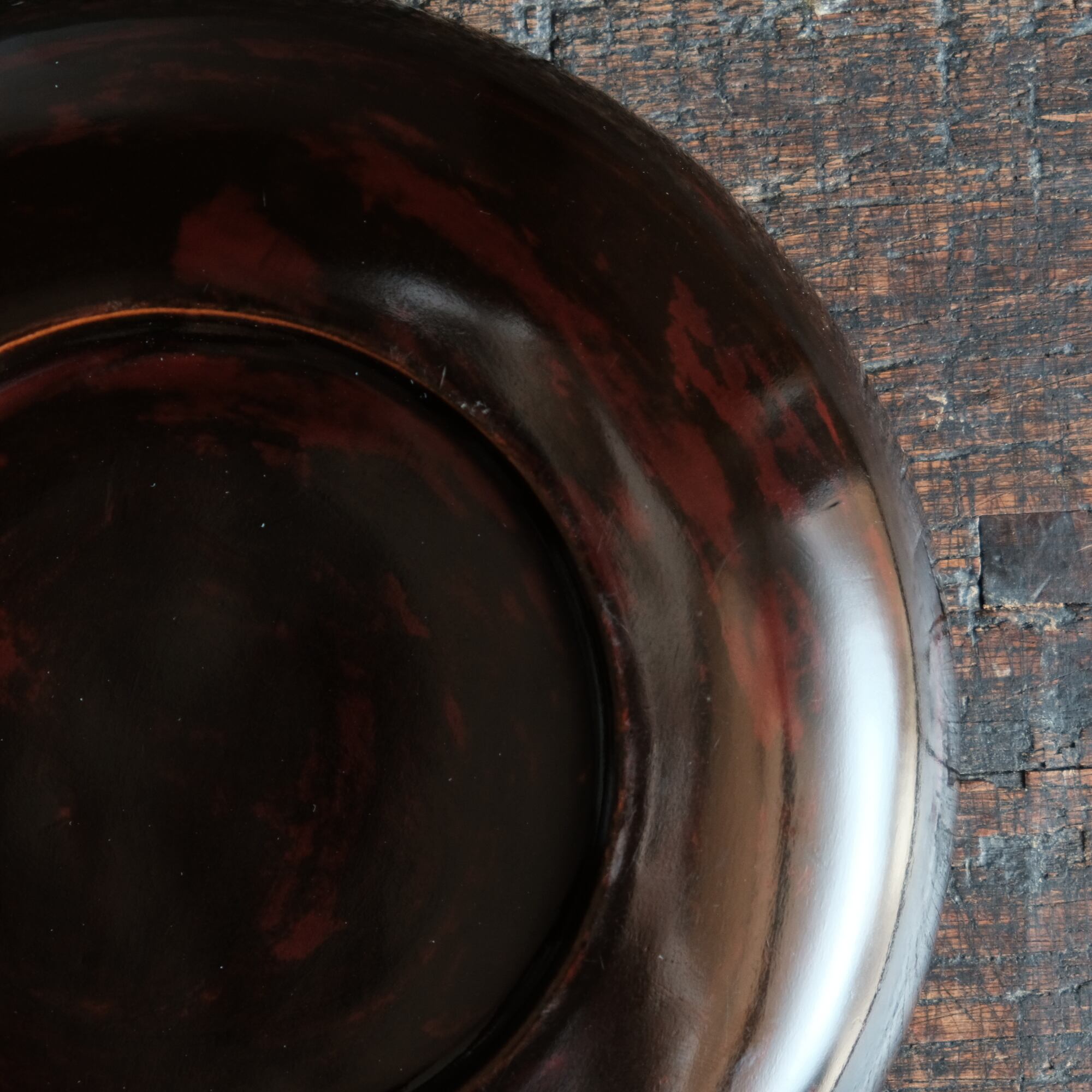 赤黒いムラのある色味が個性的で非常に個性のある古漆器になります。