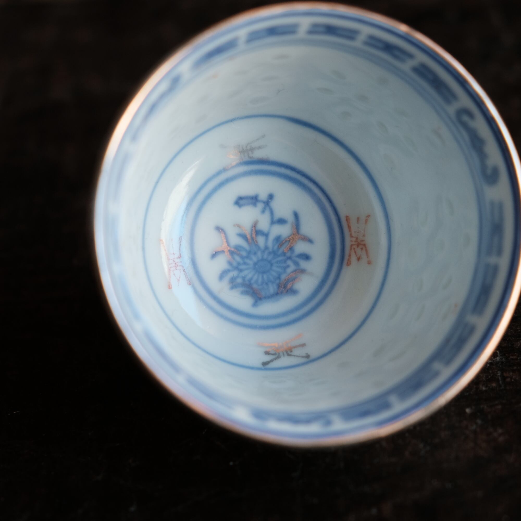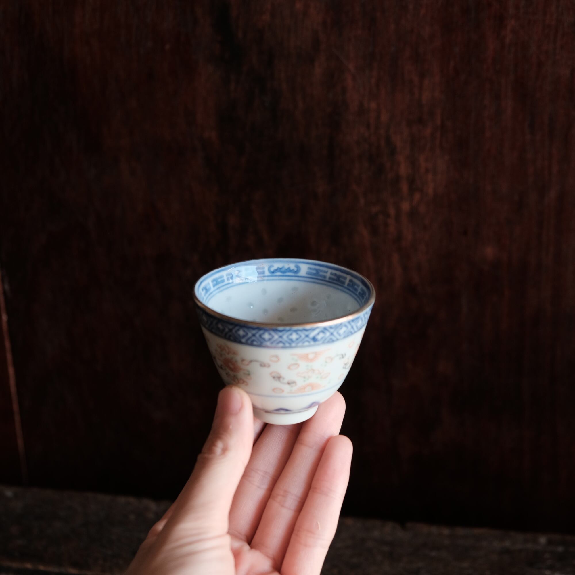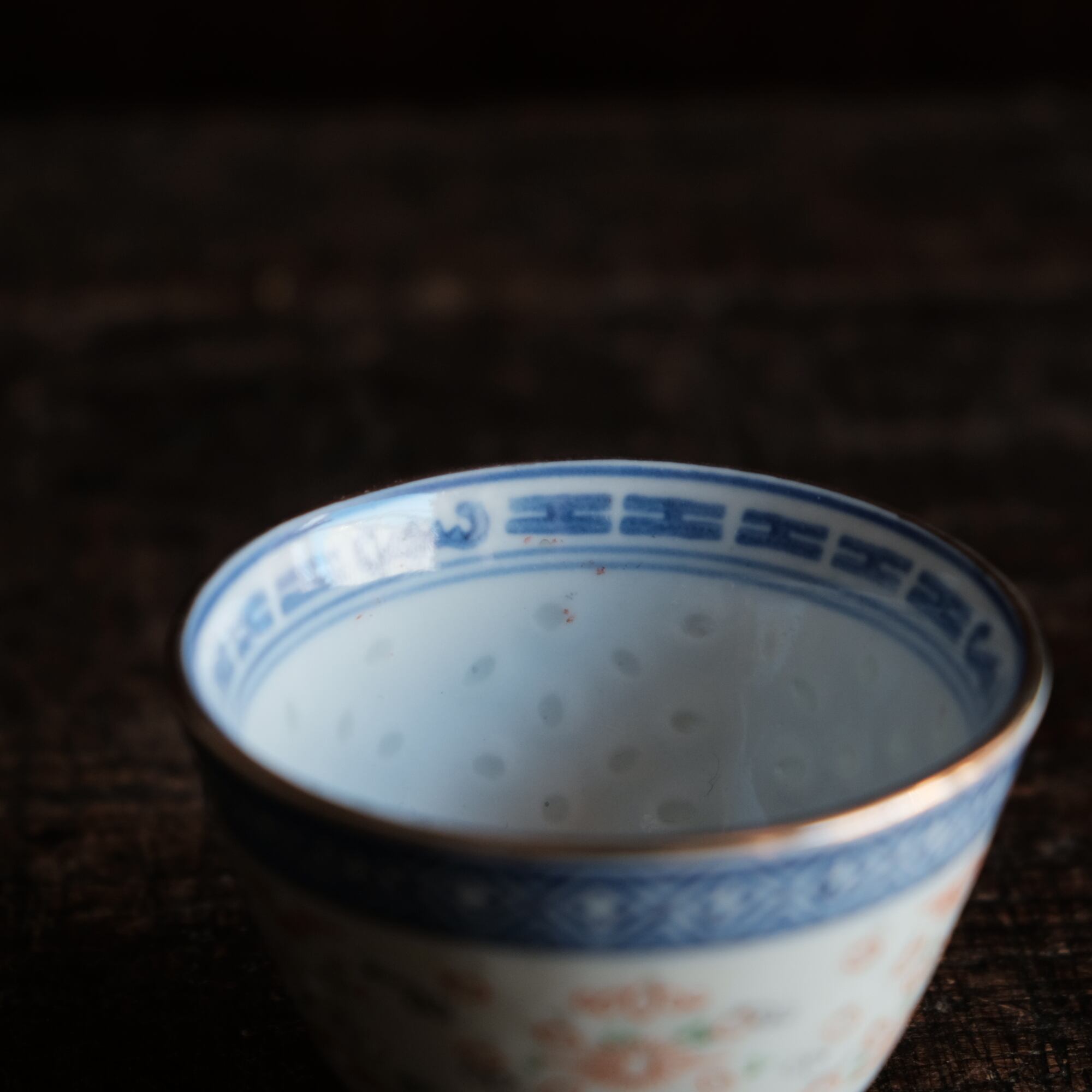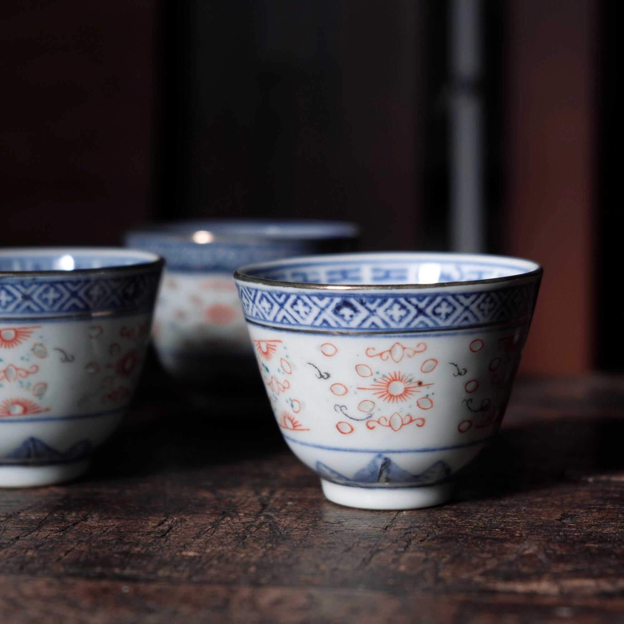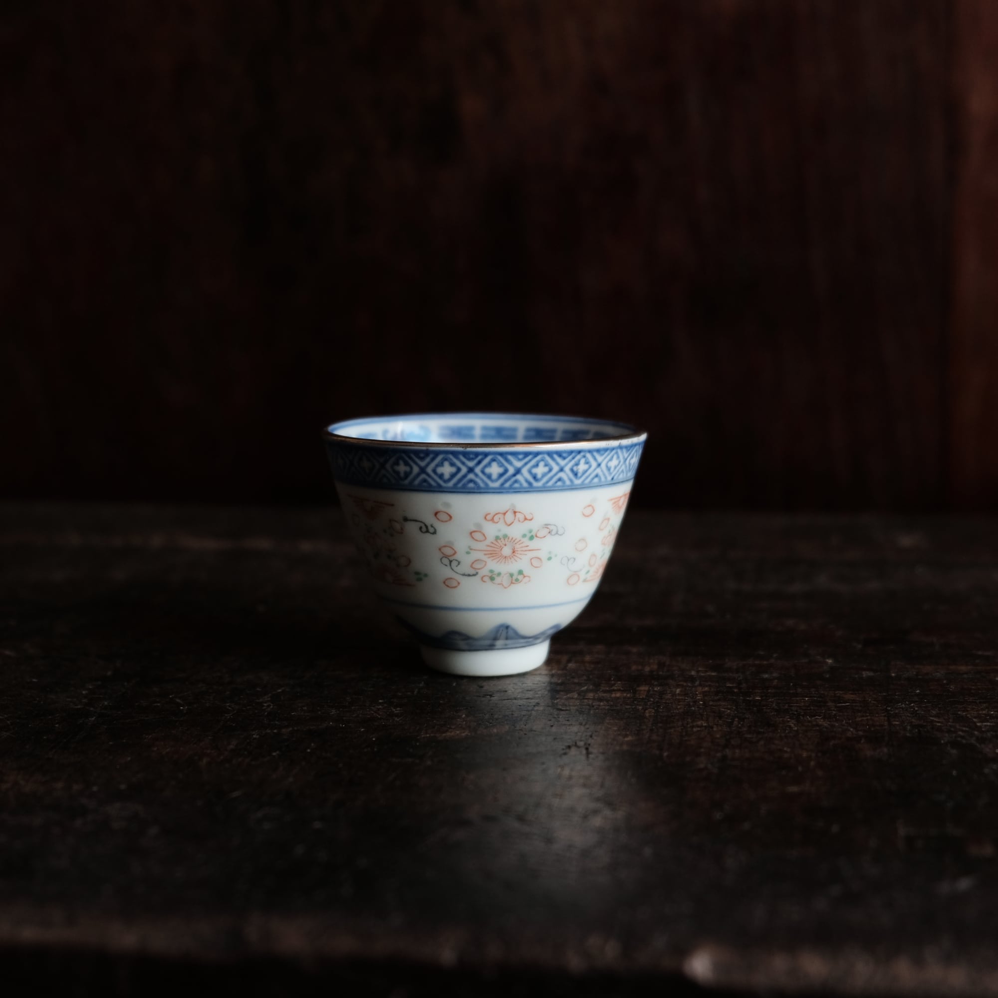 チャイナレトロで可愛い◆花と漢字。中国景徳鎮 赤絵金彩猪口 茶杯 蛍焼 湯呑み 茶器