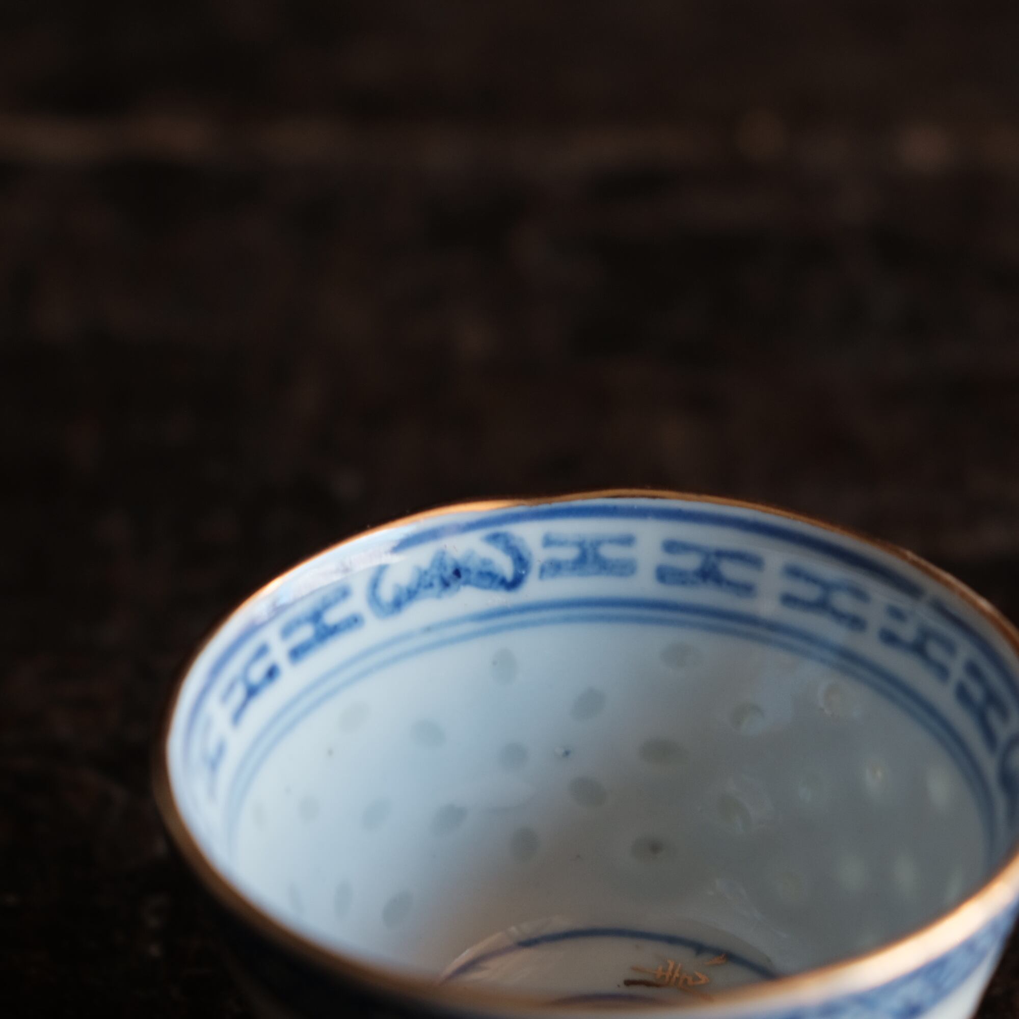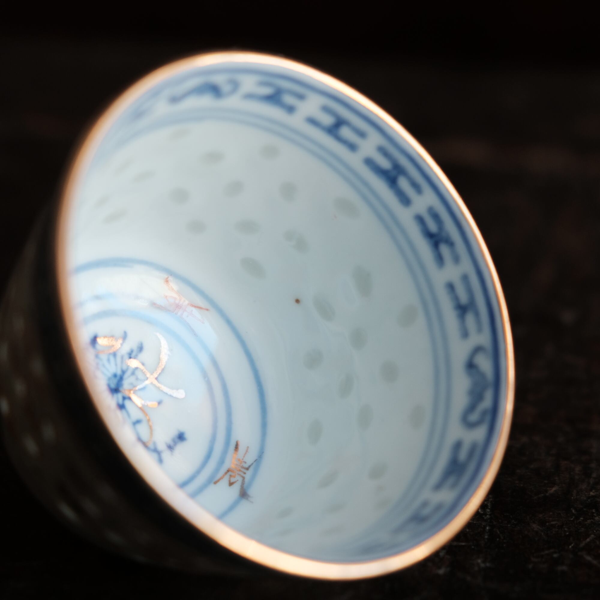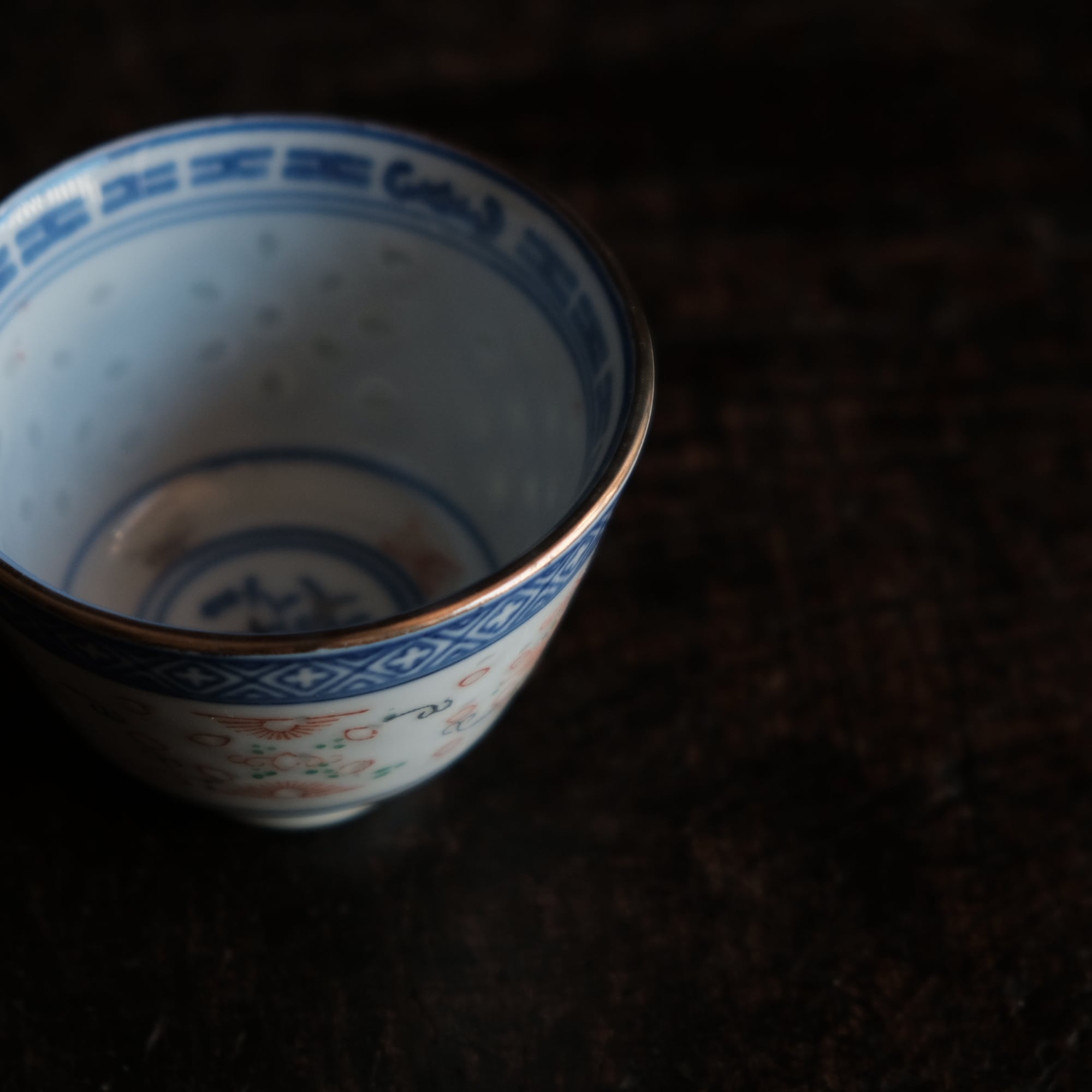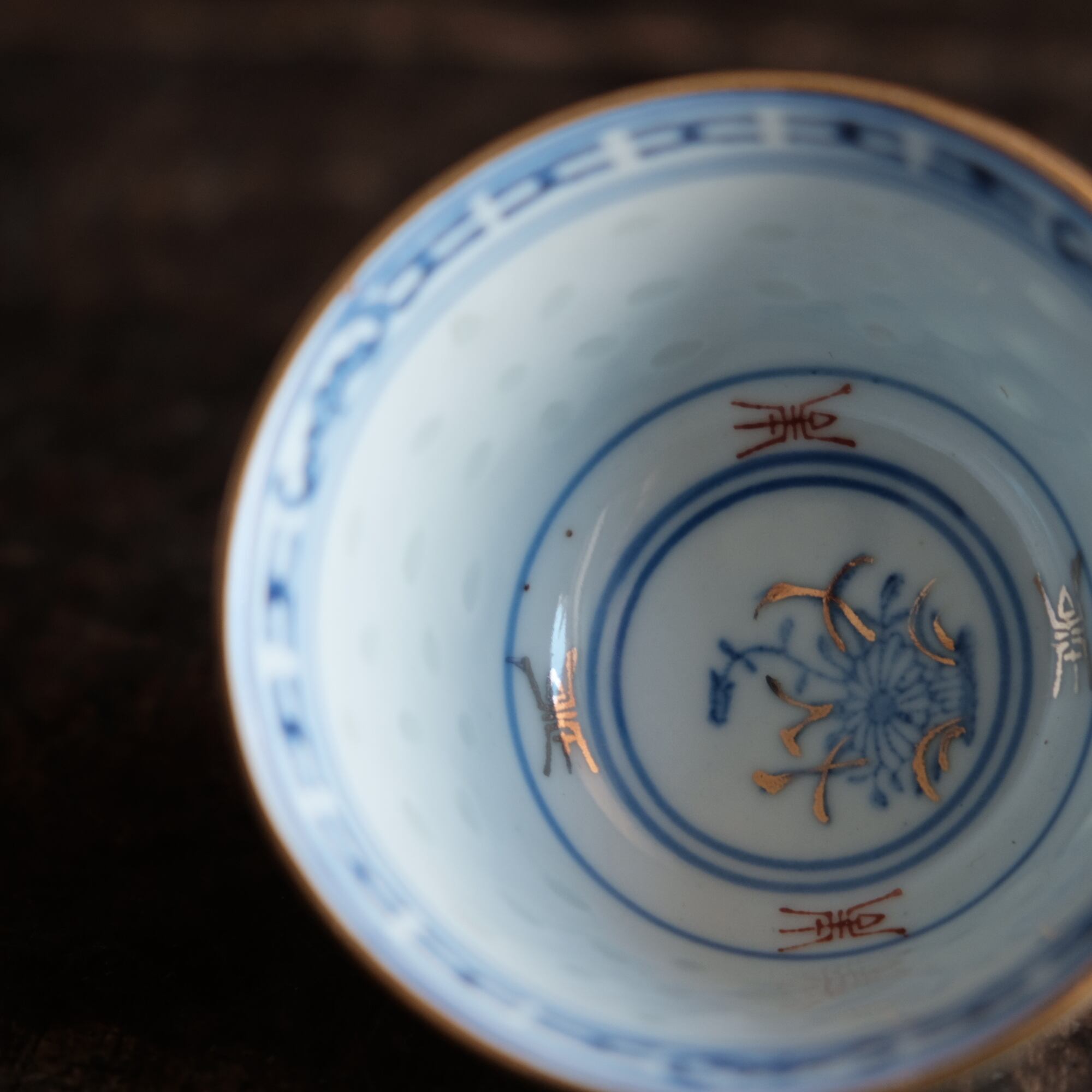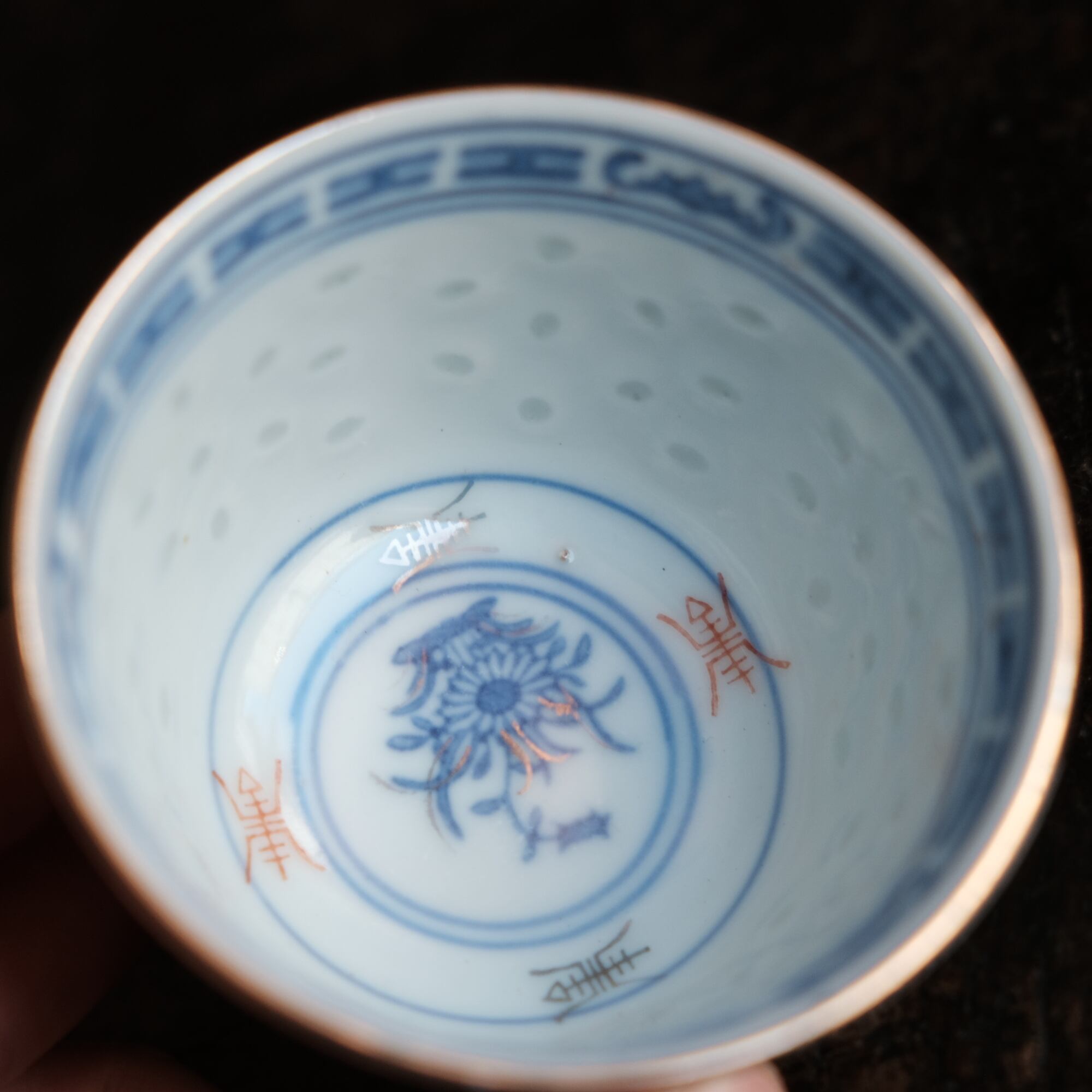 チャイナレトロで可愛い◆花と漢字。中国景徳鎮 赤絵金彩猪口 茶杯 蛍焼 湯呑み 茶器