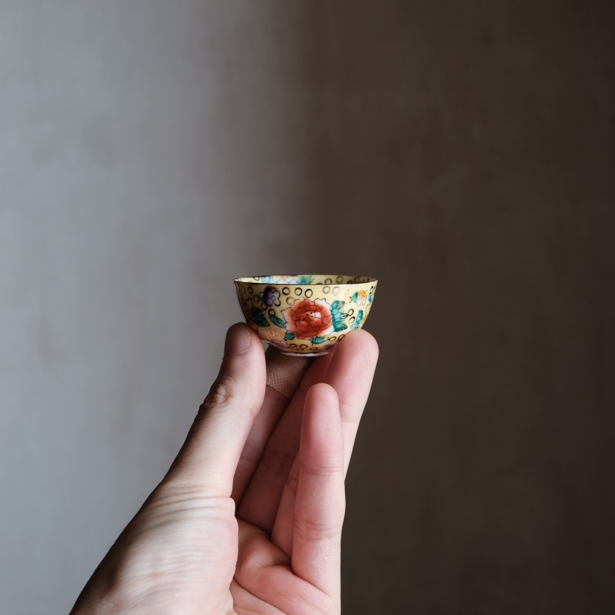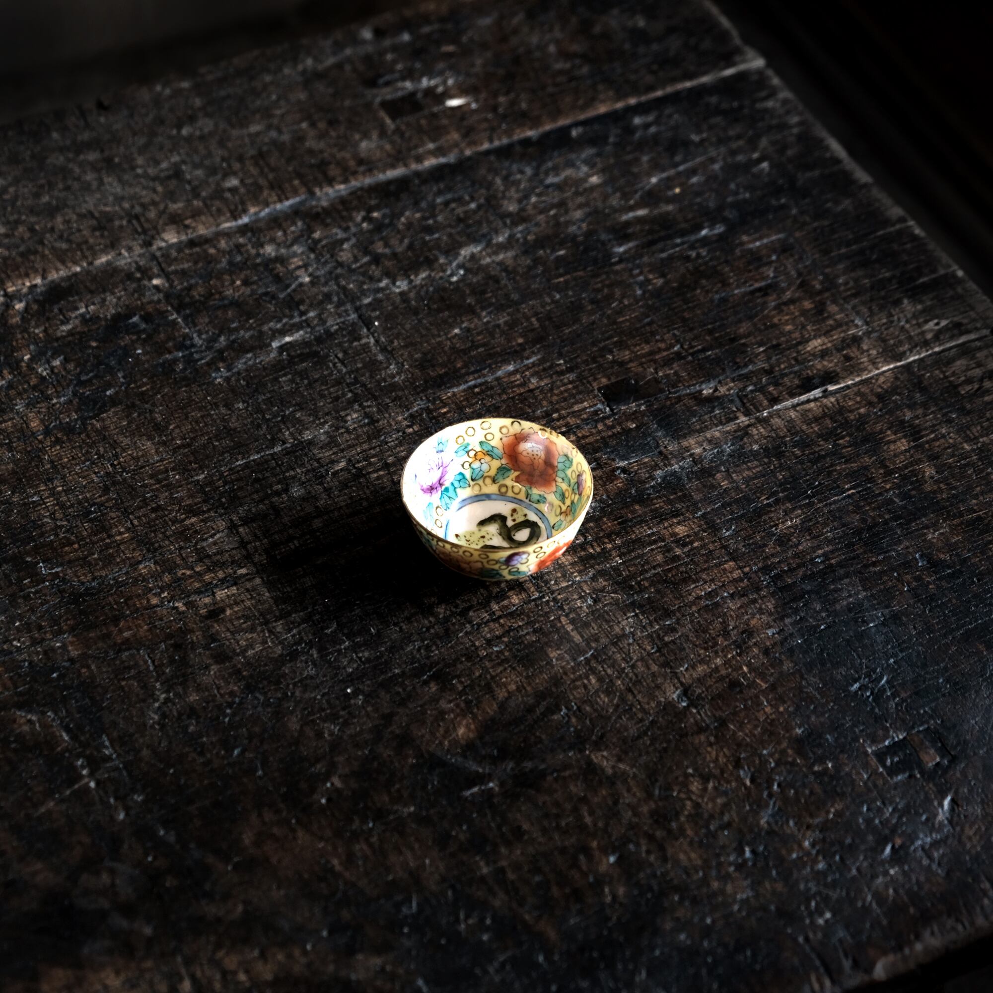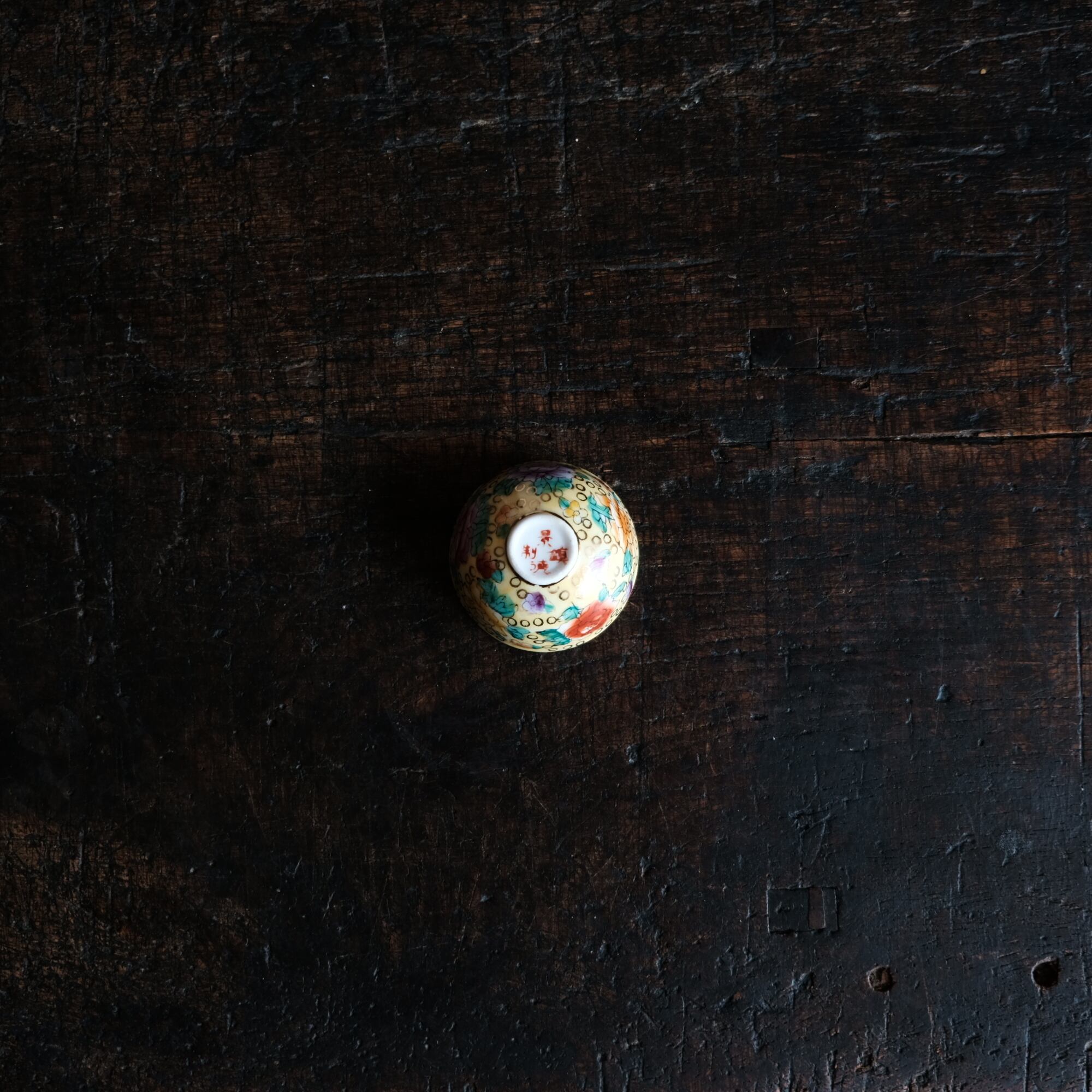 見込みに 蛇(巳)◆中国景徳鎮 干支文色絵金彩小ぶり猪口 茶杯 花尽くし。シノワズリ チャイナレトロ
