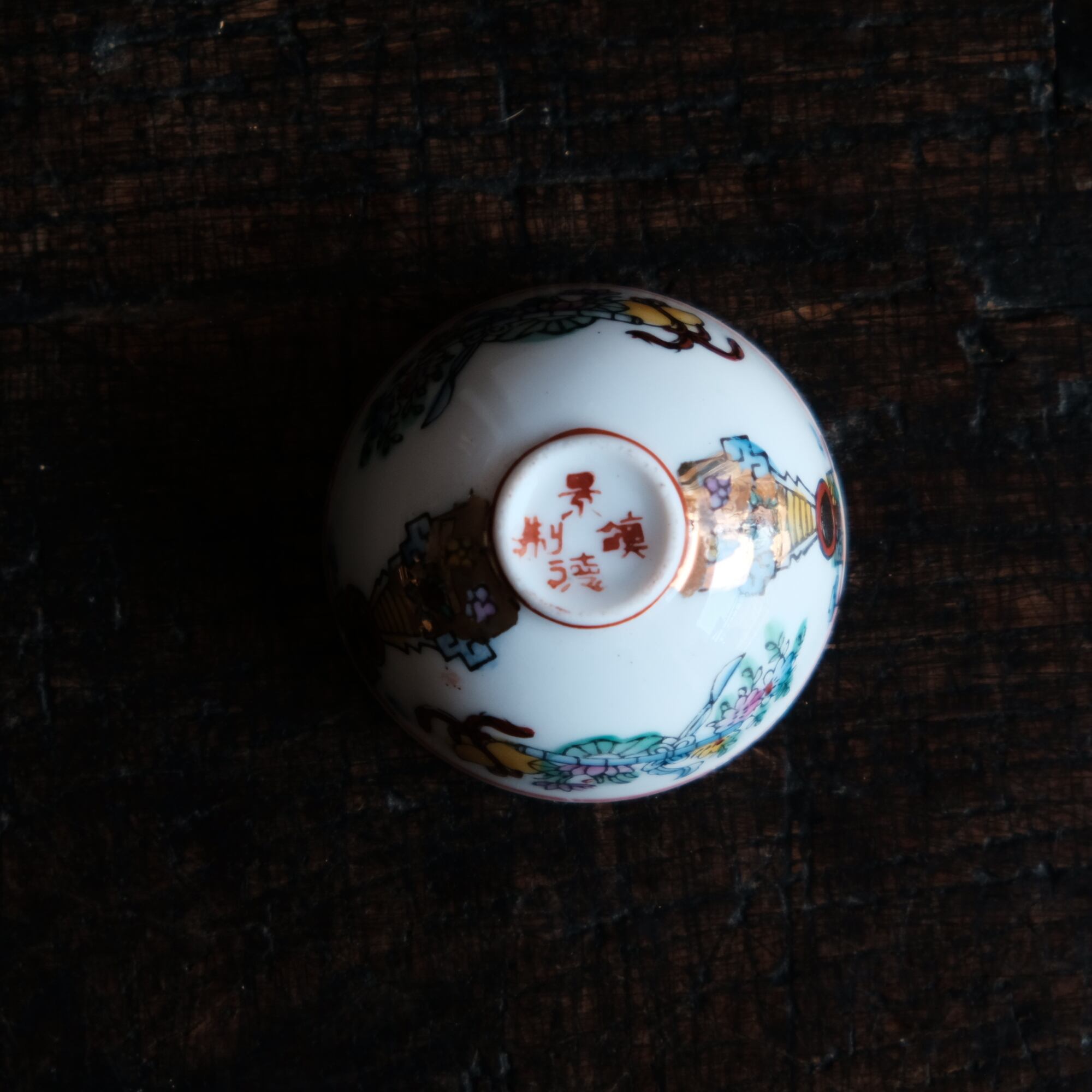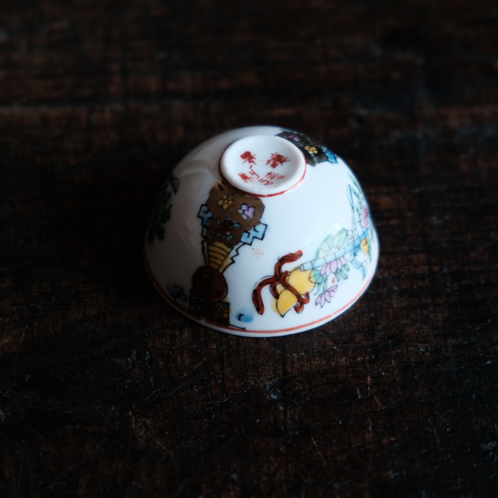 、手描きならではの色の移り、小さな窯傷や経年の擦れ、微々たる器の形の歪み、黒点、凹凸、