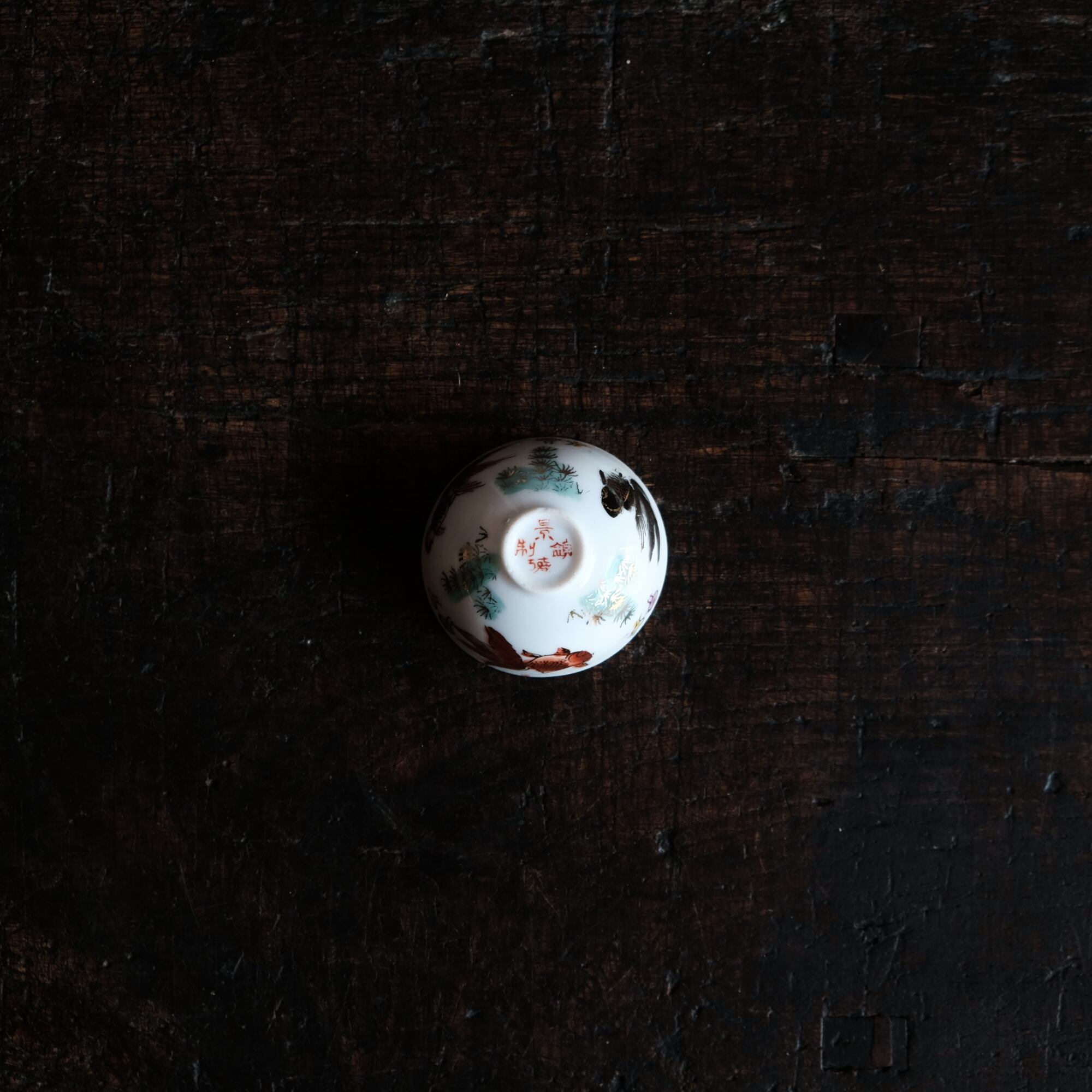 、手描きならではの色の移り、小さな窯傷や経年の擦れ、微々たる器の形の歪み、黒点、凹凸、