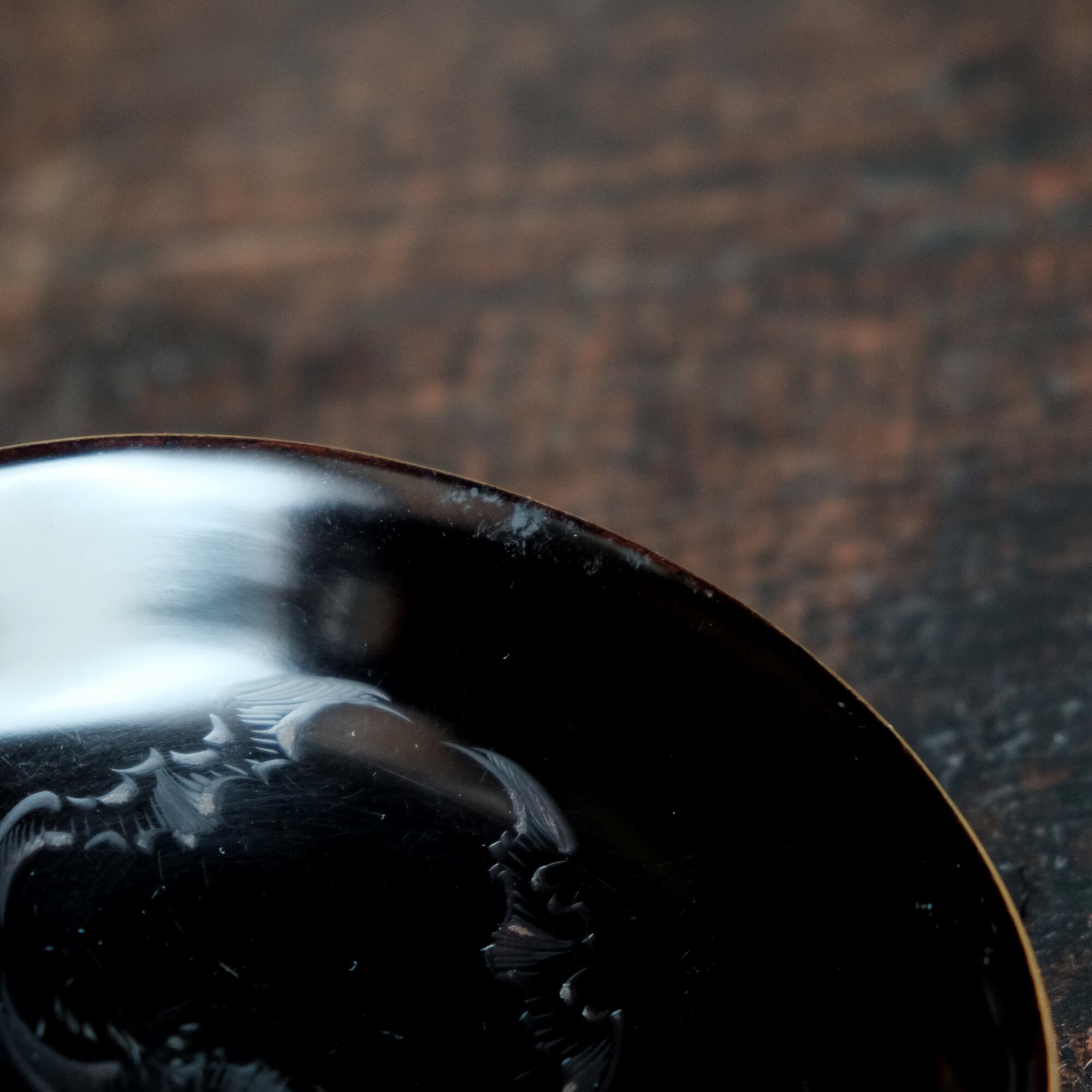 彫刻の彫りのあるデザインが個性的で素敵な漆器になります。