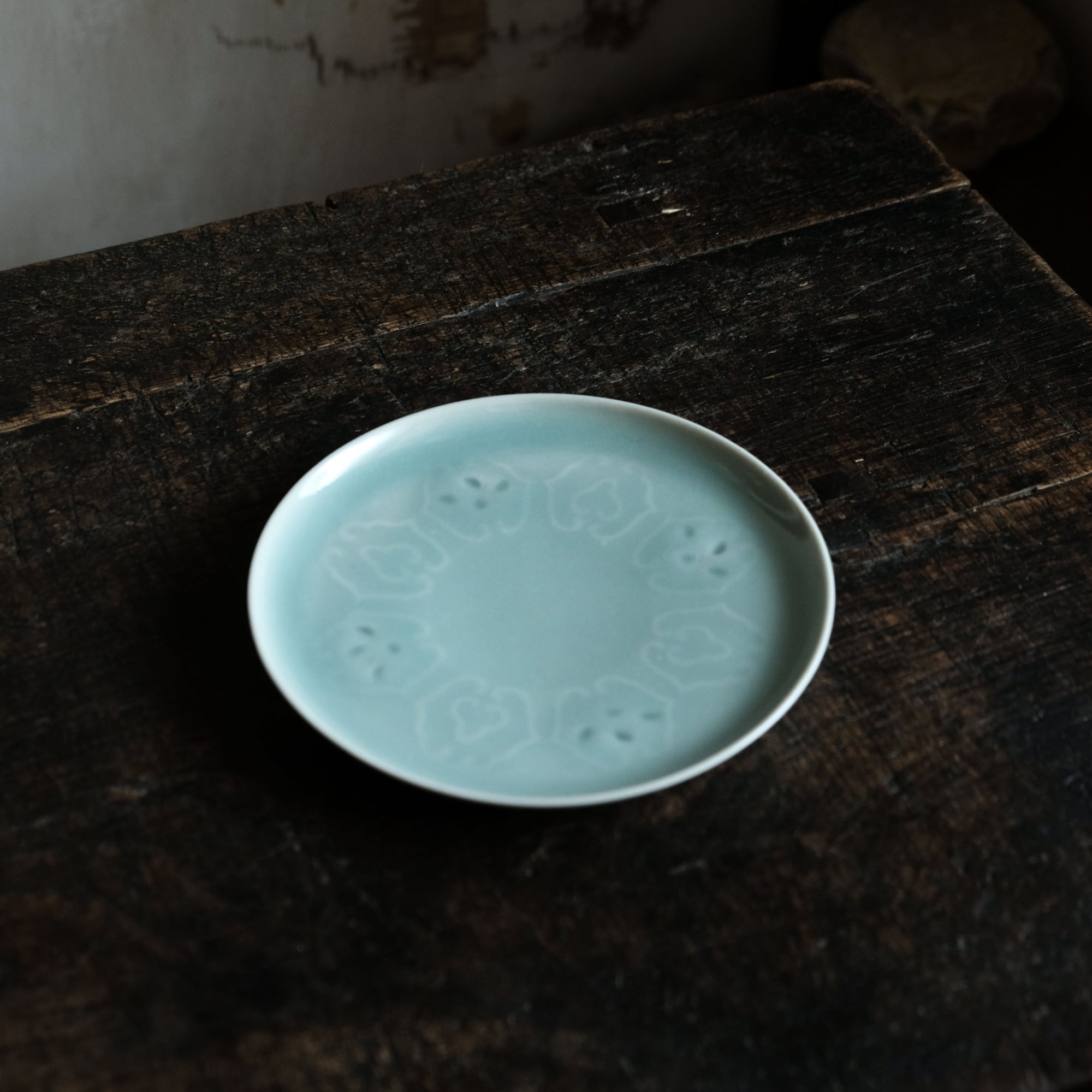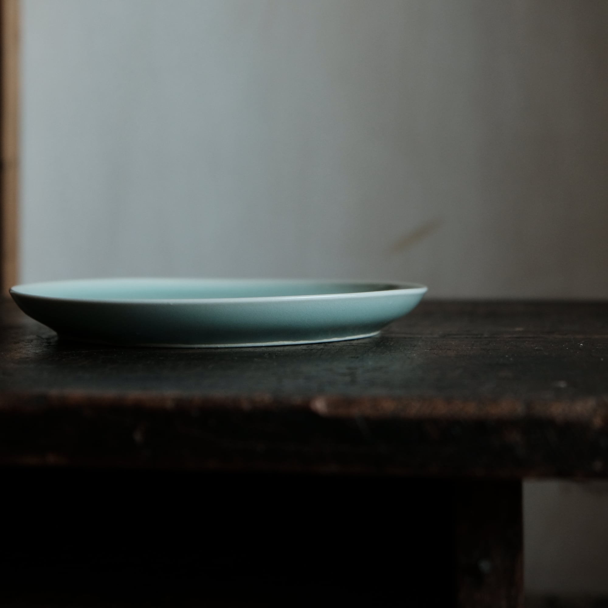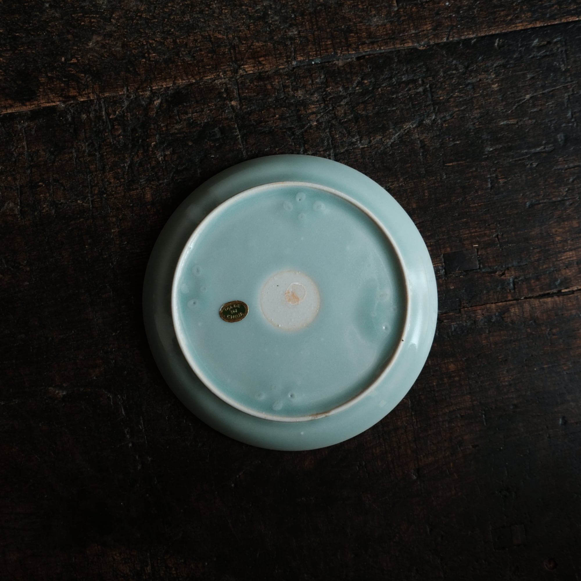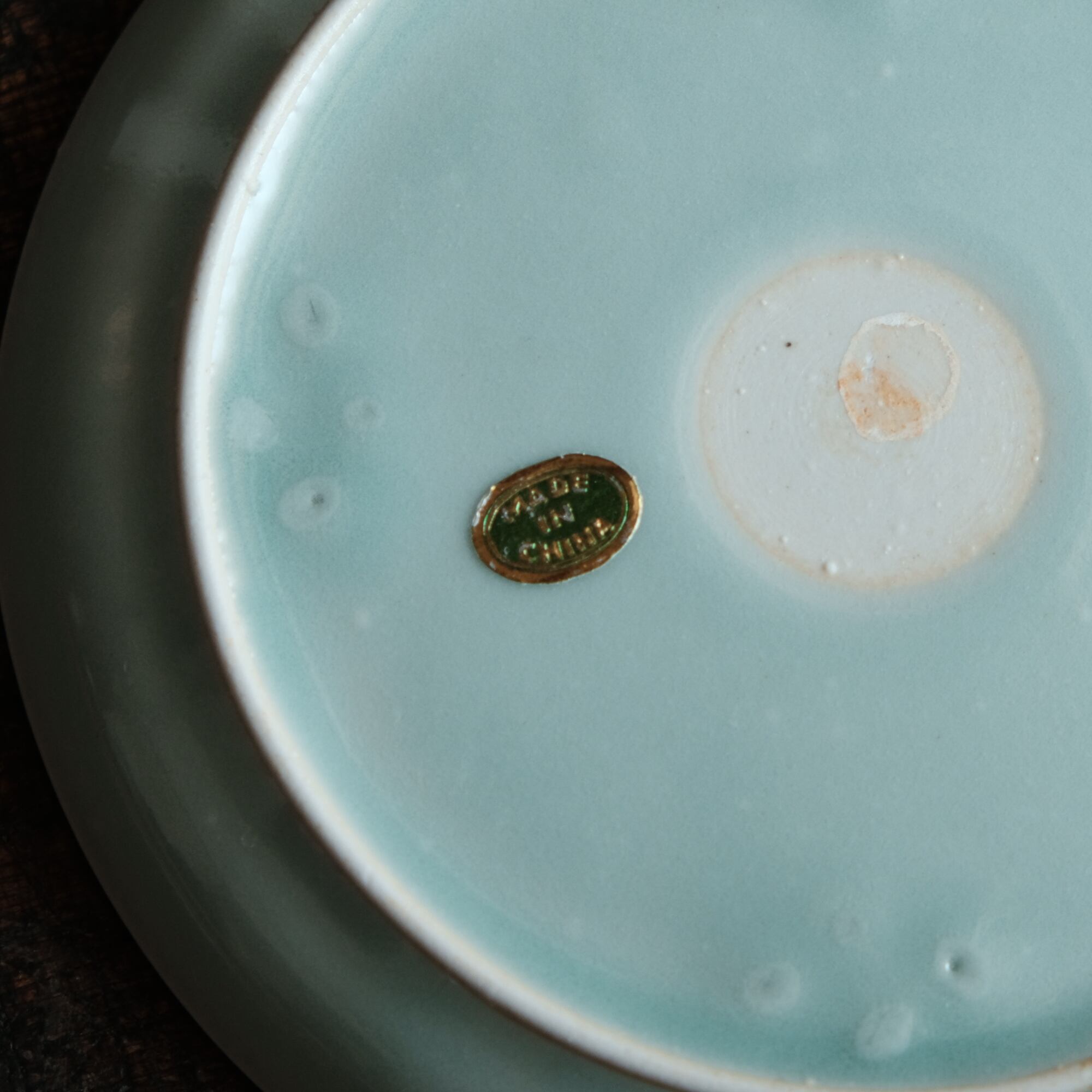 未使用品◆青磁で素敵。中国産青磁中皿プレート チャイナレトロ シノワズリ インテリア 磁器