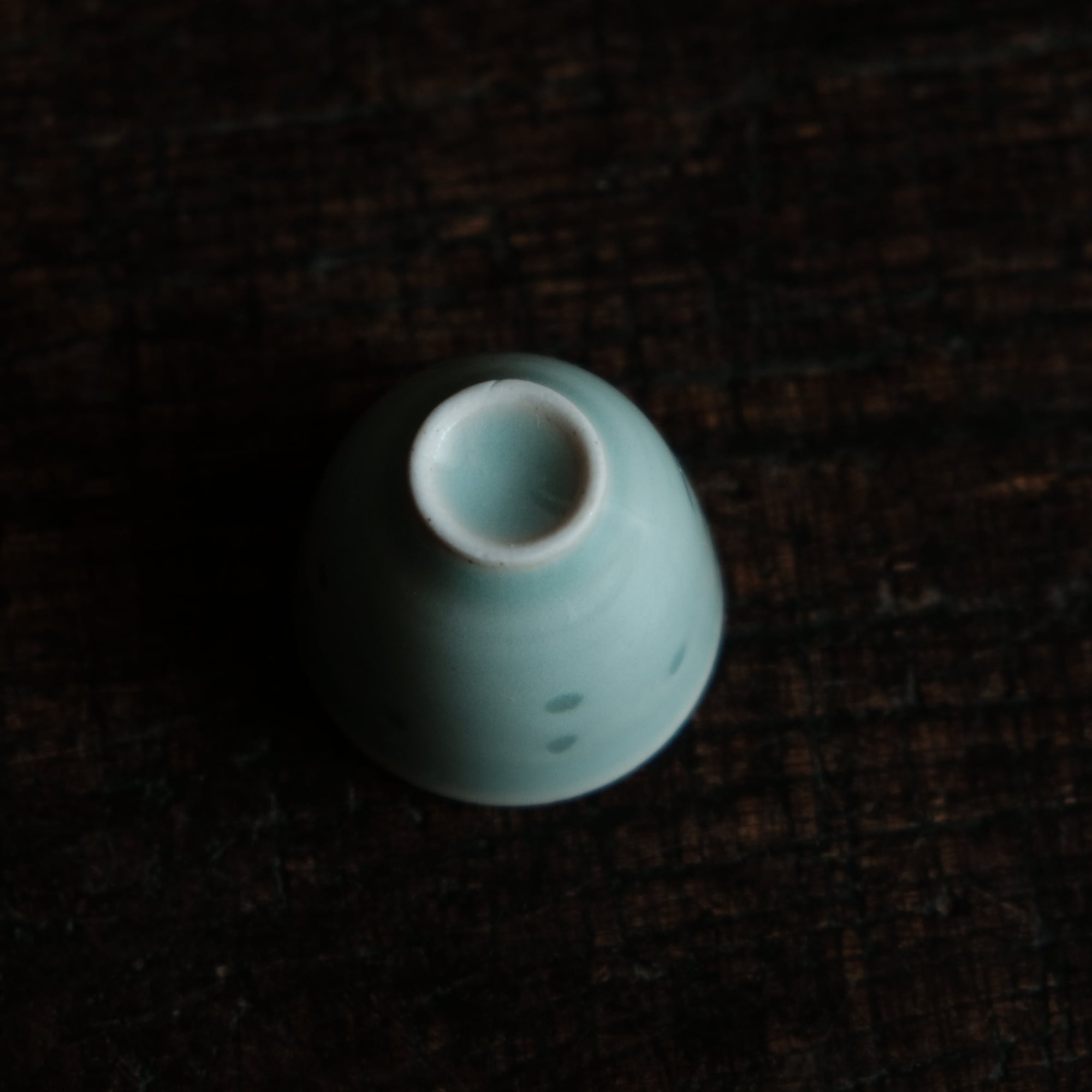 青磁で素敵◆中国産青磁茶杯 小ぶり猪口 茶器 丁寧な暮らしに。チャイナレトロ シノワズリ