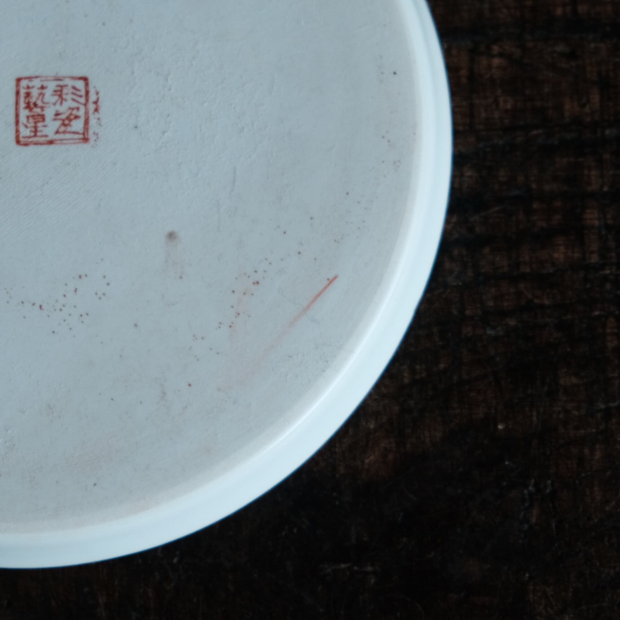 底裏に元よりスレ汚れや斑点などの付着物が見られますがこの手の中国産の器にはよく見られる現象となります。