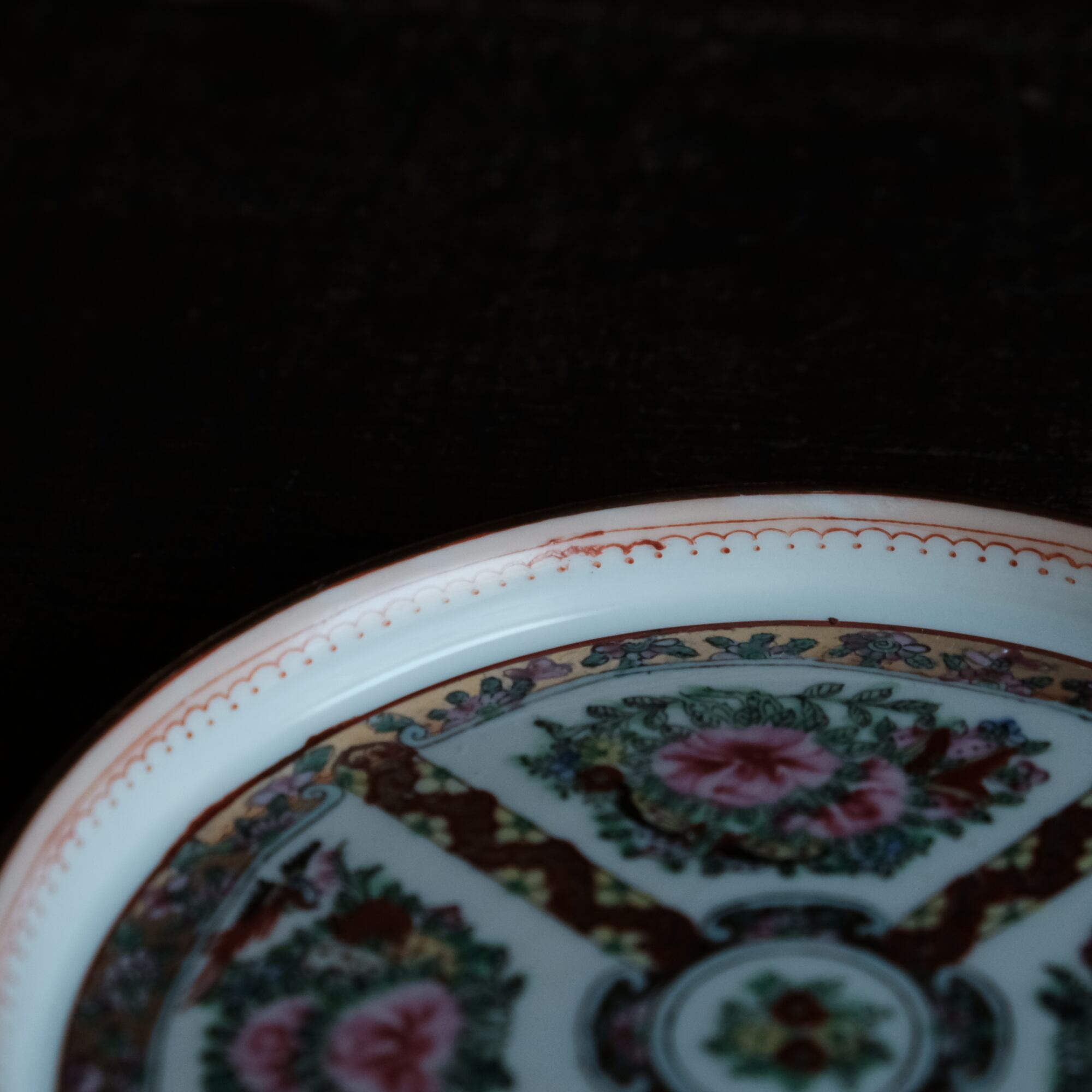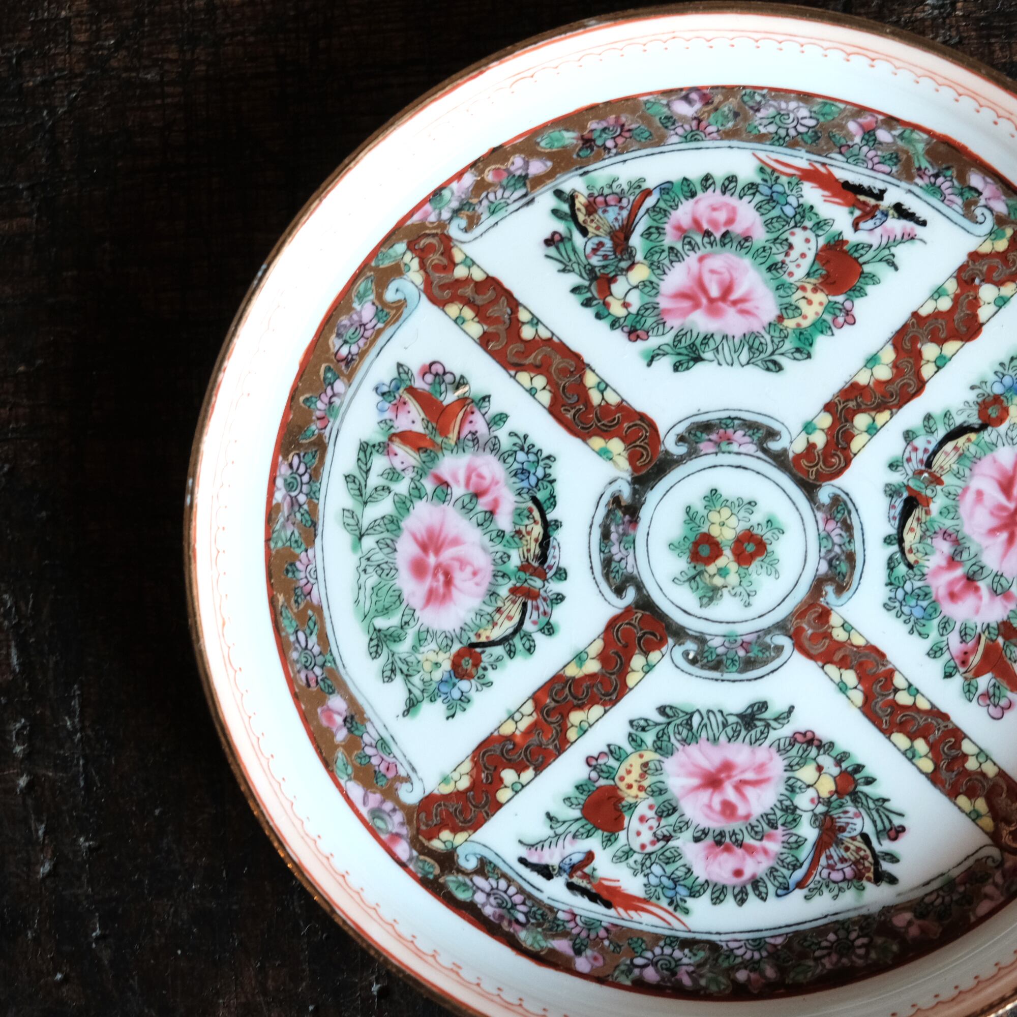 牡丹と蝶々◆チャイナレトロで可愛い。中国産 色絵金彩中皿プレート シノワズリ インテリア 飾り皿