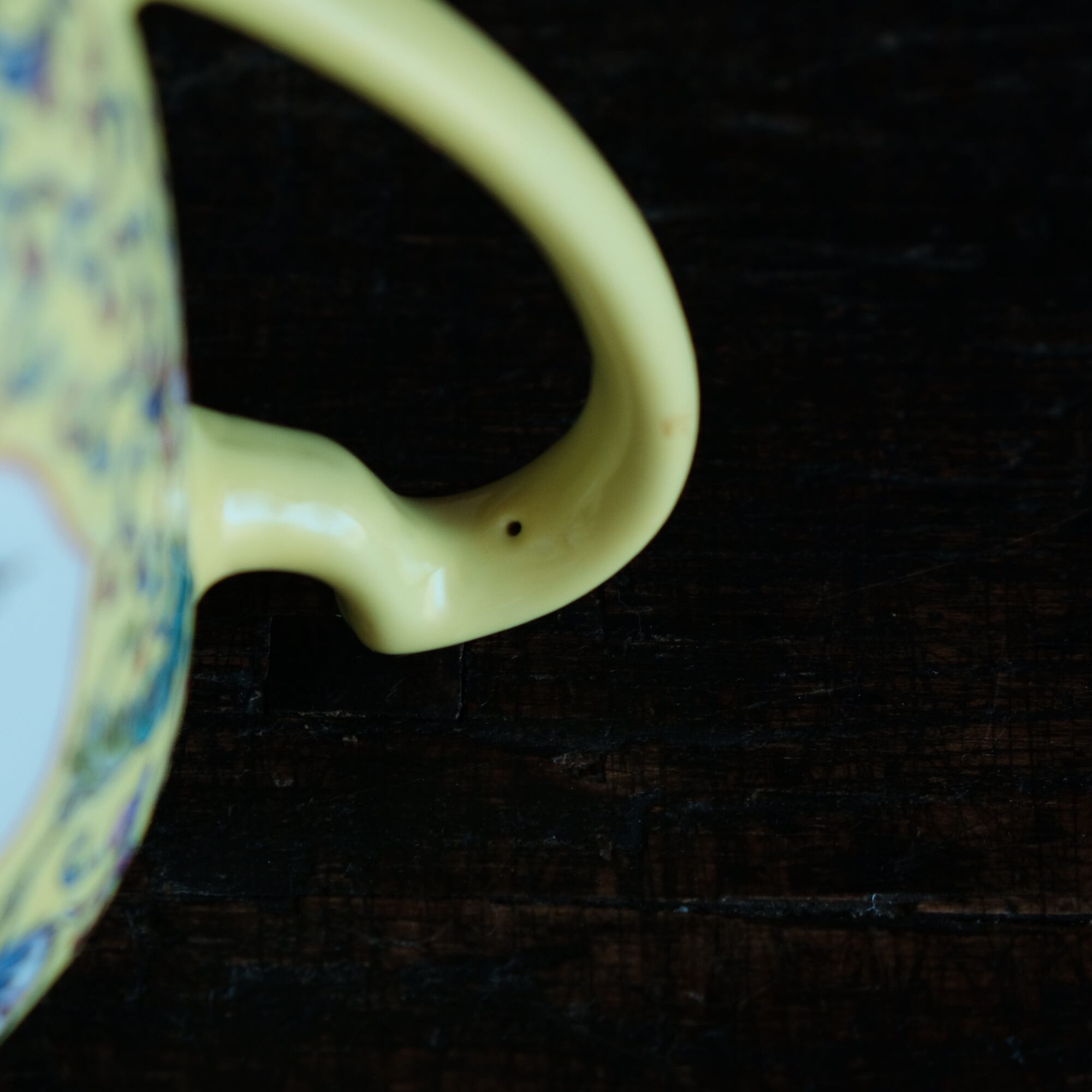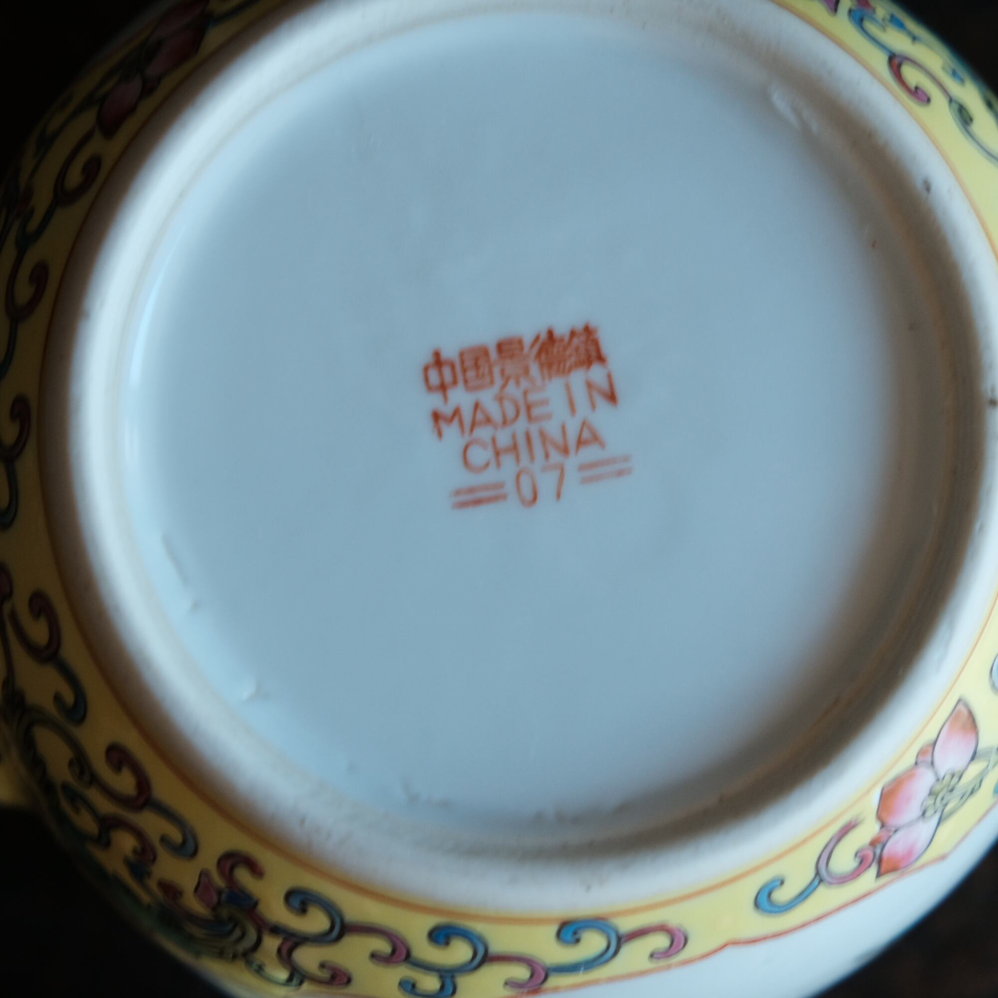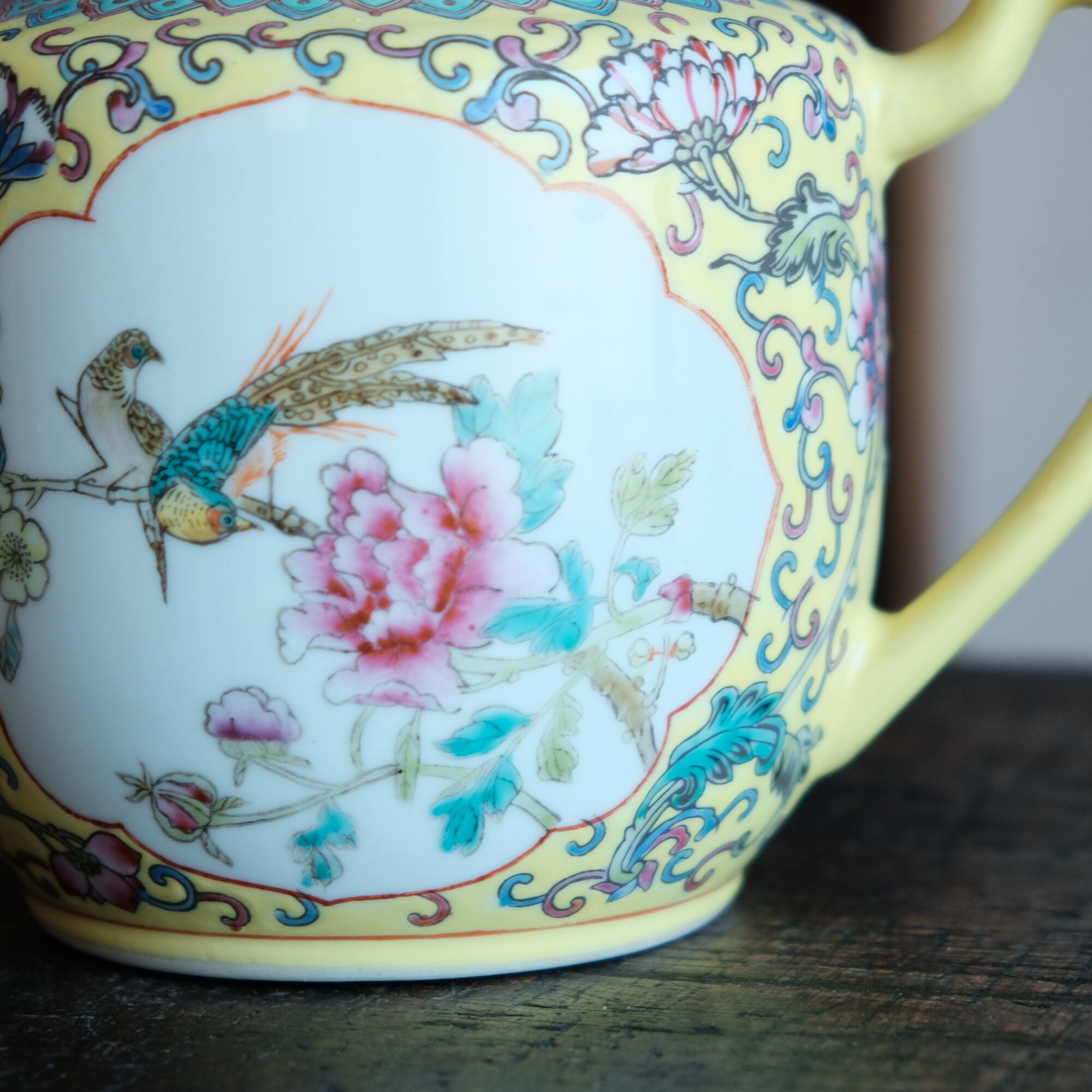 花と鳥◆中国景徳鎮 花鳥文色絵急須 茶器 シノワズリ チャイナレトロ ビビットカラー イエロー・黄色
