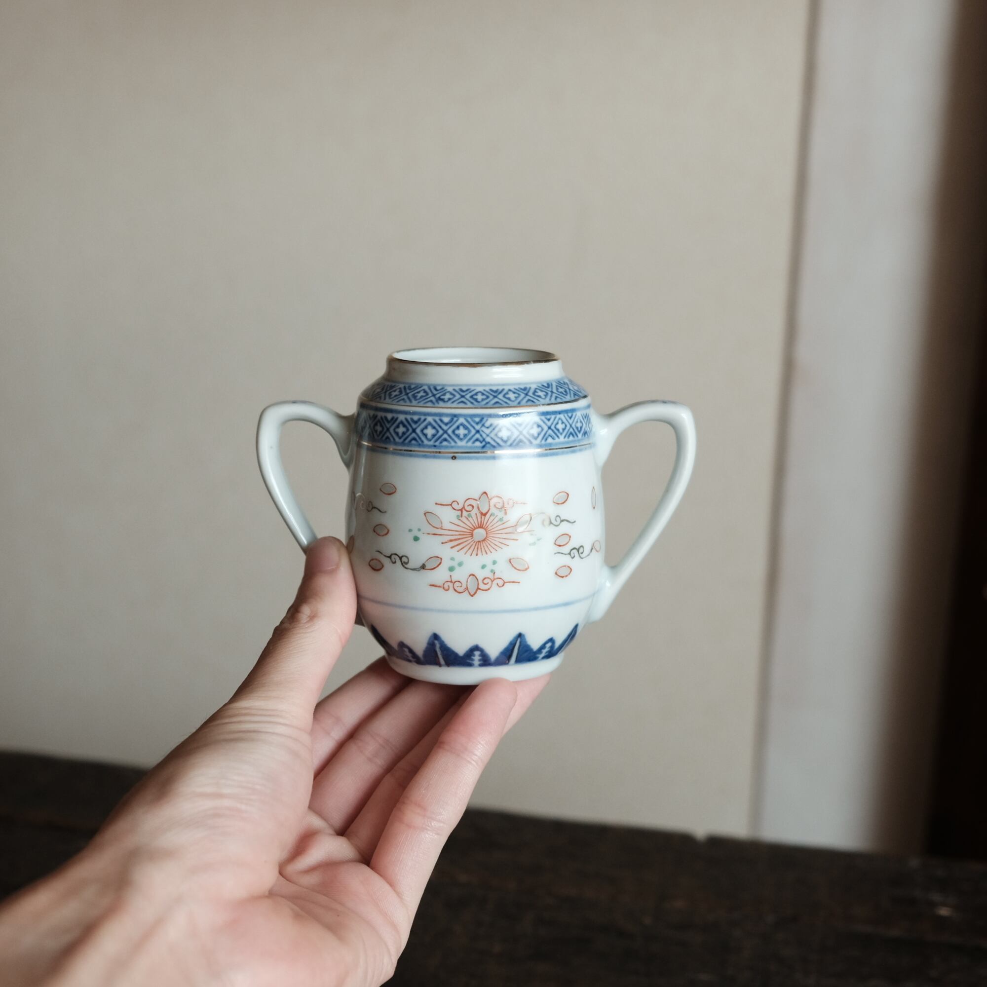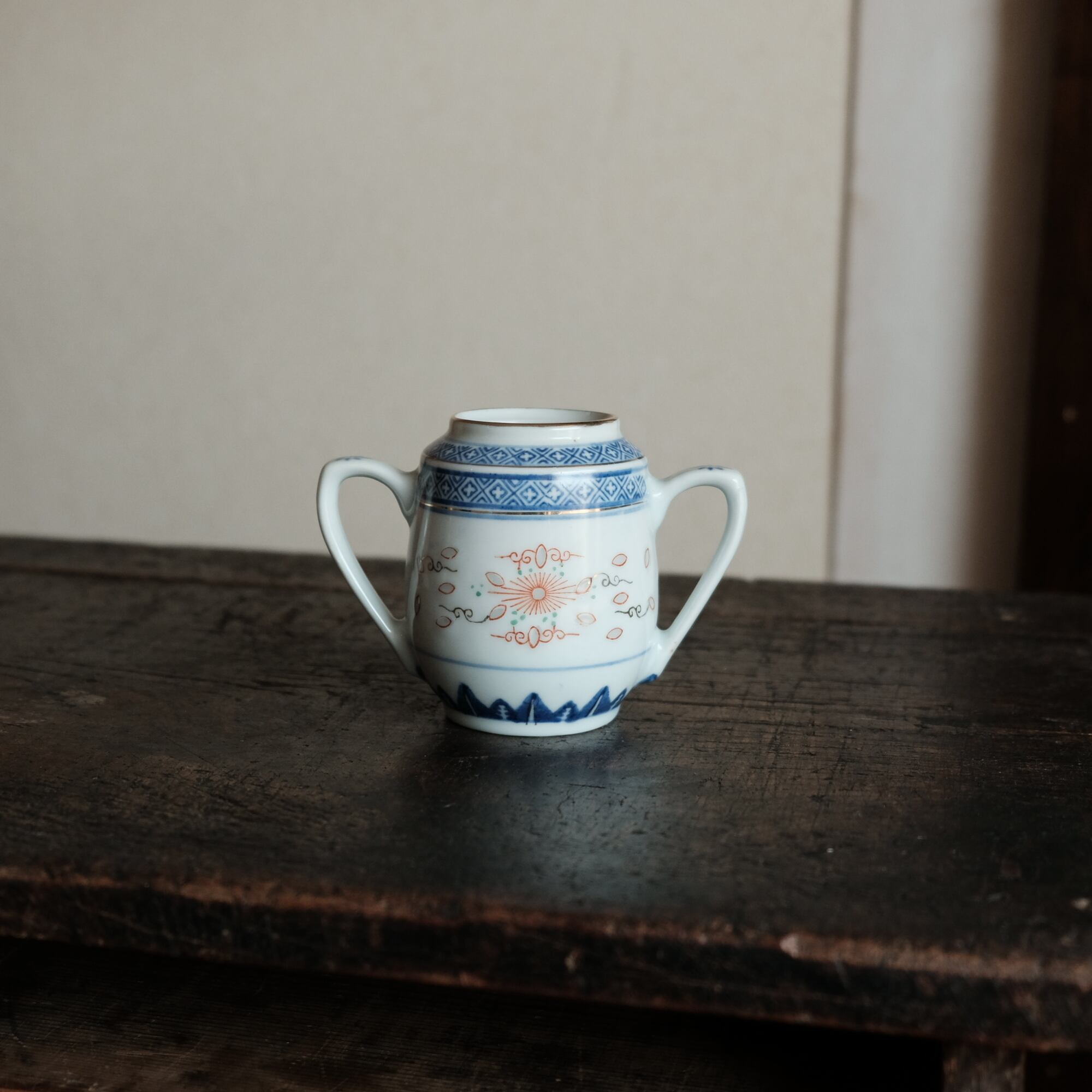 素敵なフォルム◇中国景徳鎮 花文蛍焼赤絵金彩シュガーポット 茶器 オブジェ チャイナレトロ シノワズリ【蓋無し】