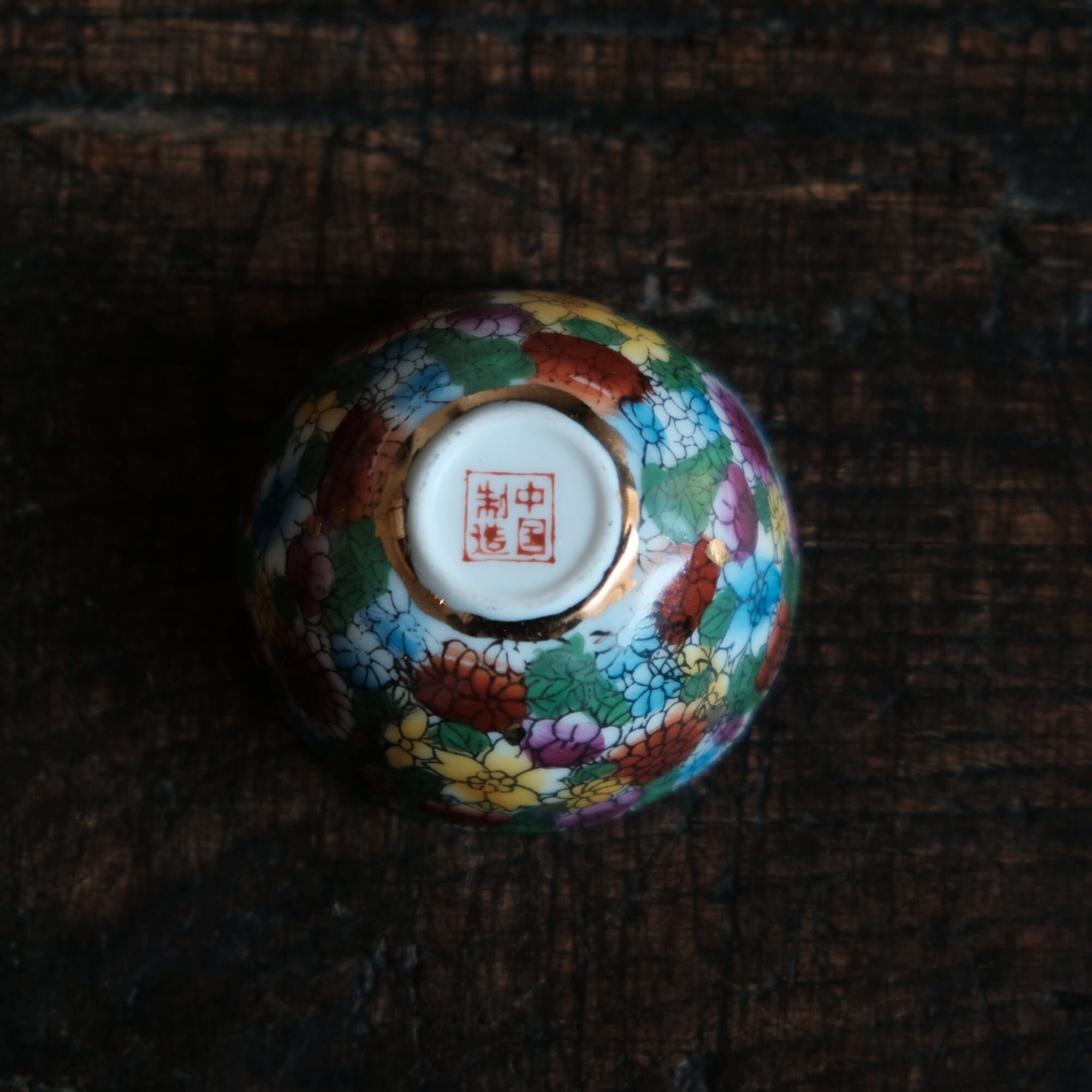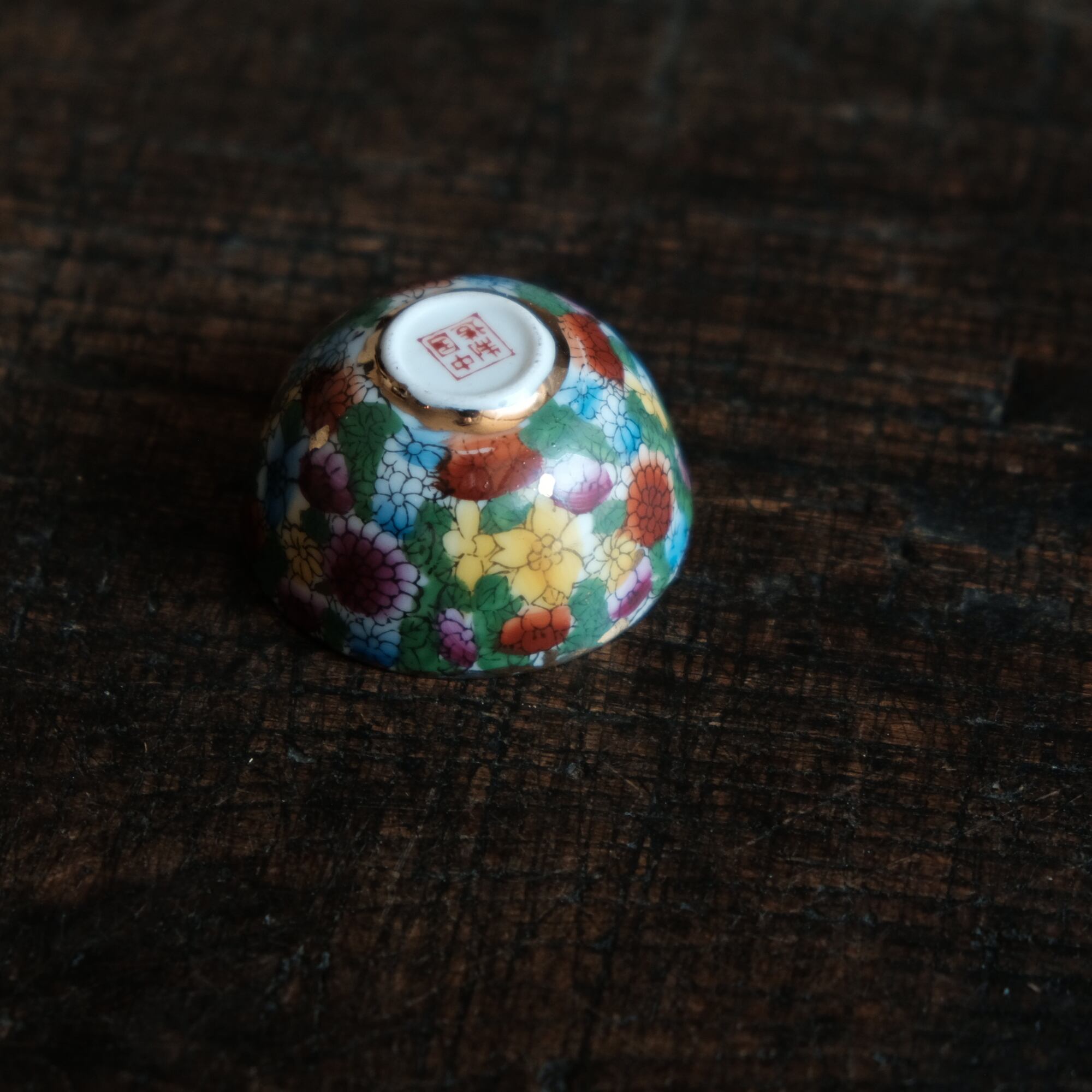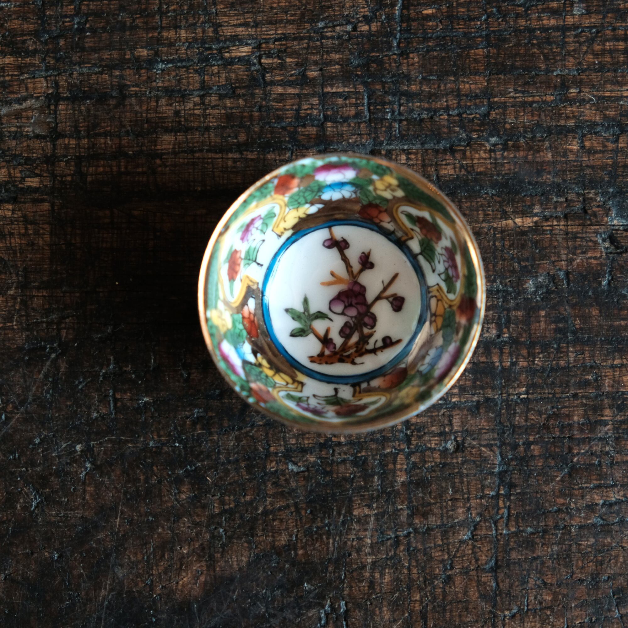 見込みに梅◆中国景徳鎮 色絵金彩小ぶり猪口 茶杯 カラフル チャイナレトロ シノワズリ 工芸品