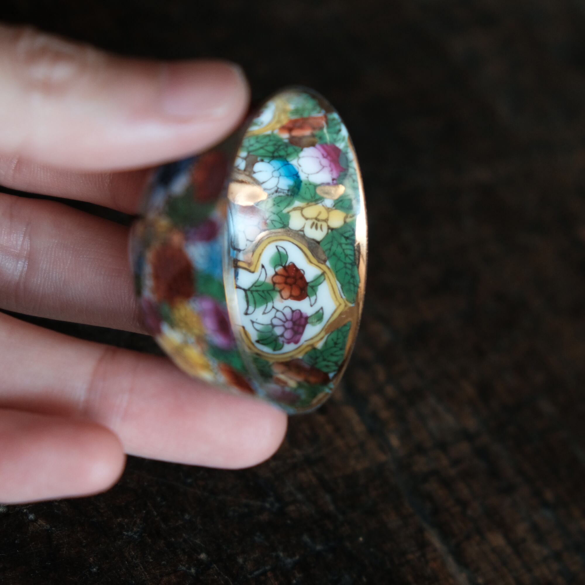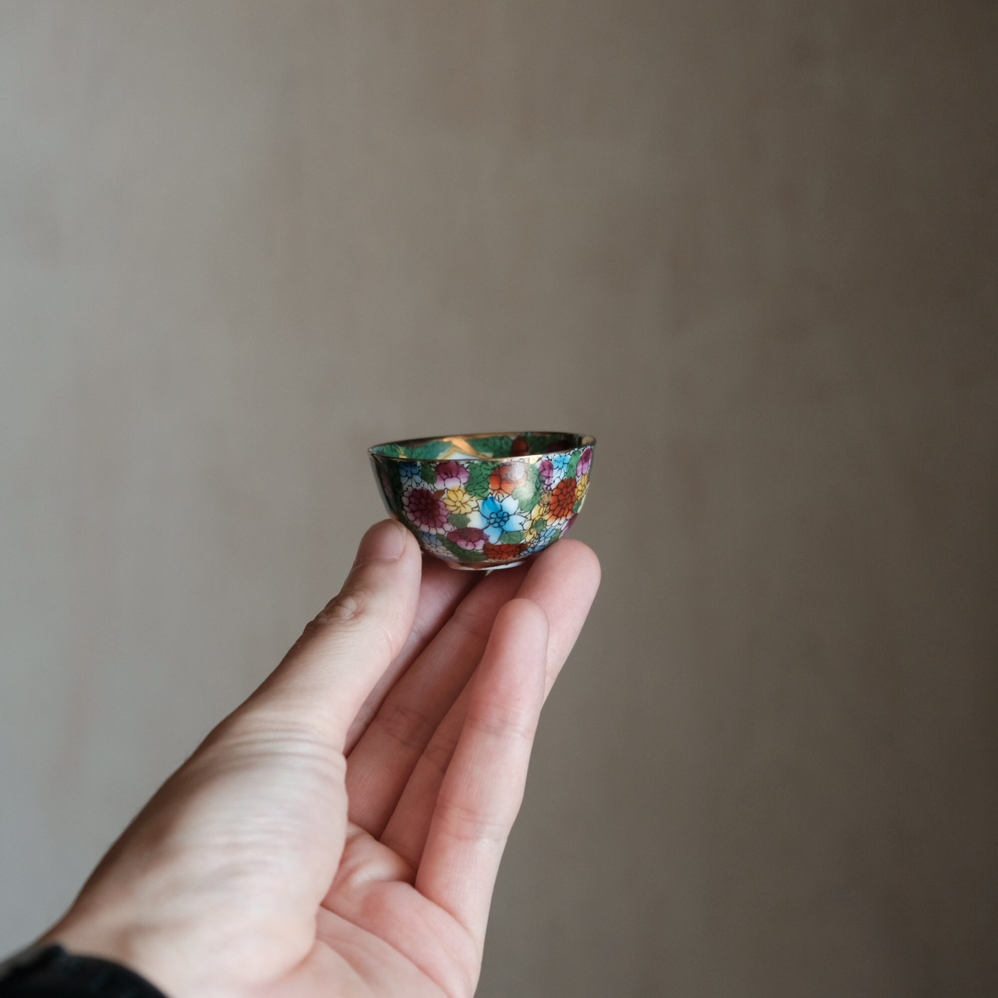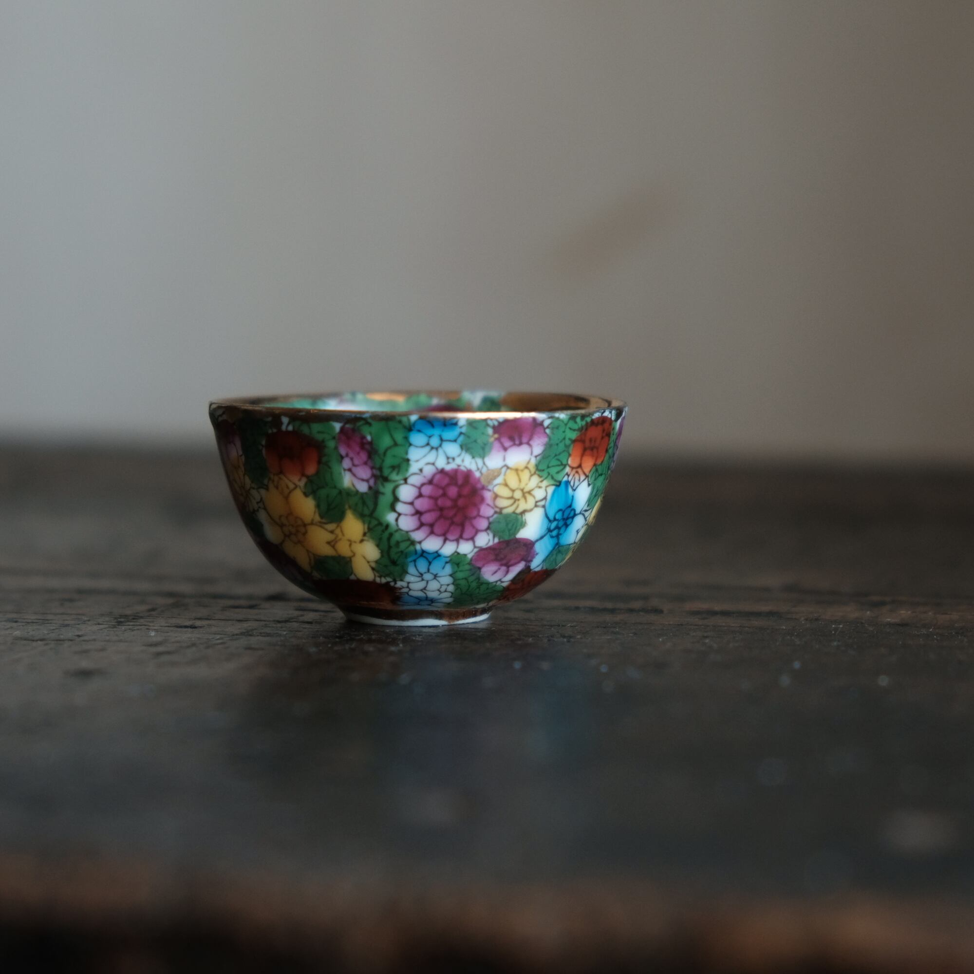 見込みに梅◆中国景徳鎮 色絵金彩小ぶり猪口 茶杯 カラフル チャイナレトロ シノワズリ 工芸品