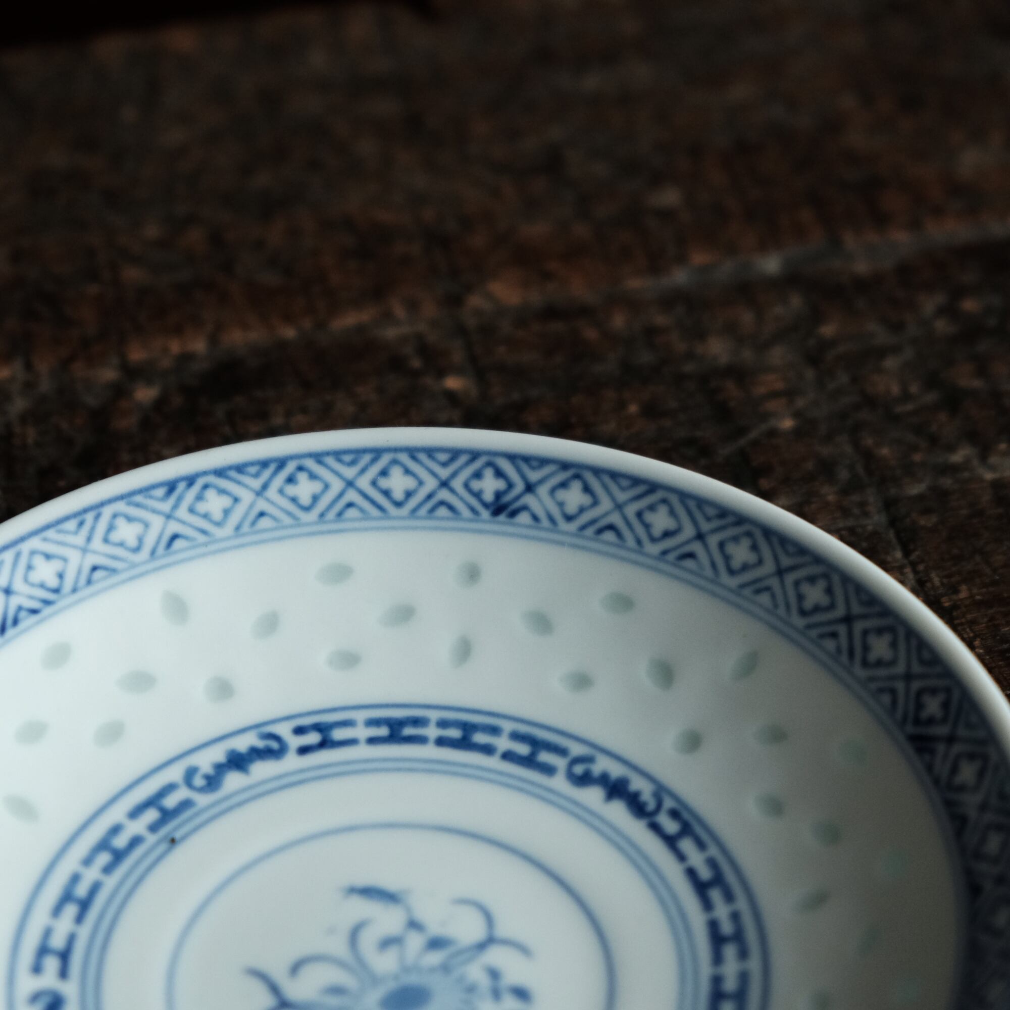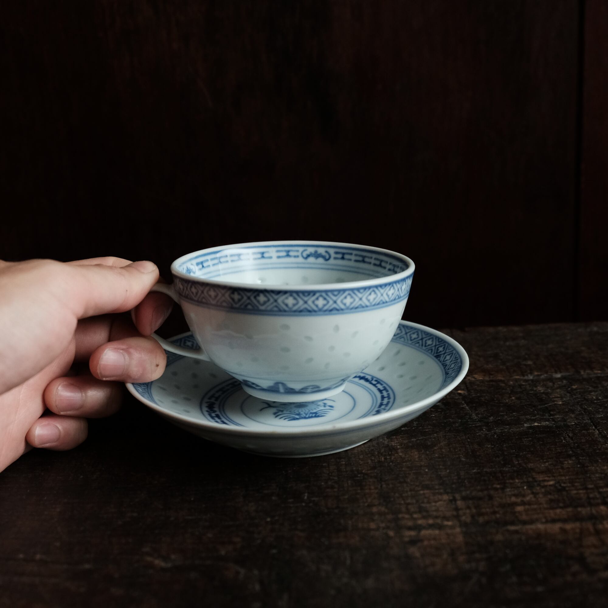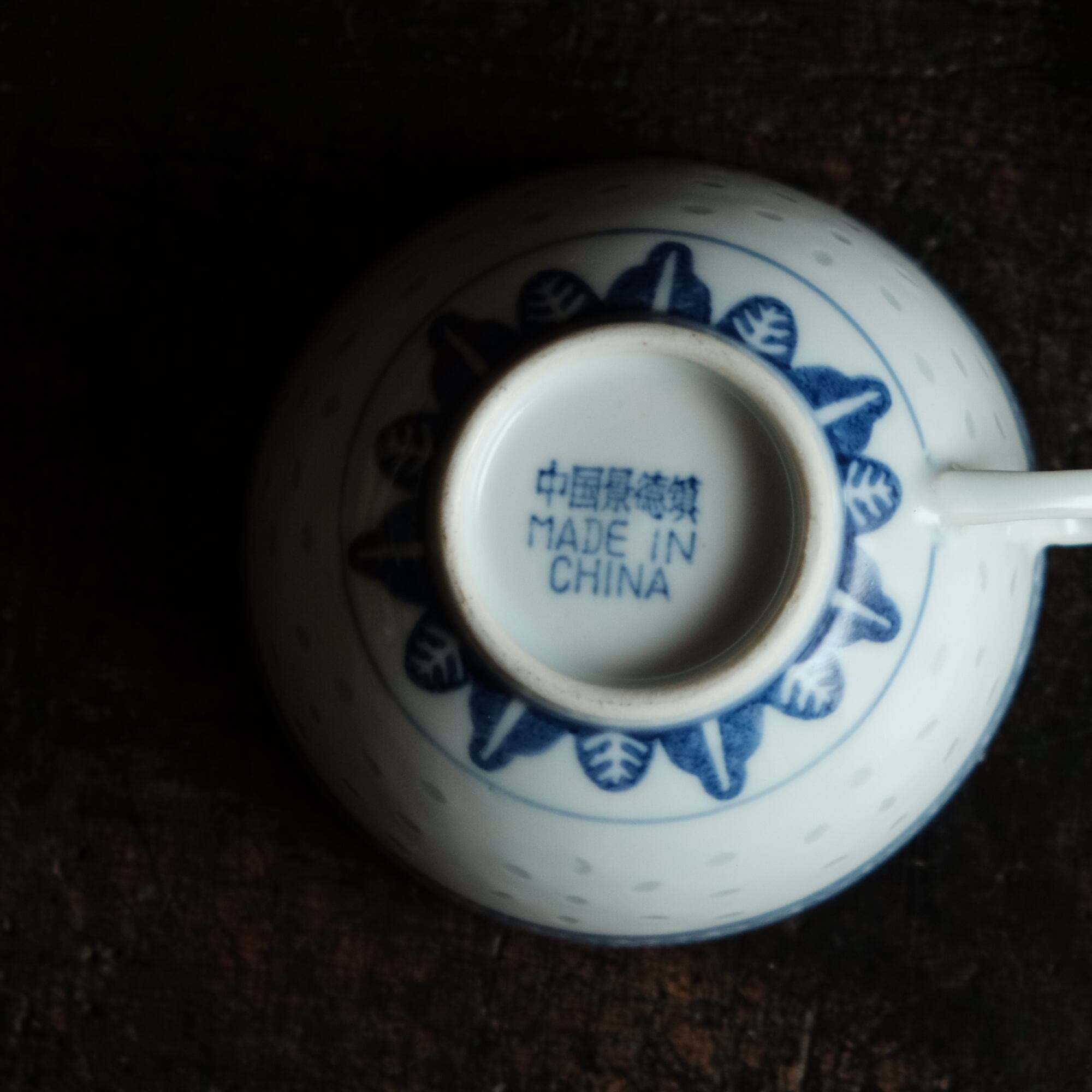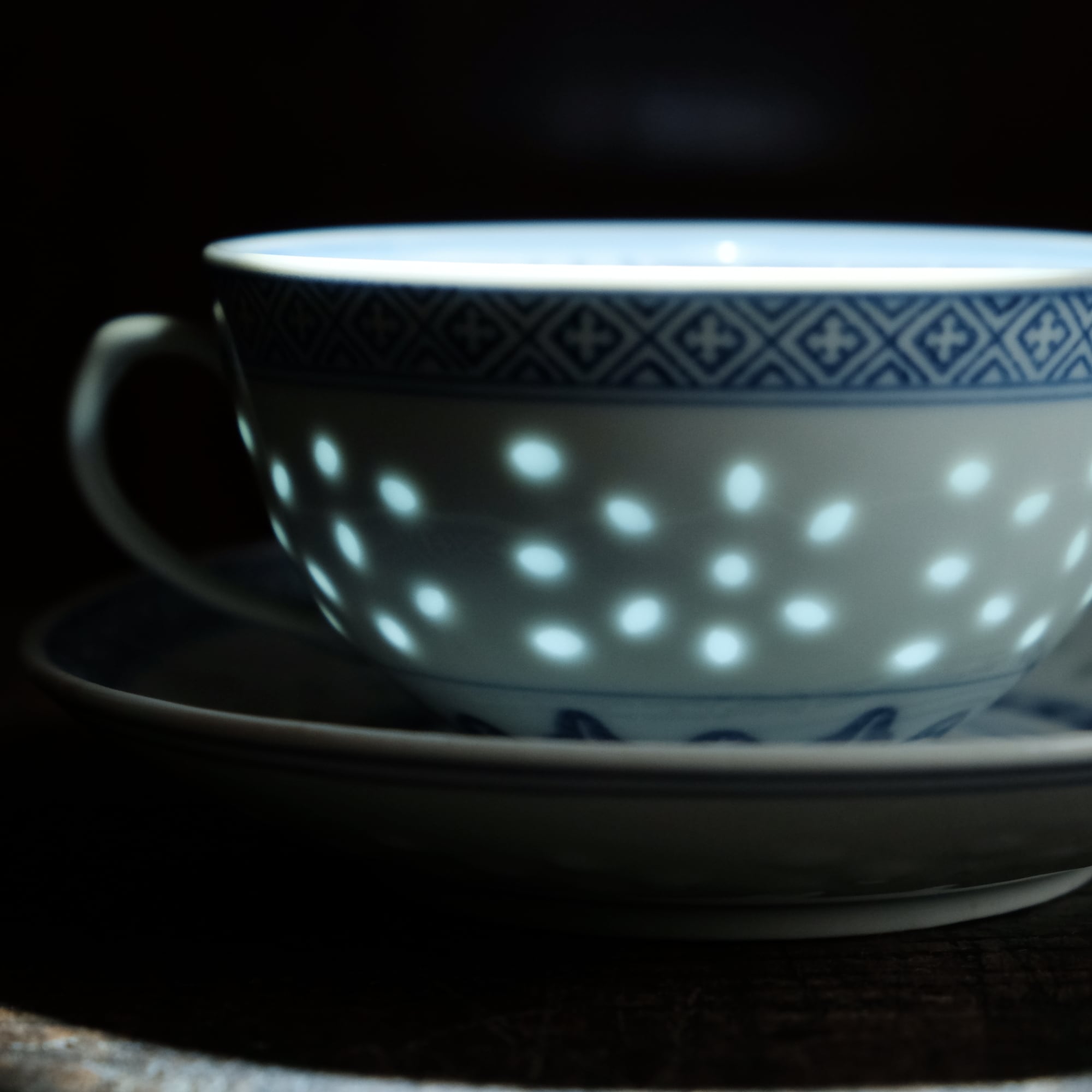 ソーサーの見込みの文様は青花の文様となっております。