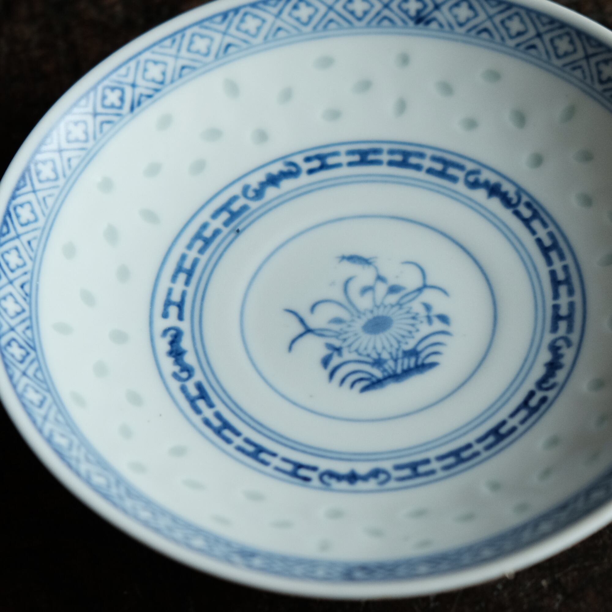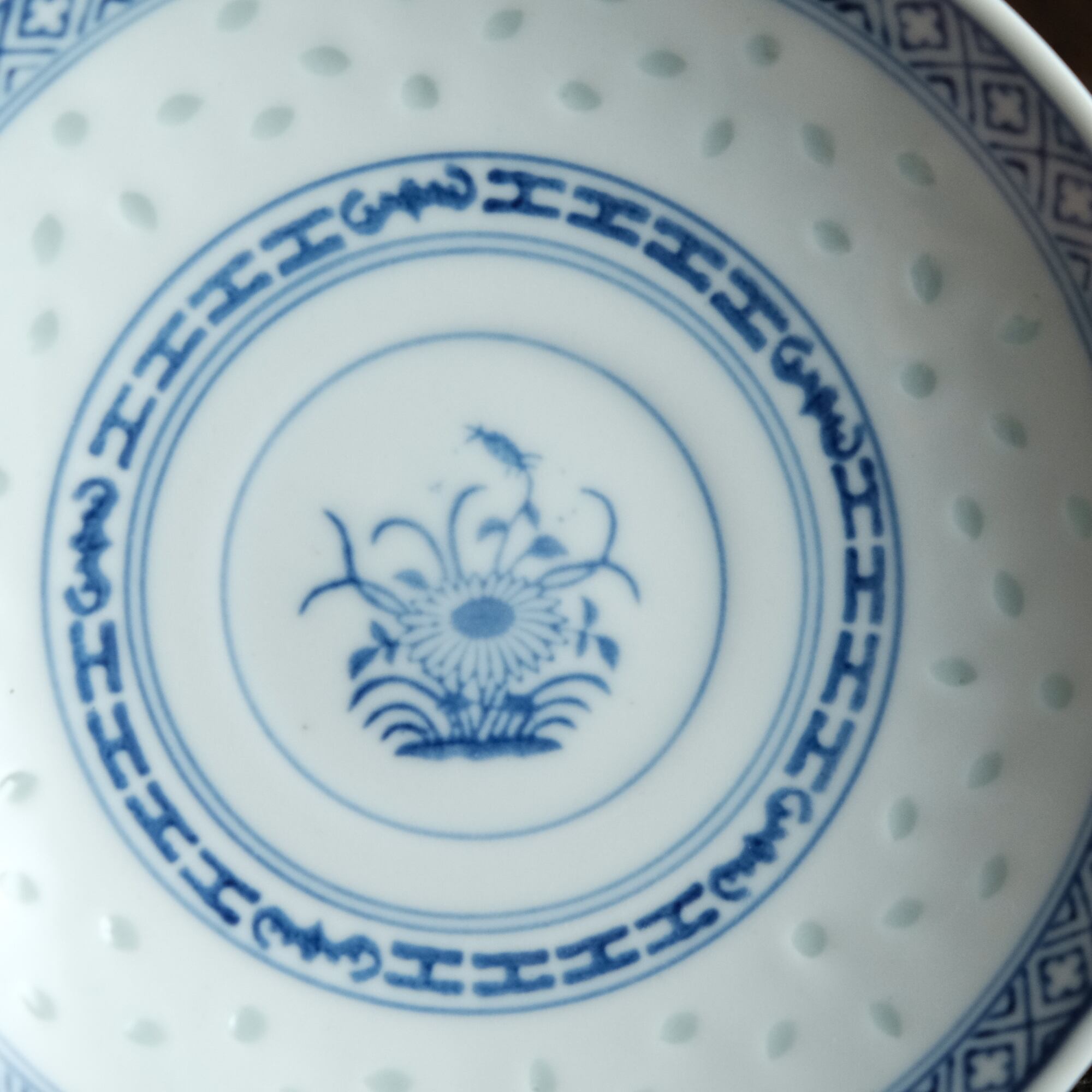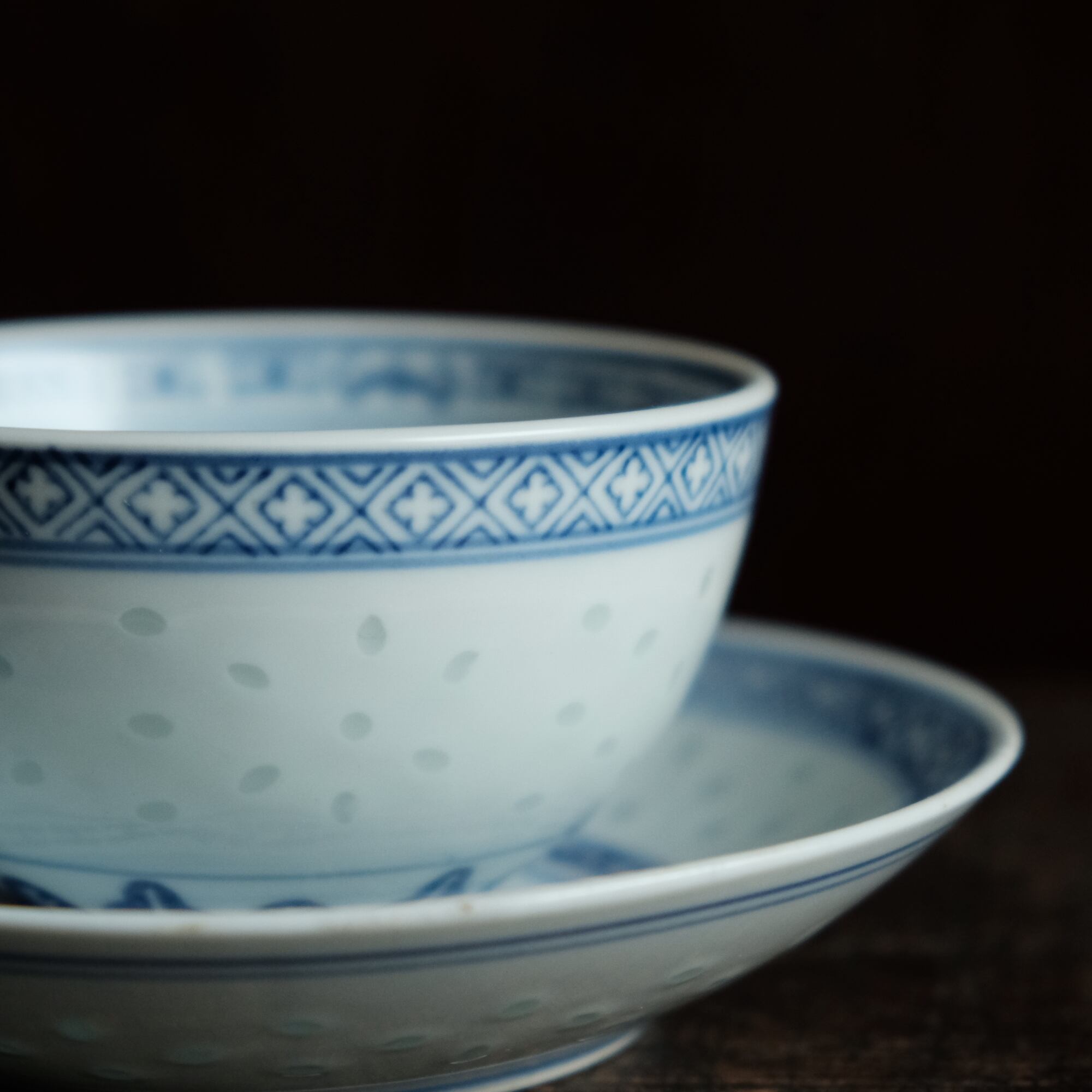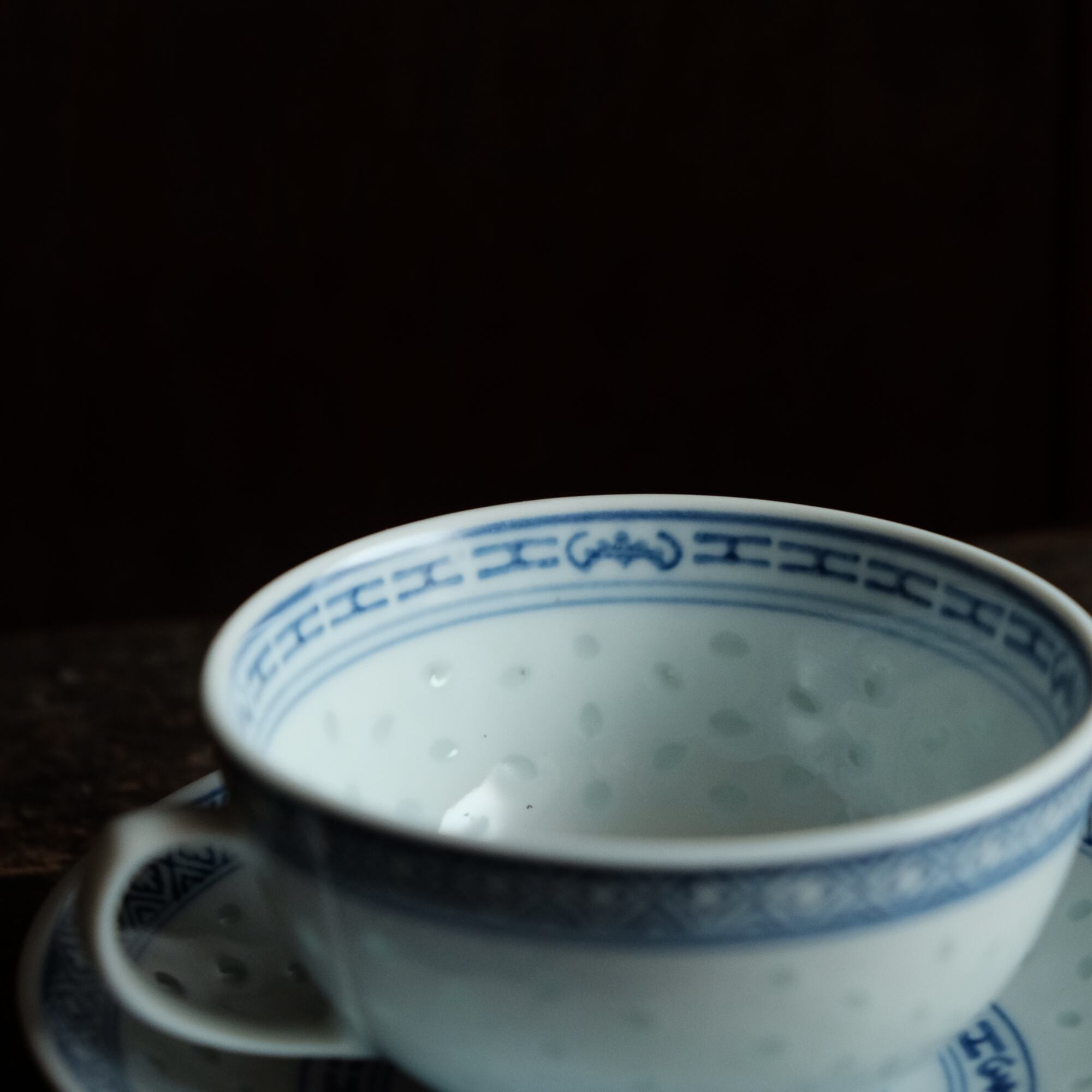 ソーサーの見込みの文様は青花の文様となっております。
