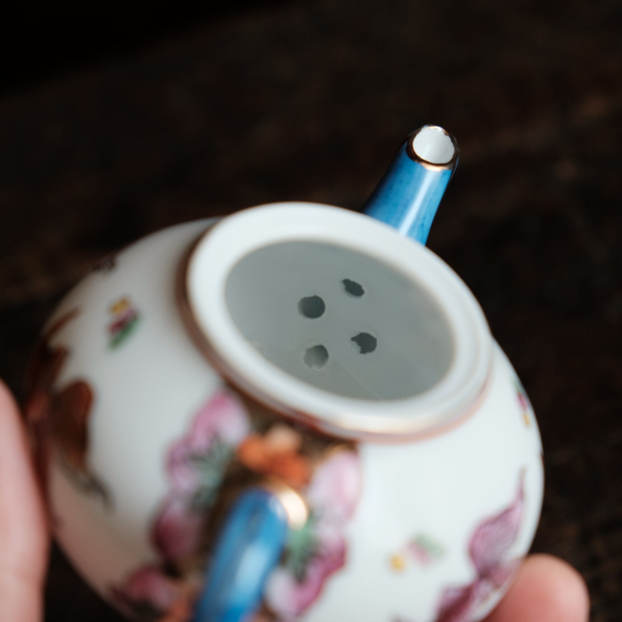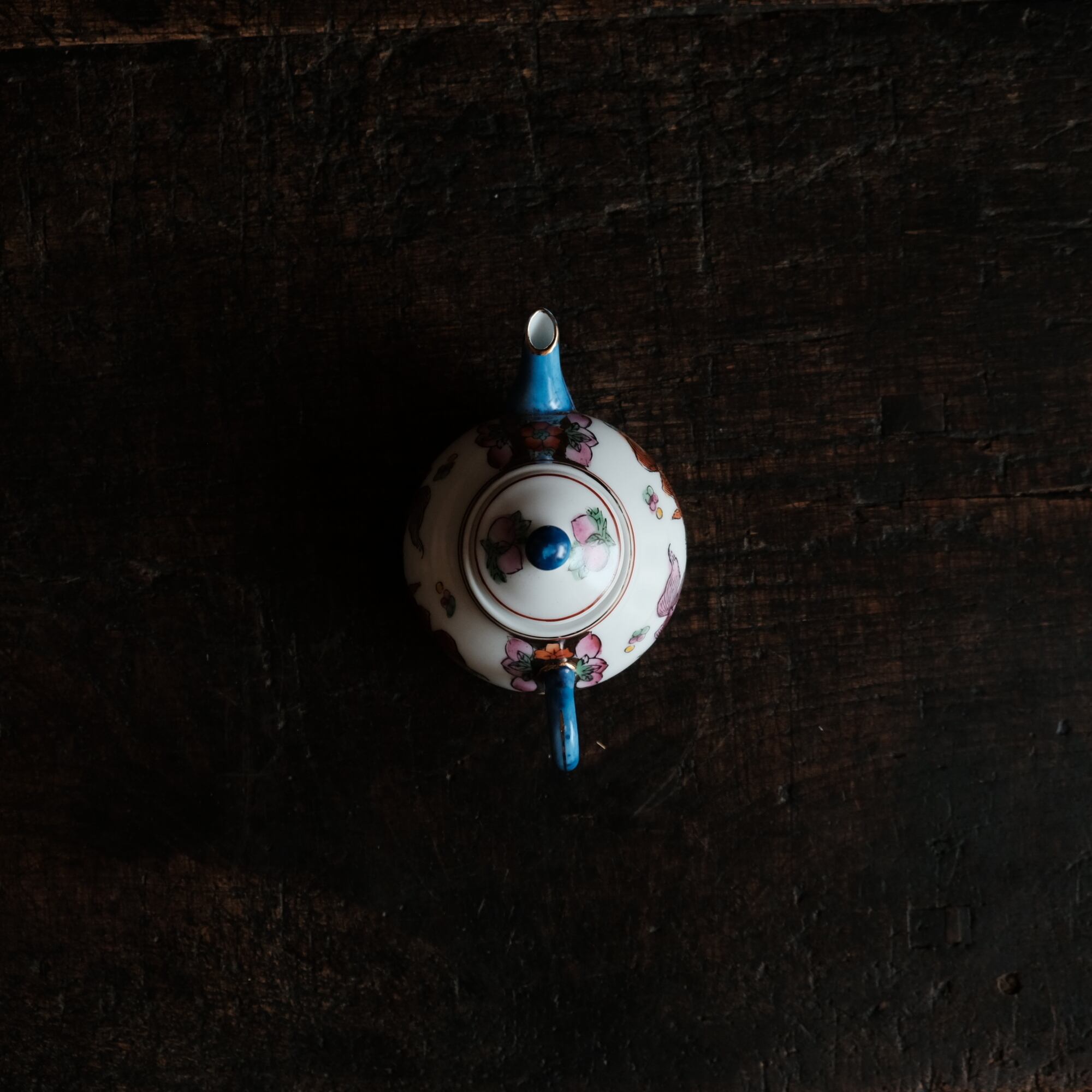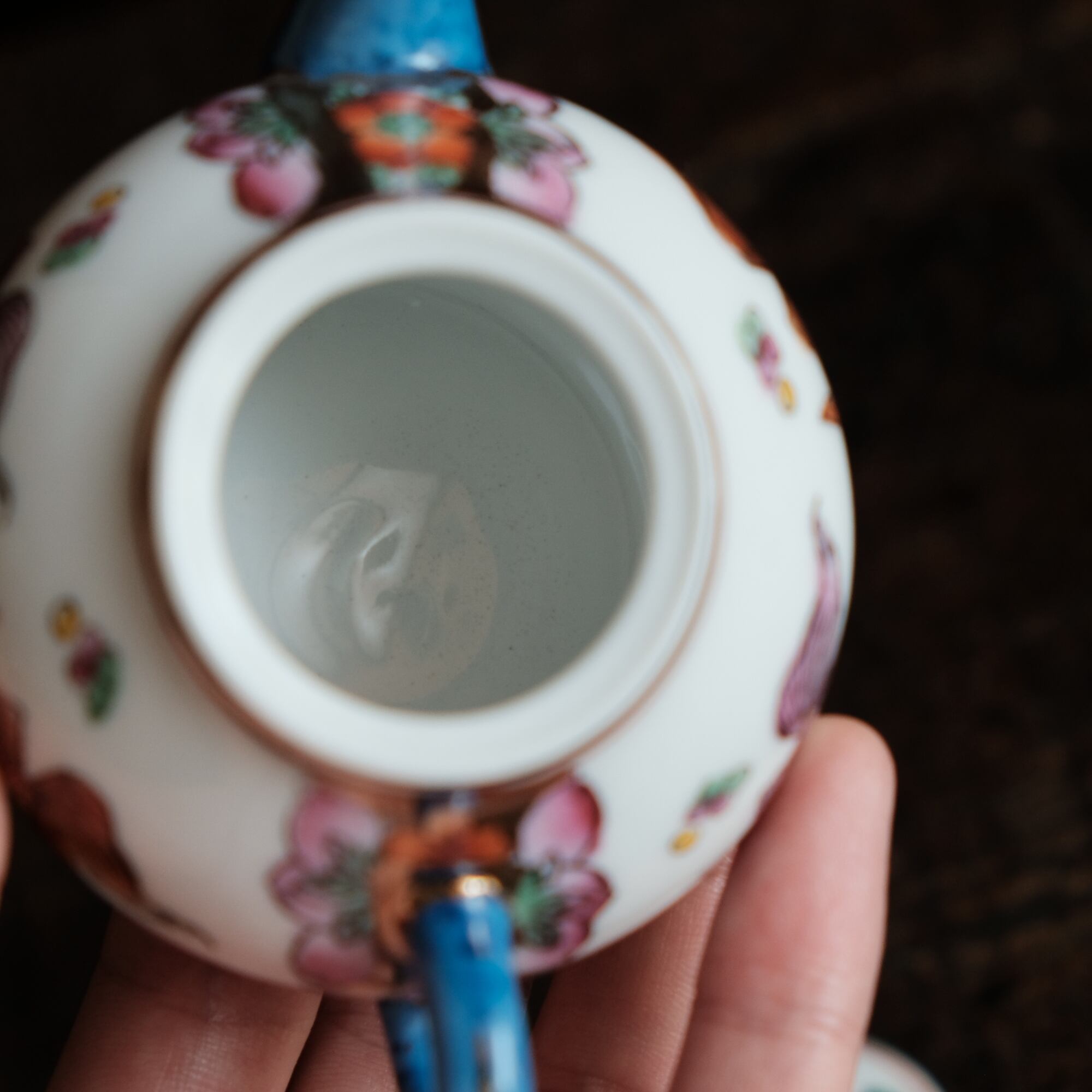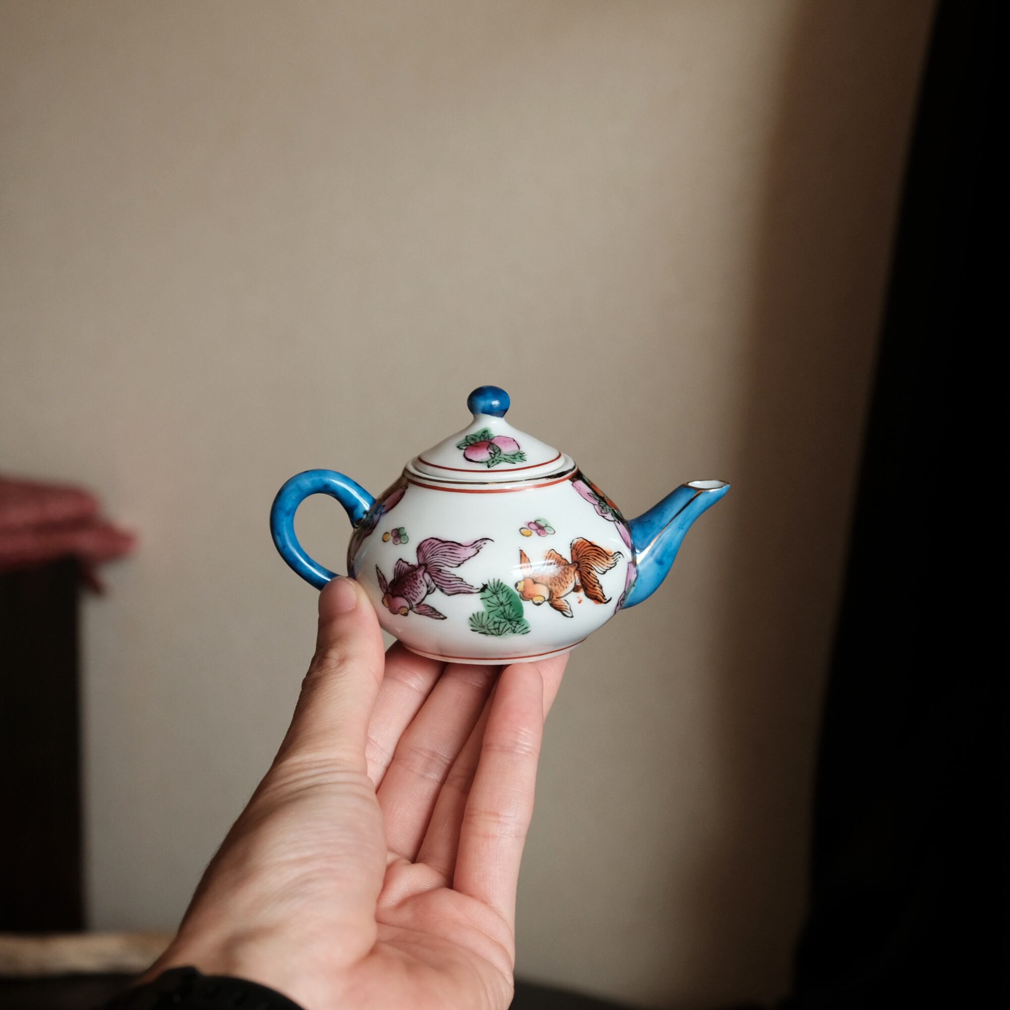 桃と金魚◆水草と泡。中国製造 色絵金彩小ぶり急須 煎茶茶器 インテリアオブジェ シノワズリ チャイナレトロ