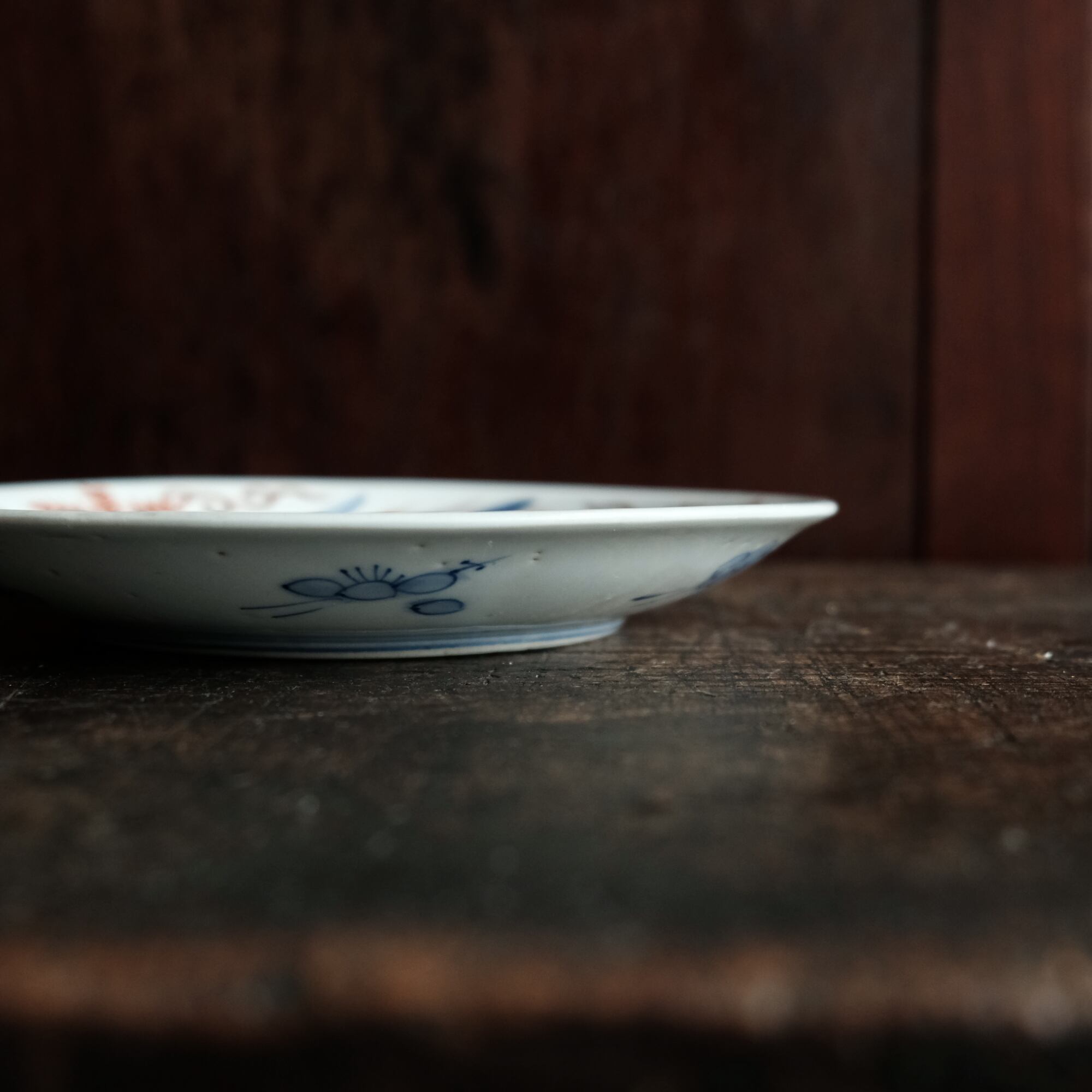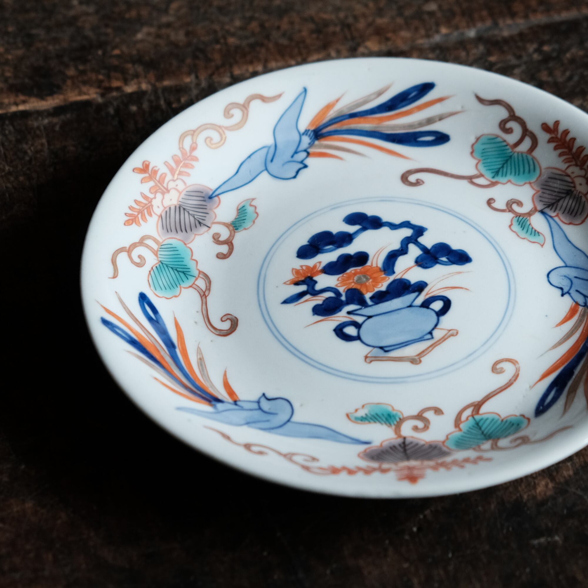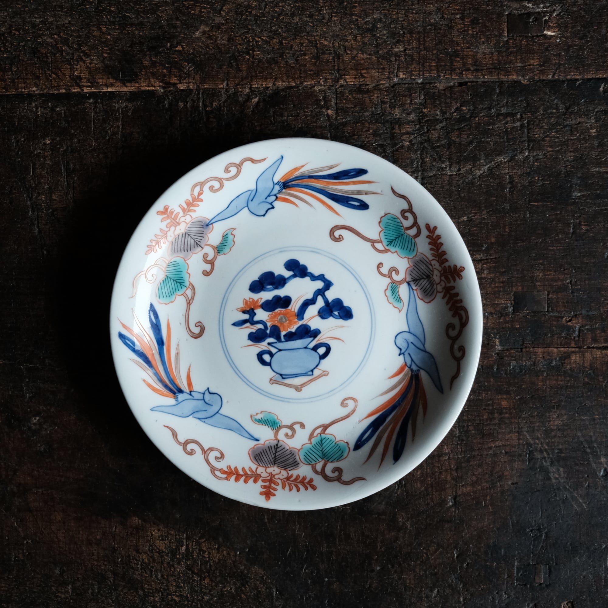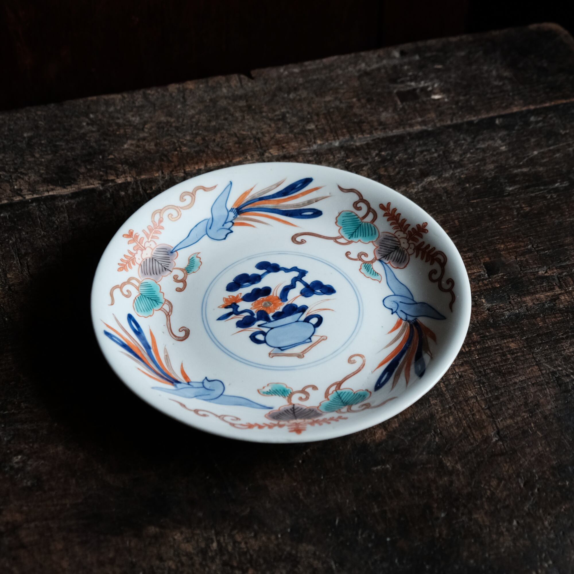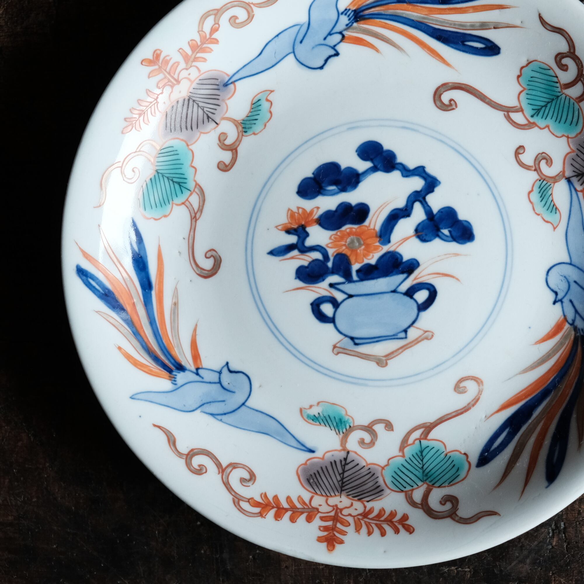 見込みに花籠◆桐と鳳凰。伊万里 花文赤絵金彩中皿 骨董・antique 古美術 明治時代