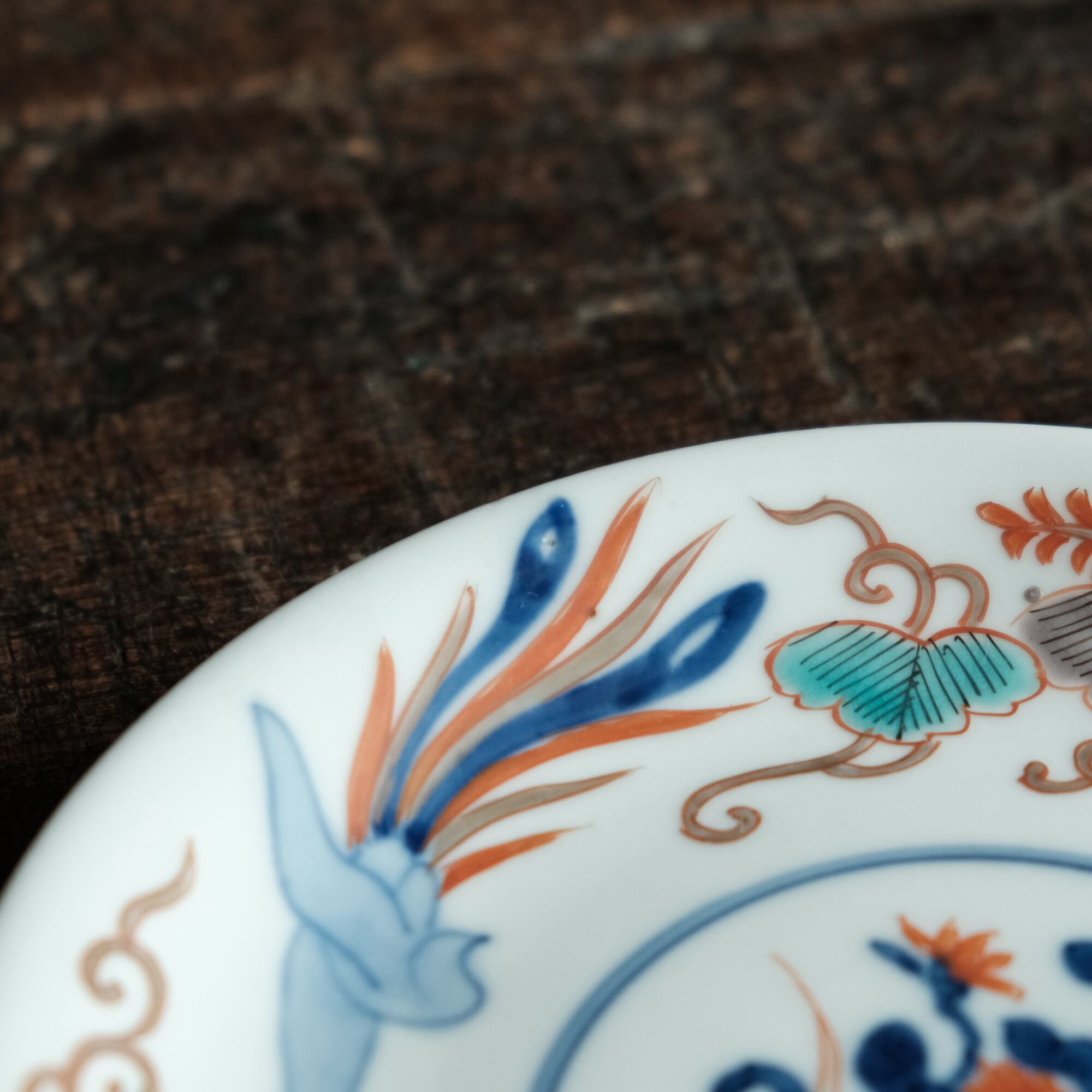 白地に鮮やかな色合いの絵付けが印象的な器になります。