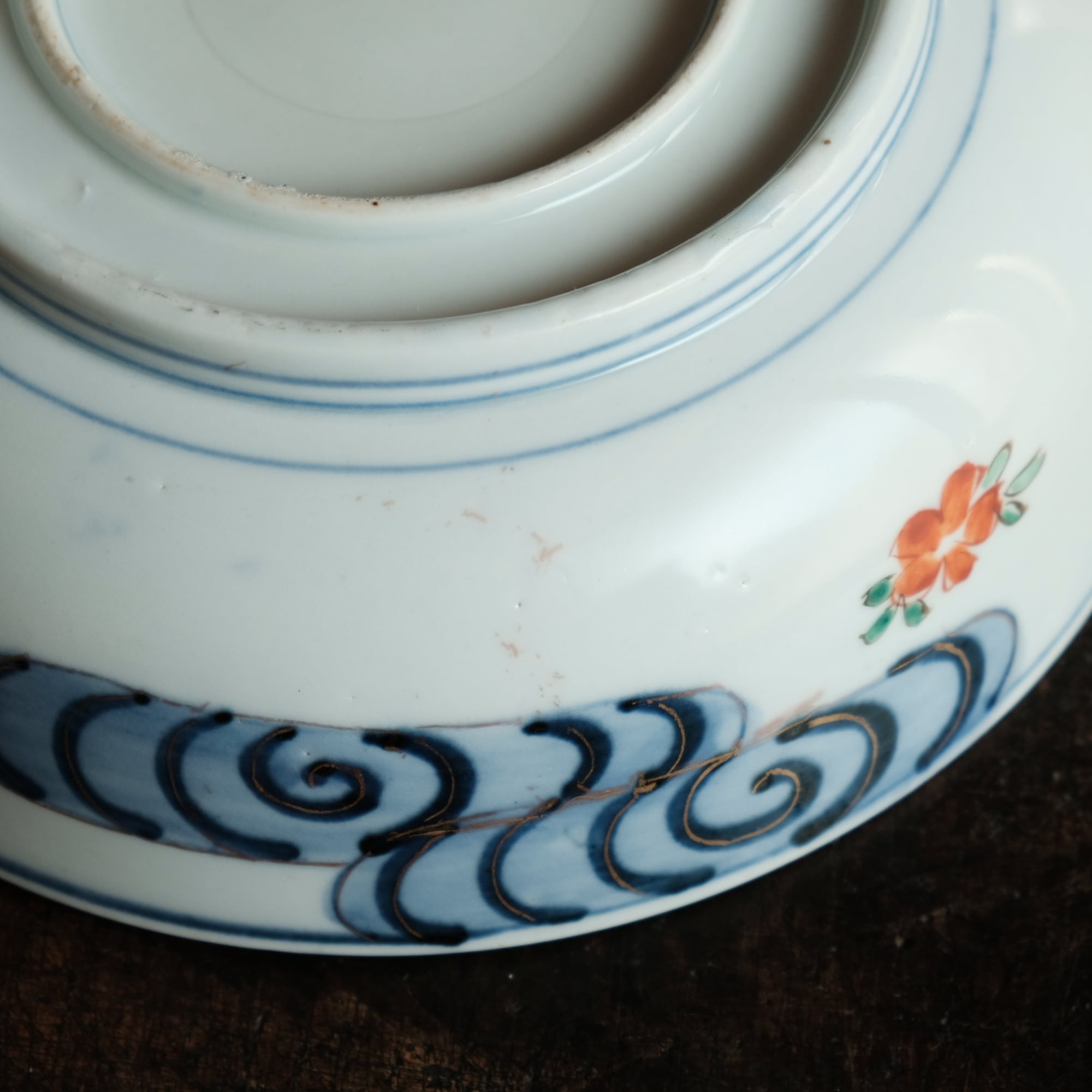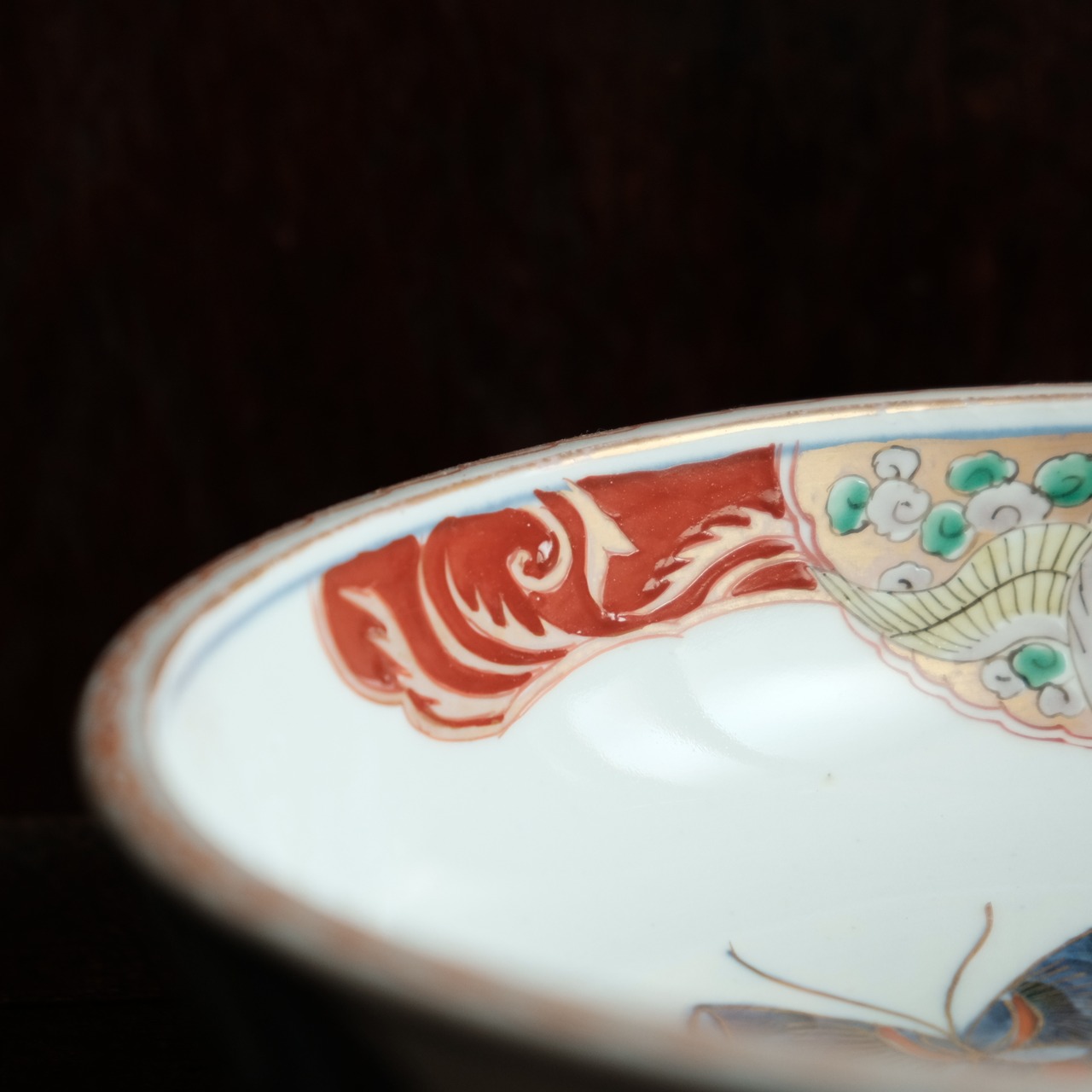 花と鶴と蝶々◆伊万里 花蝶文赤絵金彩浅型大鉢 碗 骨董・antiques 器 暮らしに 明治期 大