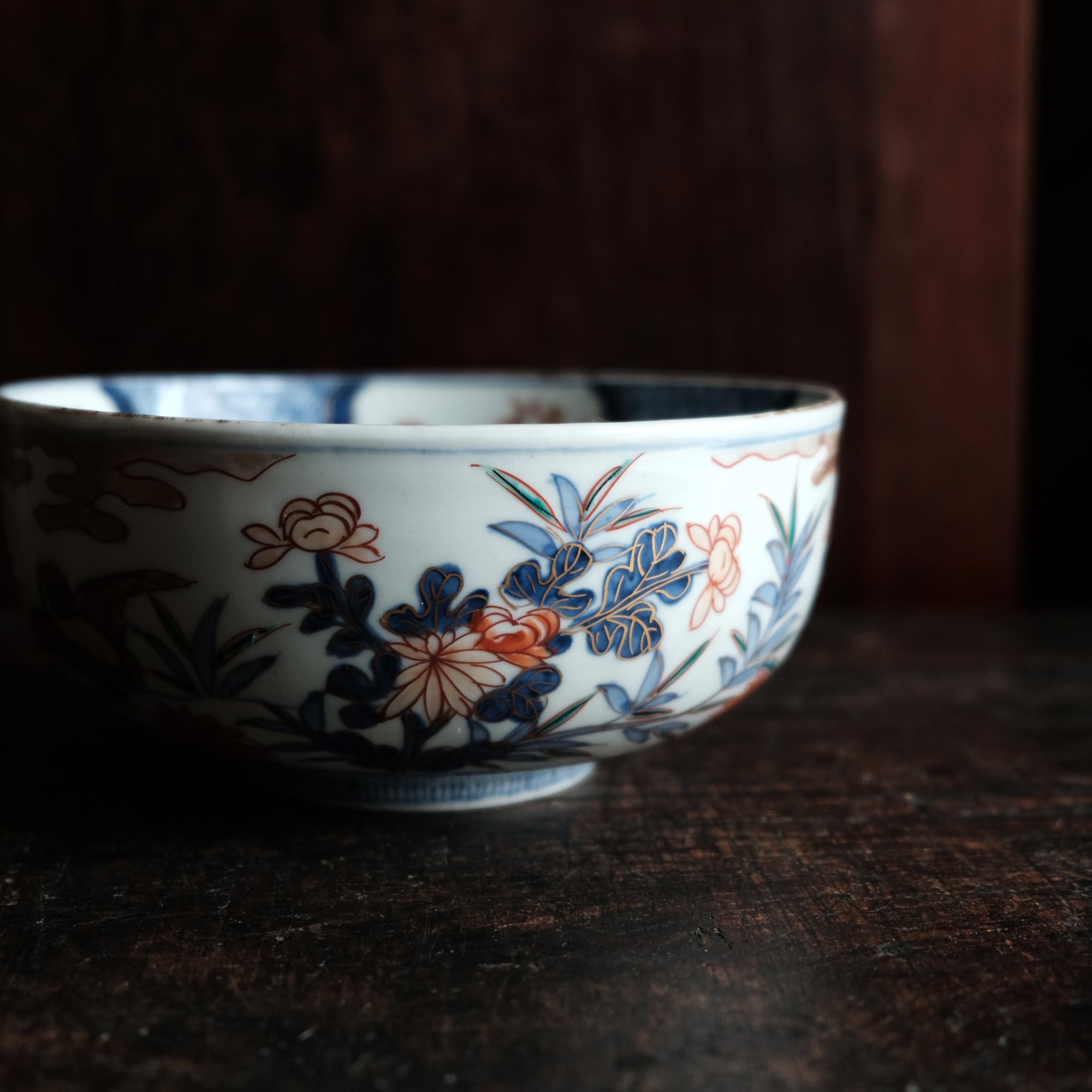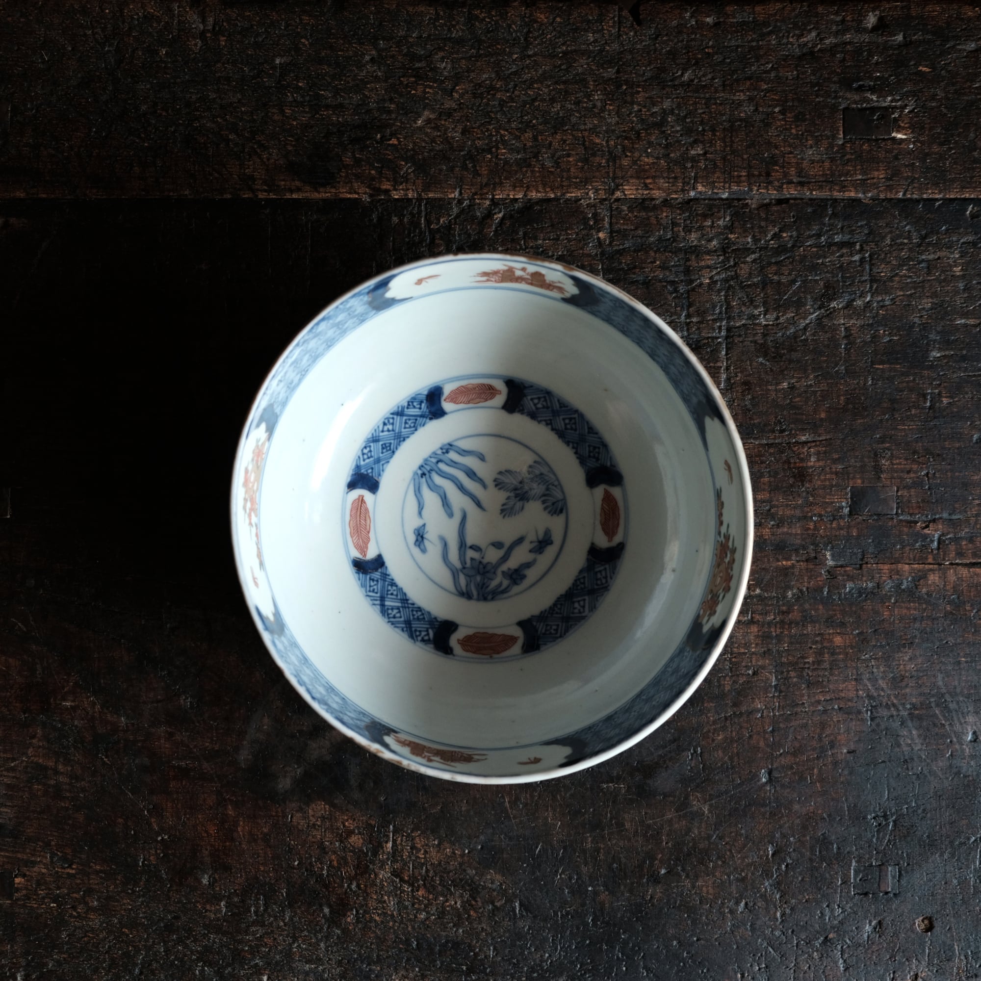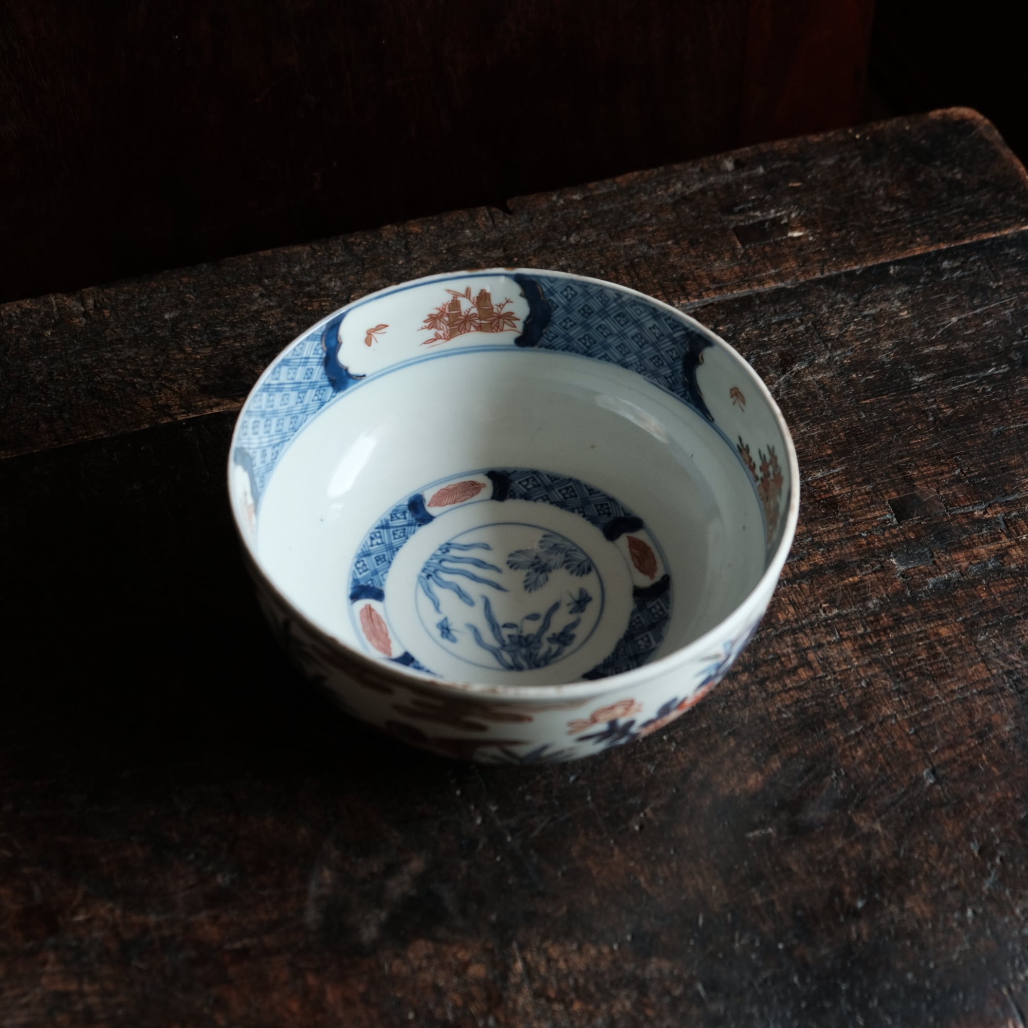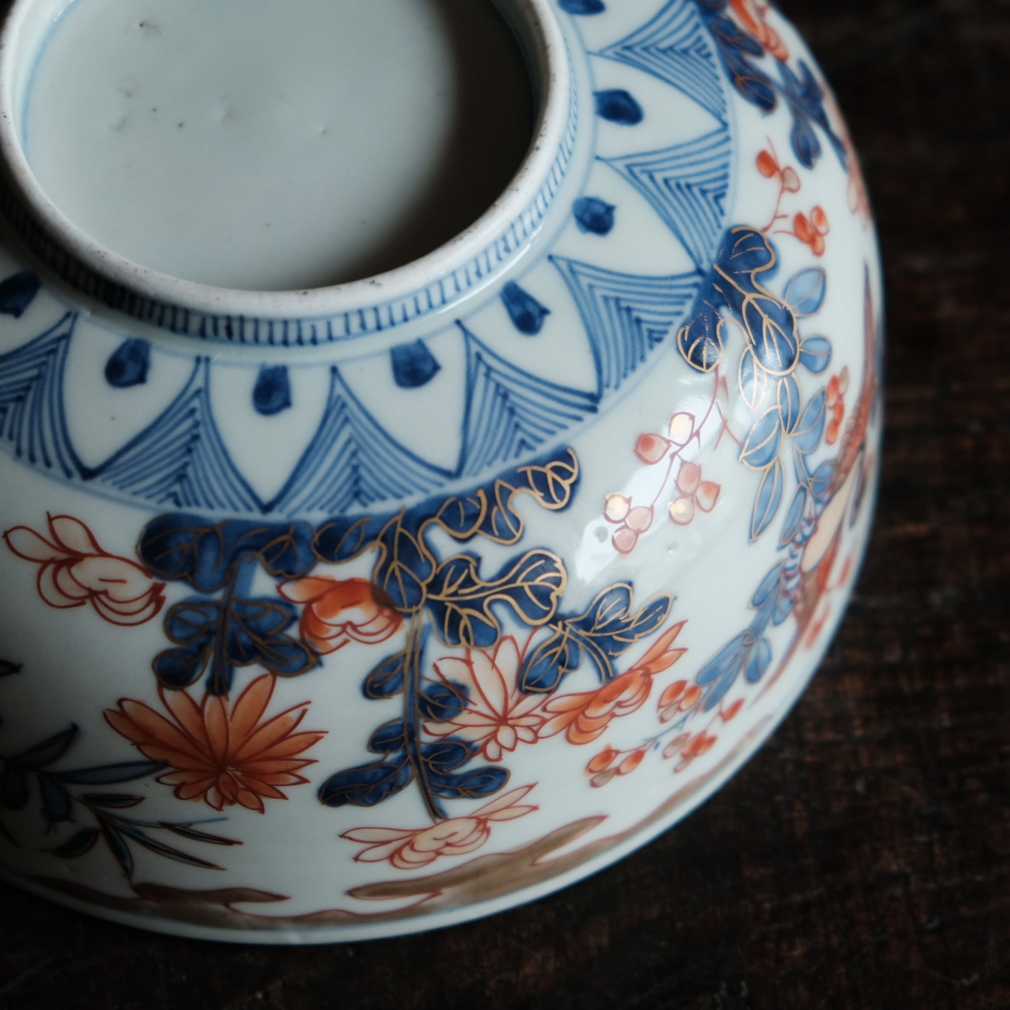 草花と蝶と鳥◆ゴージャスな雰囲気。伊万里 花文染錦金彩鉢 骨董・antiques 古美術 江戸末〜明治期