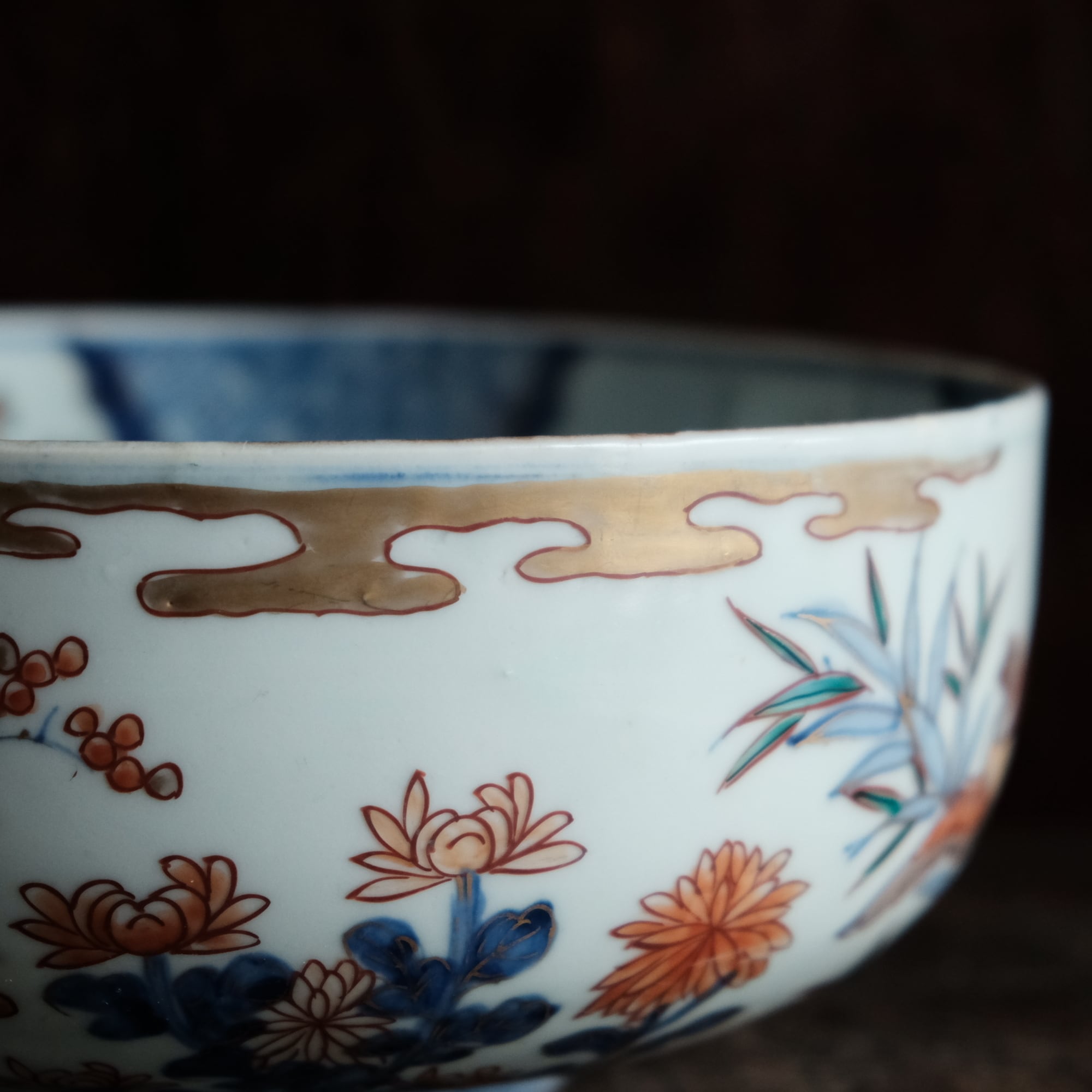 草花と蝶と鳥◆ゴージャスな雰囲気。伊万里 花文染錦金彩鉢 骨董・antiques 古美術 江戸末〜明治期