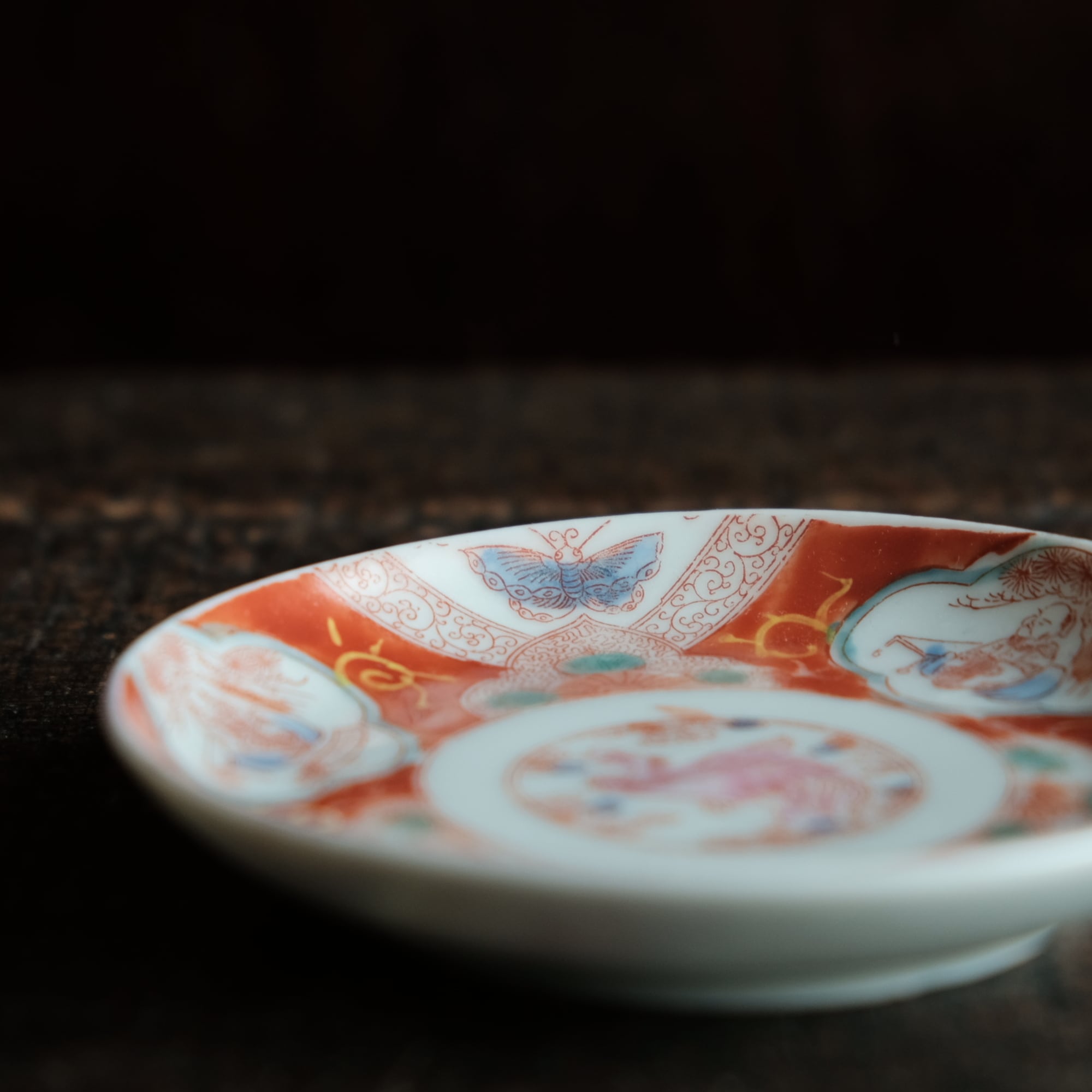 花と鳳凰と蝶々と貴族◆赤で素敵。赤絵印判小皿 骨董・antiques 古民家 古美術 明治〜大正時代