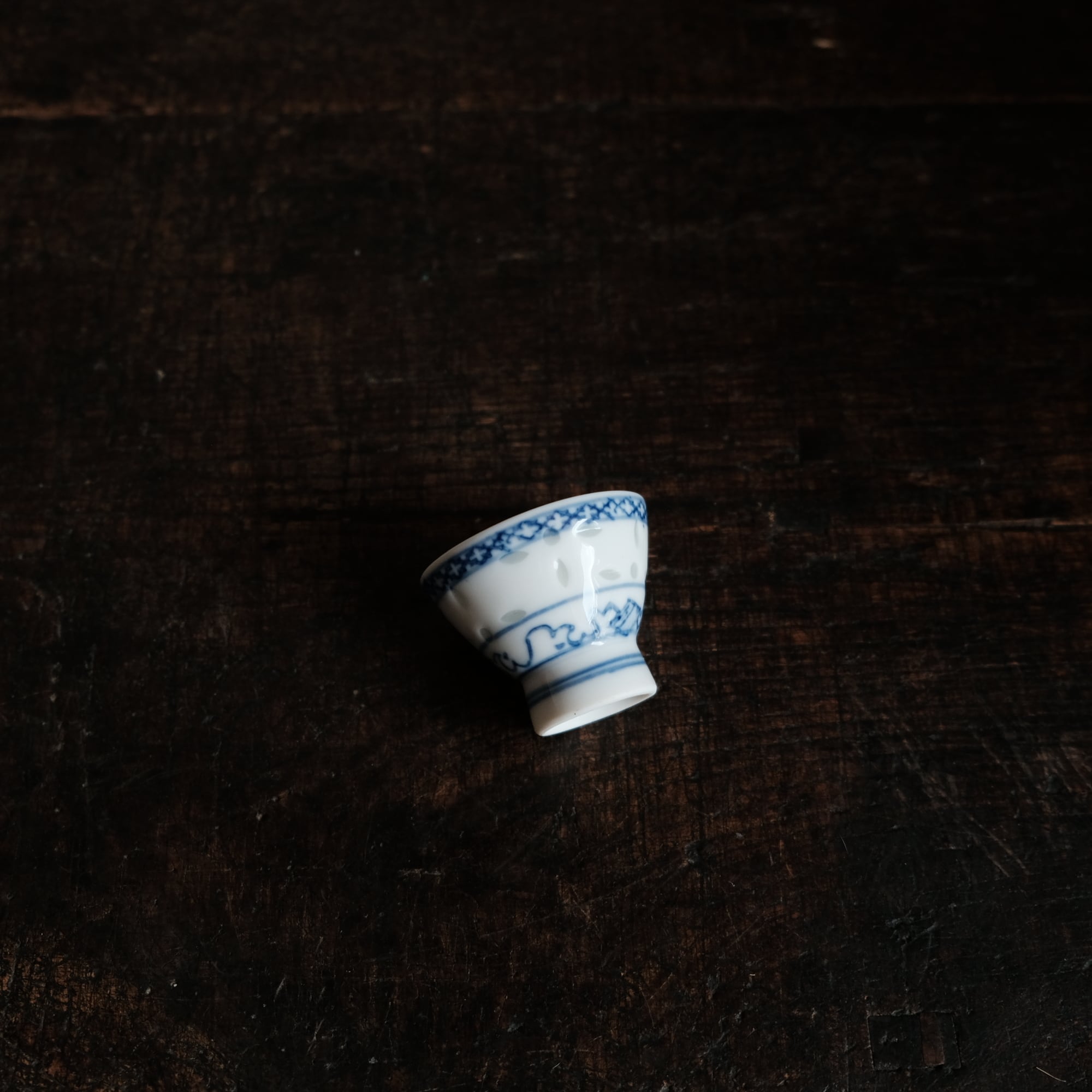 シノワズリな雰囲気◆中国産 蛍焼染付猪口 酒器 湯呑み 蝙蝠 チャイナレトロ 工芸品 オブジェ